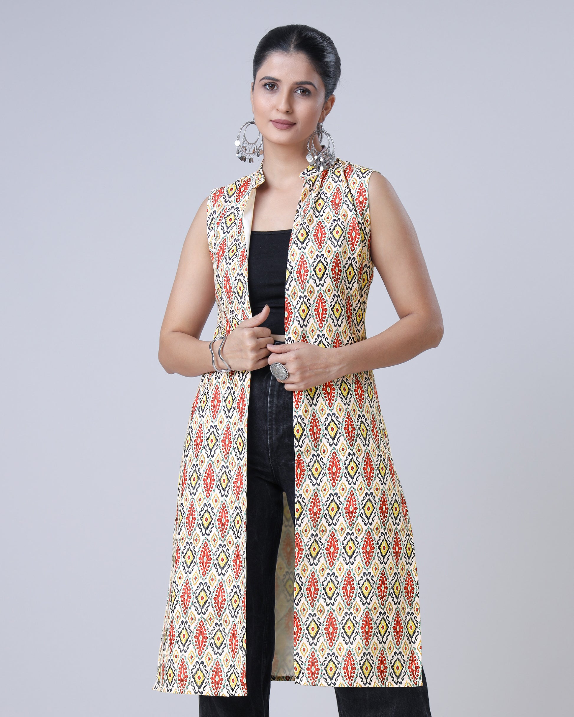 Ethnic Sleevess Long Jacket For Women
