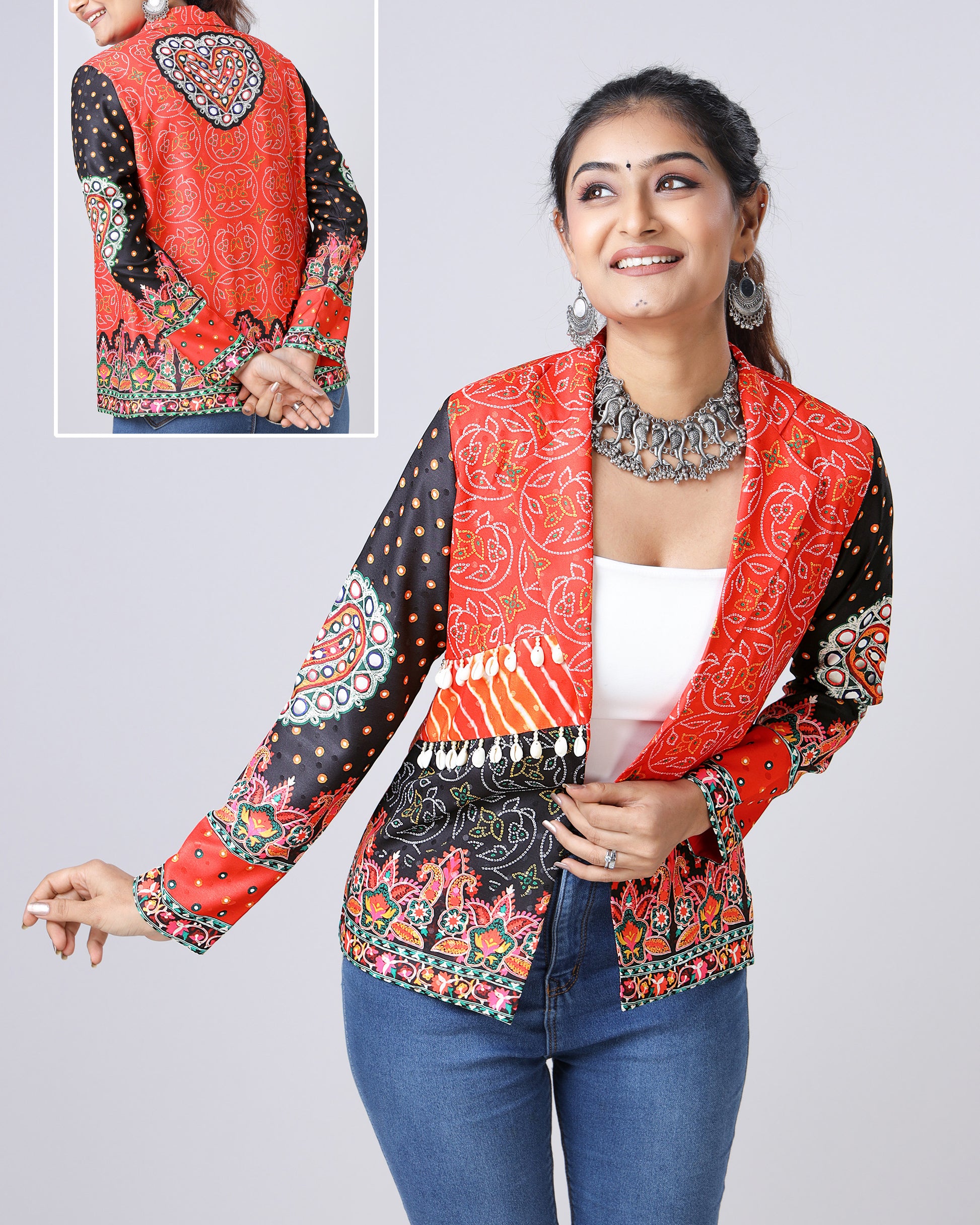 Celebrate the vibrance and energy of Navratri with our exclusive collection of Navratri jackets. These jackets are designed to add a contemporary twist to your traditional look, perfect for the joyous Garba nights. Crafted from high-quality fabrics with intricate patterns and vibrant colors, these jackets are not just a piece of clothing but a statement of culture and style. Pair them with your favorite lehengas or jeans for a fusion look that stands out.