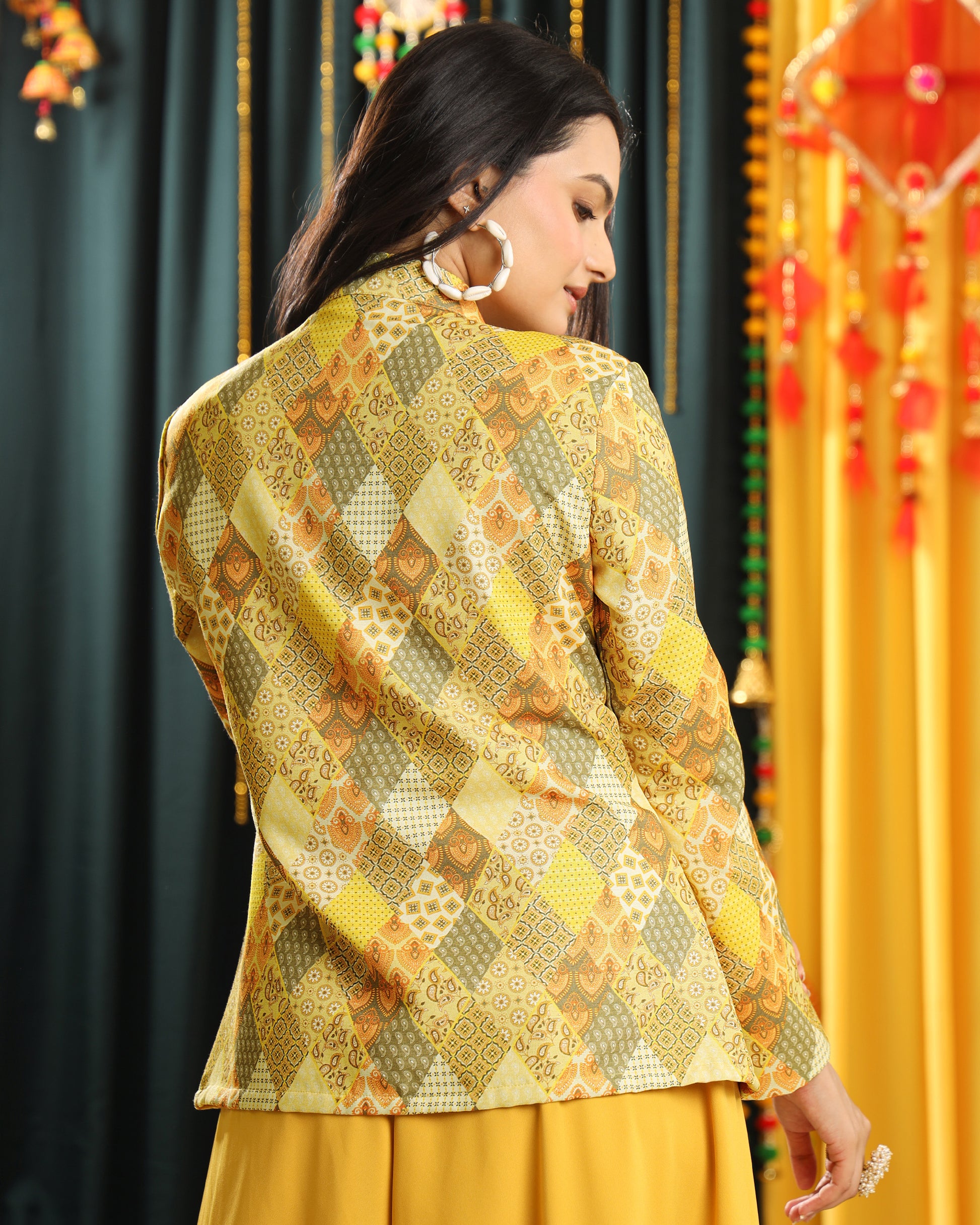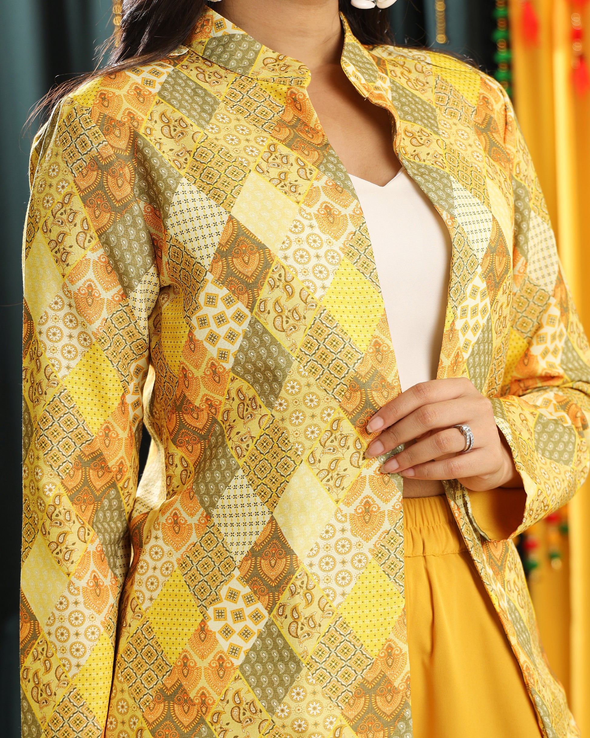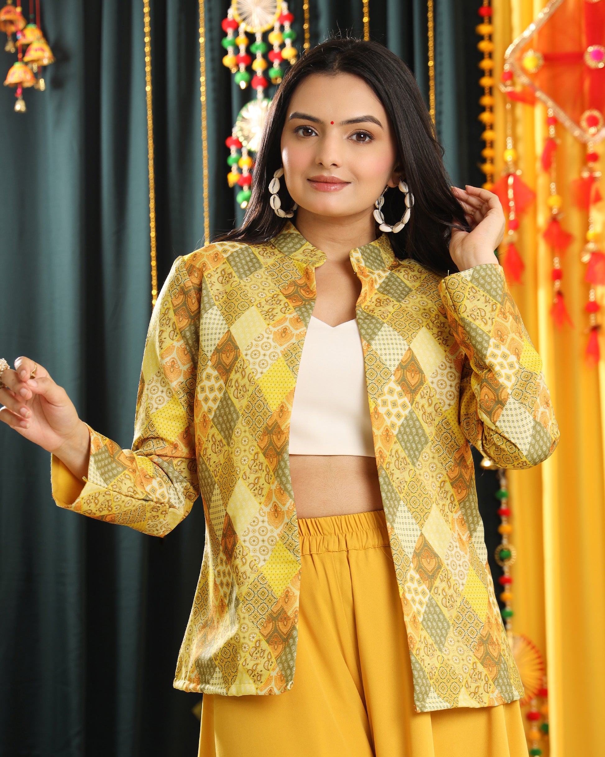 Haldi jackets can become an essential fashionable part of traditional Indian wedding attire. These jackets are often crafted from vibrant fabrics and adorned with intricate patterns. They are designed to be worn over traditional Indian outfits like kurta-pajamas, lehenga or more during pre-wedding ceremonies such as Haldi or Mehndi. Whether you're a bride, family member, or guest, these Haldi jackets are a stylish choice to enhance your look and celebrate a joyous occasion.