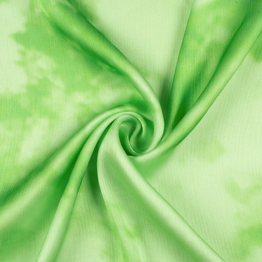 Lime Green Tye And Dye Pattern Digital Print Chiffon Satin Fabric Lime Green Tye And Dye Pattern Digital Print Chiffon Satin Fabric