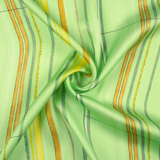 Lime Green And Golden Brown Stripes Pattern Digital Print Chiffon Satin Fabric Lime Green And Golden Brown Stripes Pattern Digital Print Chiffon Satin Fabric