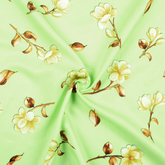 Lime Green And Oyster Beige Floral Pattern Digital Print Ultra Premium Butter Crepe Fabric Lime Green And Oyster Beige Floral Pattern Digital Print Ultra Premium Butter Crepe Fabric
