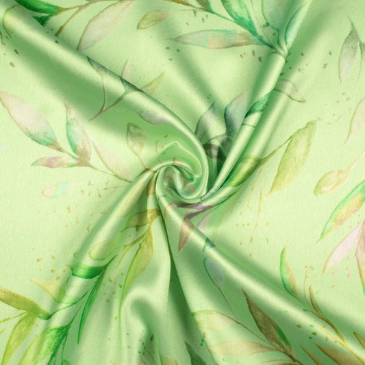 -10% offLime Green Leaf Pattern Digital Print Japan Satin Fabric Lime Green Leaf Pattern Digital Print Japan Satin Fabric