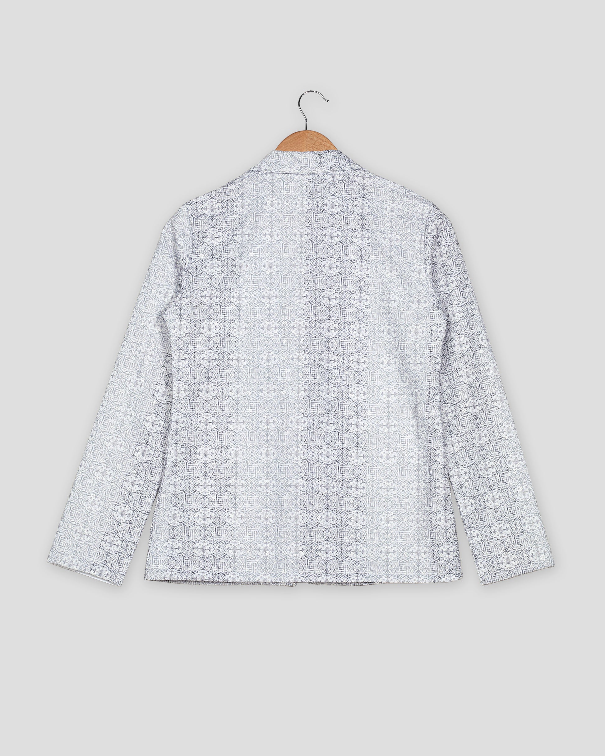 Geometric Floral Embroidery Work Grey Women's Jacket