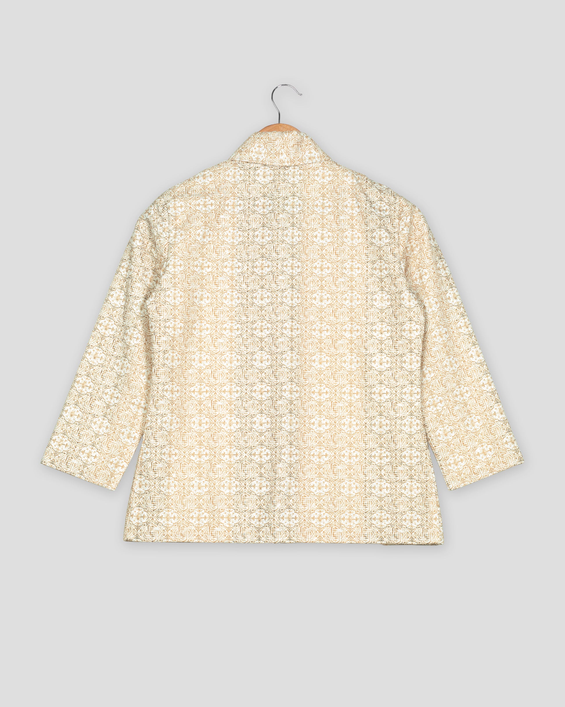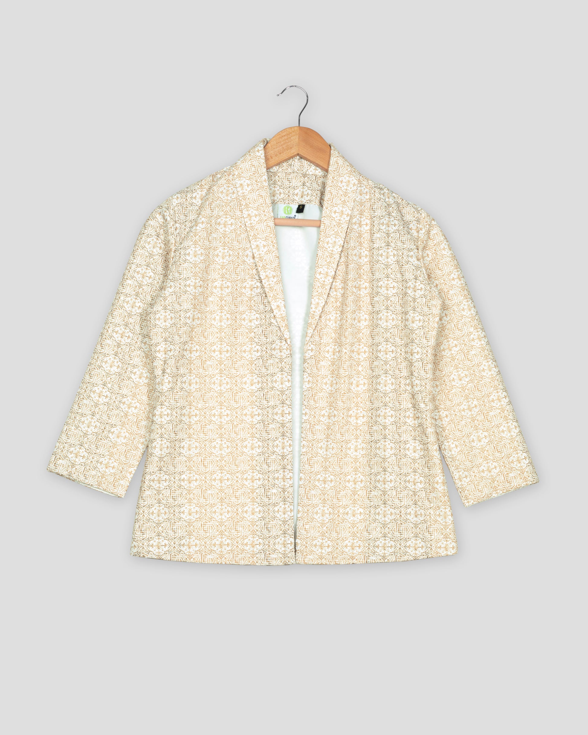 Geometric Floral Embroidery Work Yellow Women's Jacket