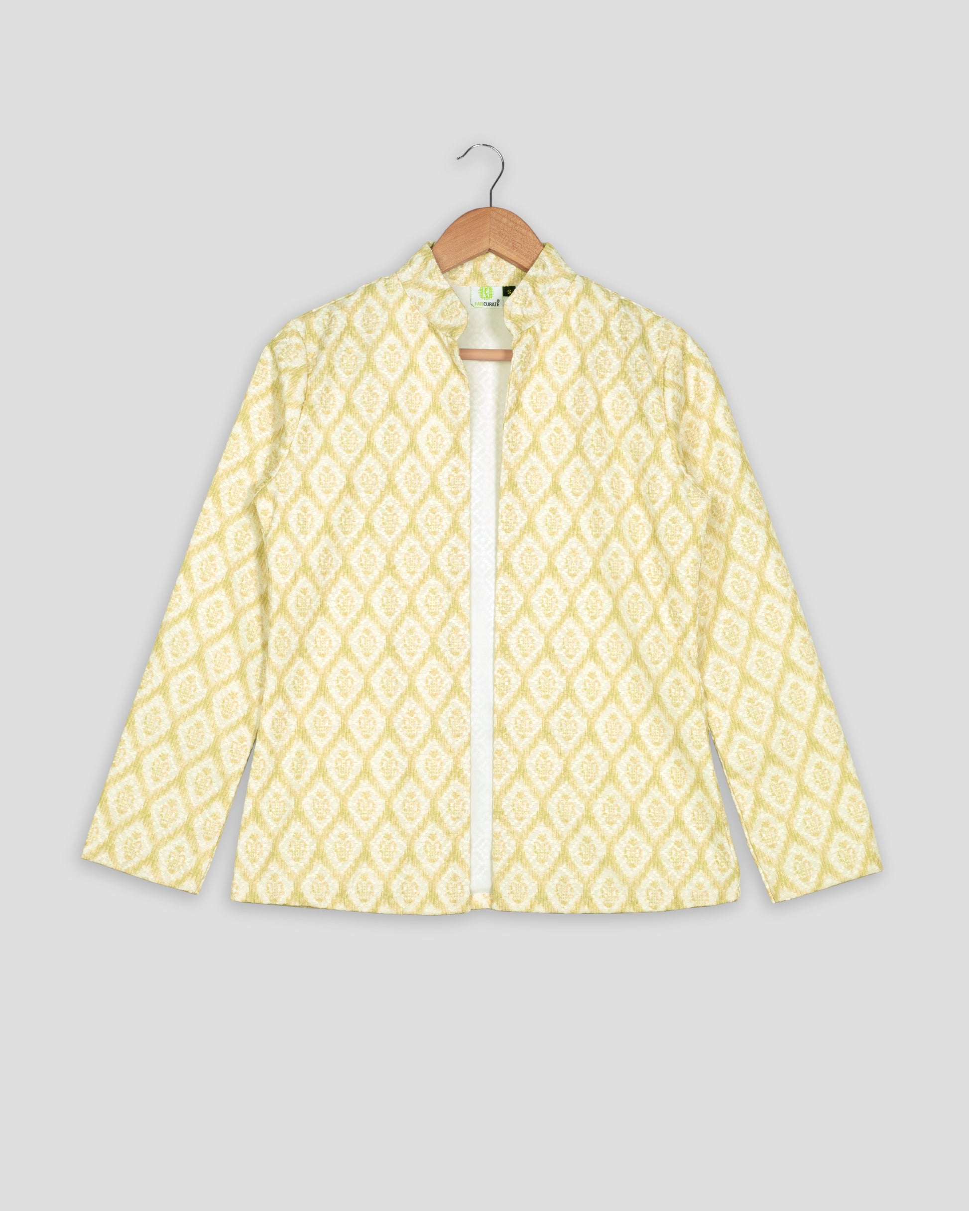 Geometric Floral Sequins Embroidery Work Yellow Women's Jacket