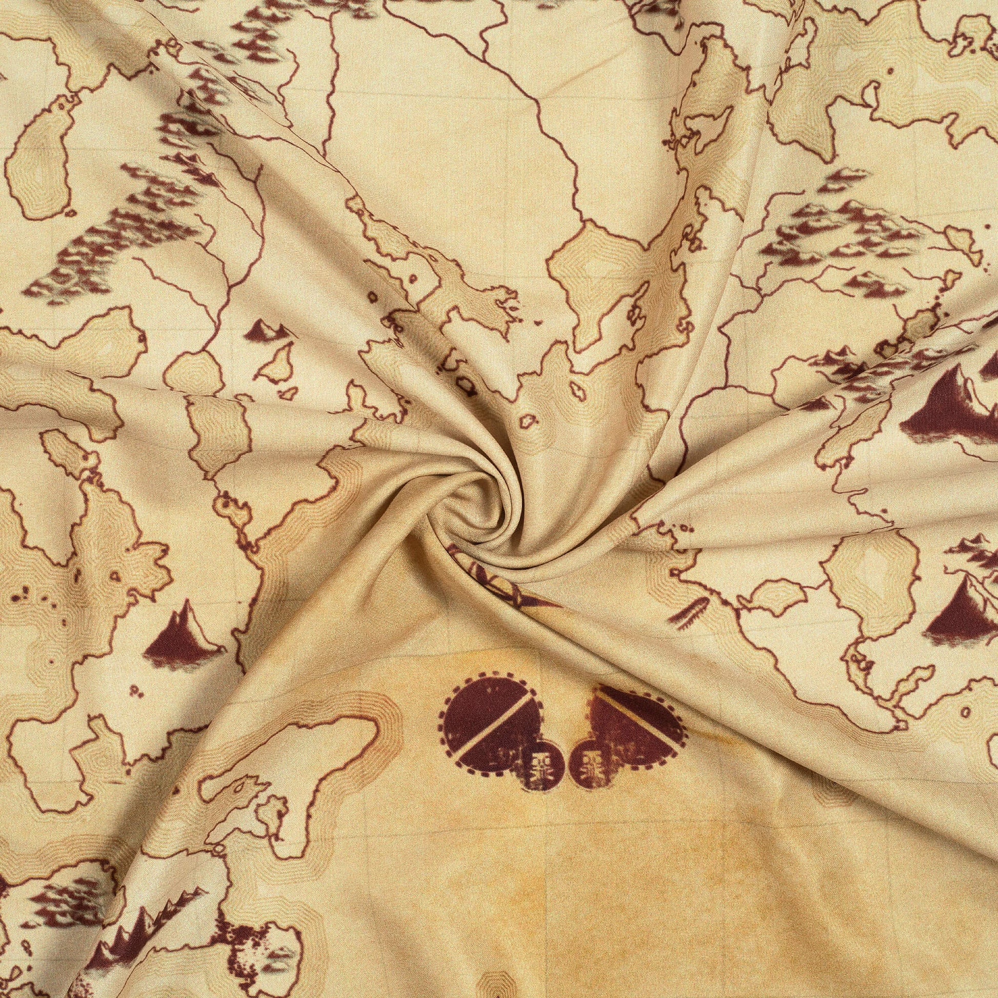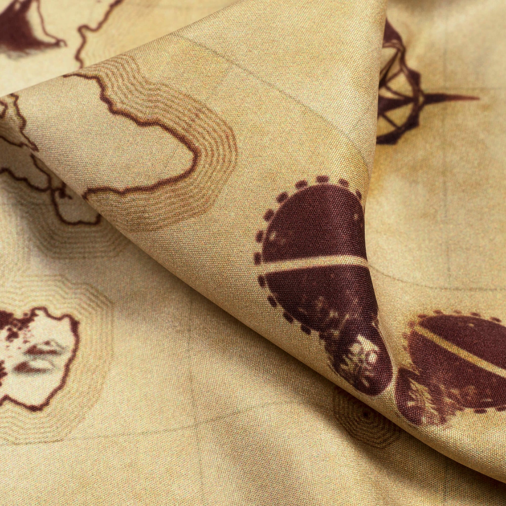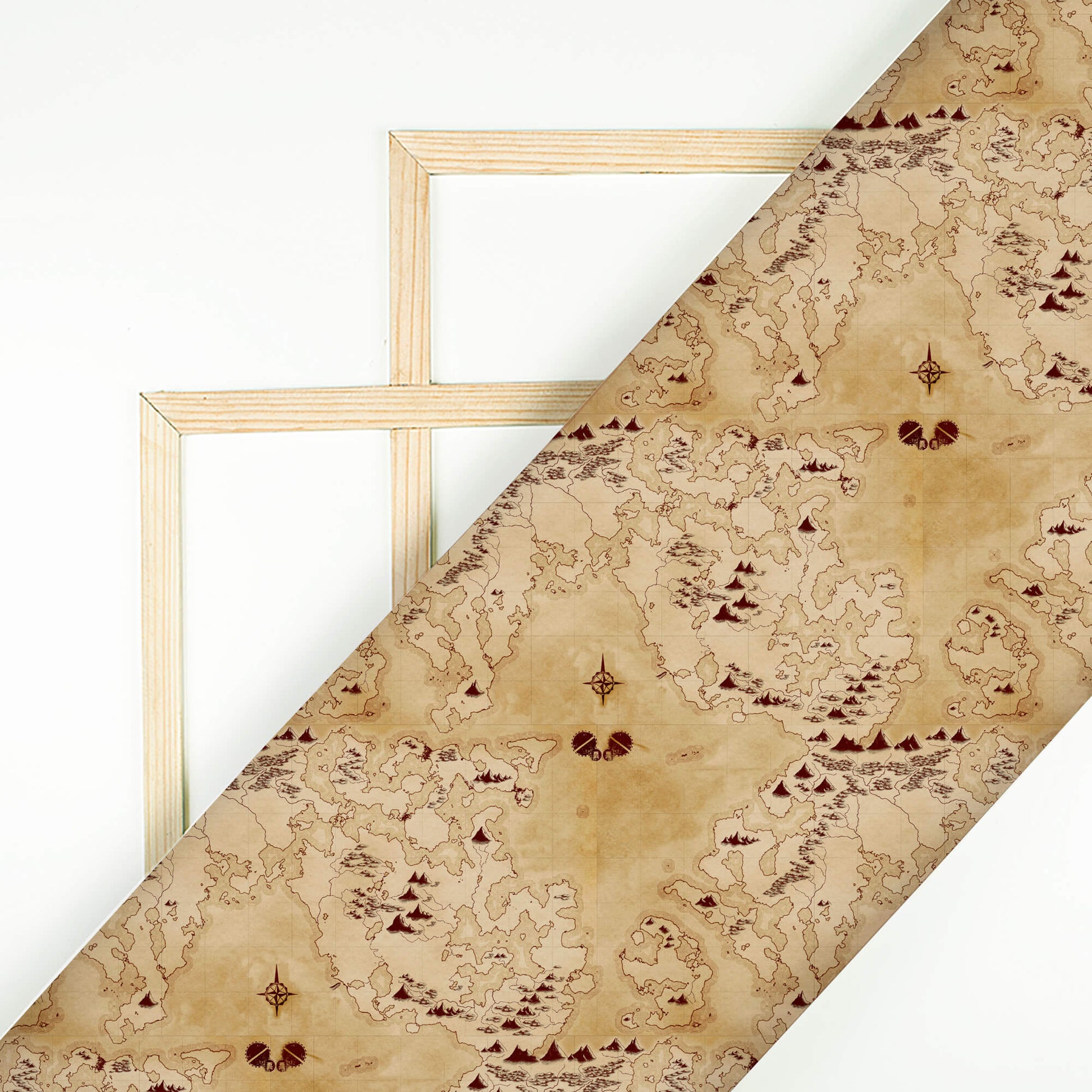 Beige And Brown Map Pattern Digital Print Ultra Premium Butter Crepe Fabric