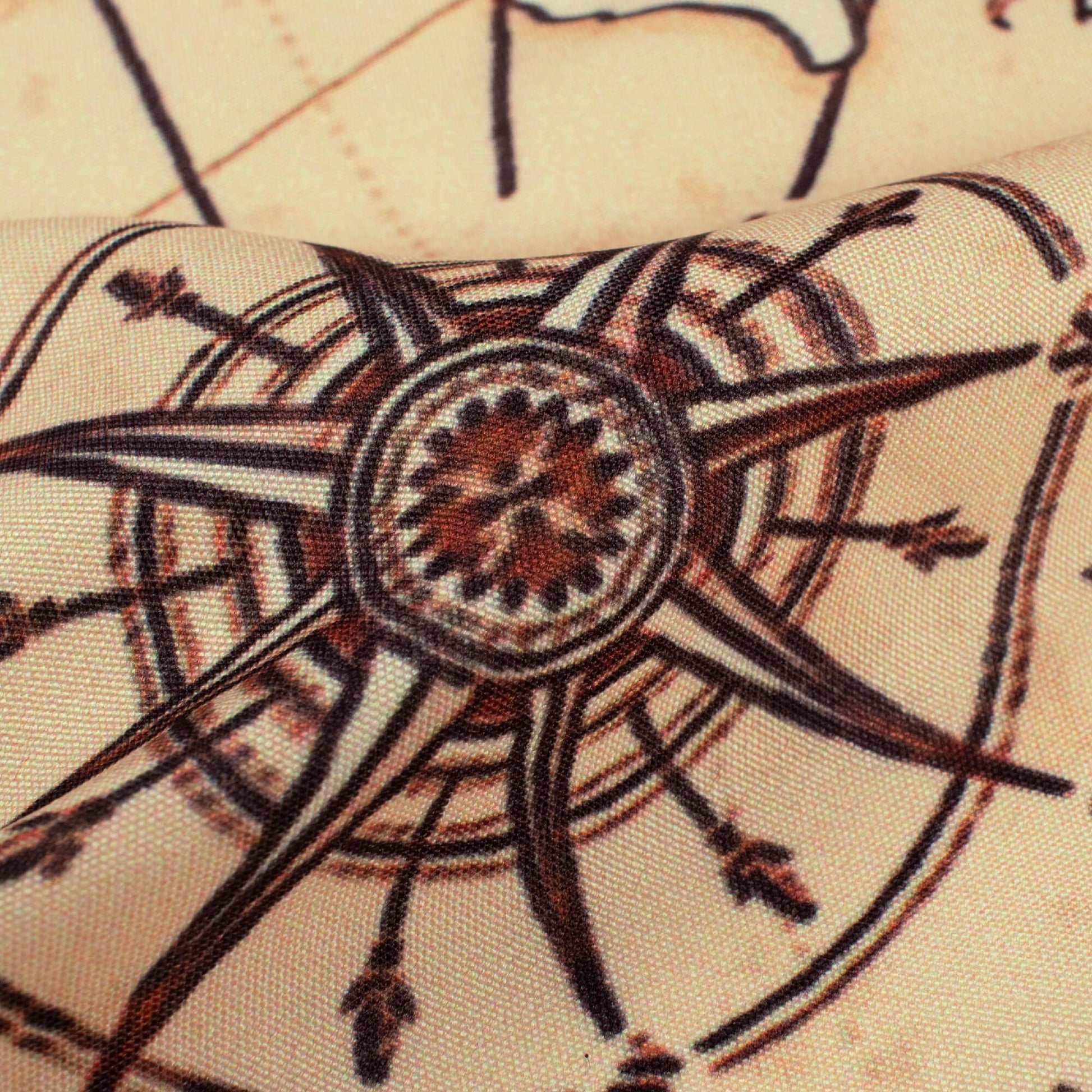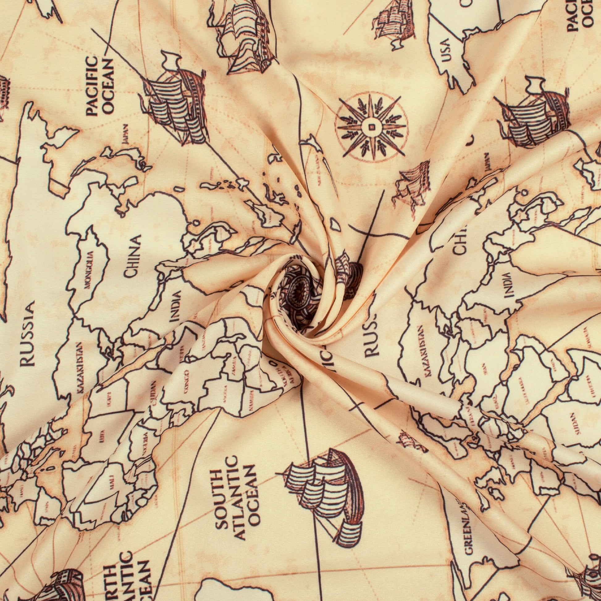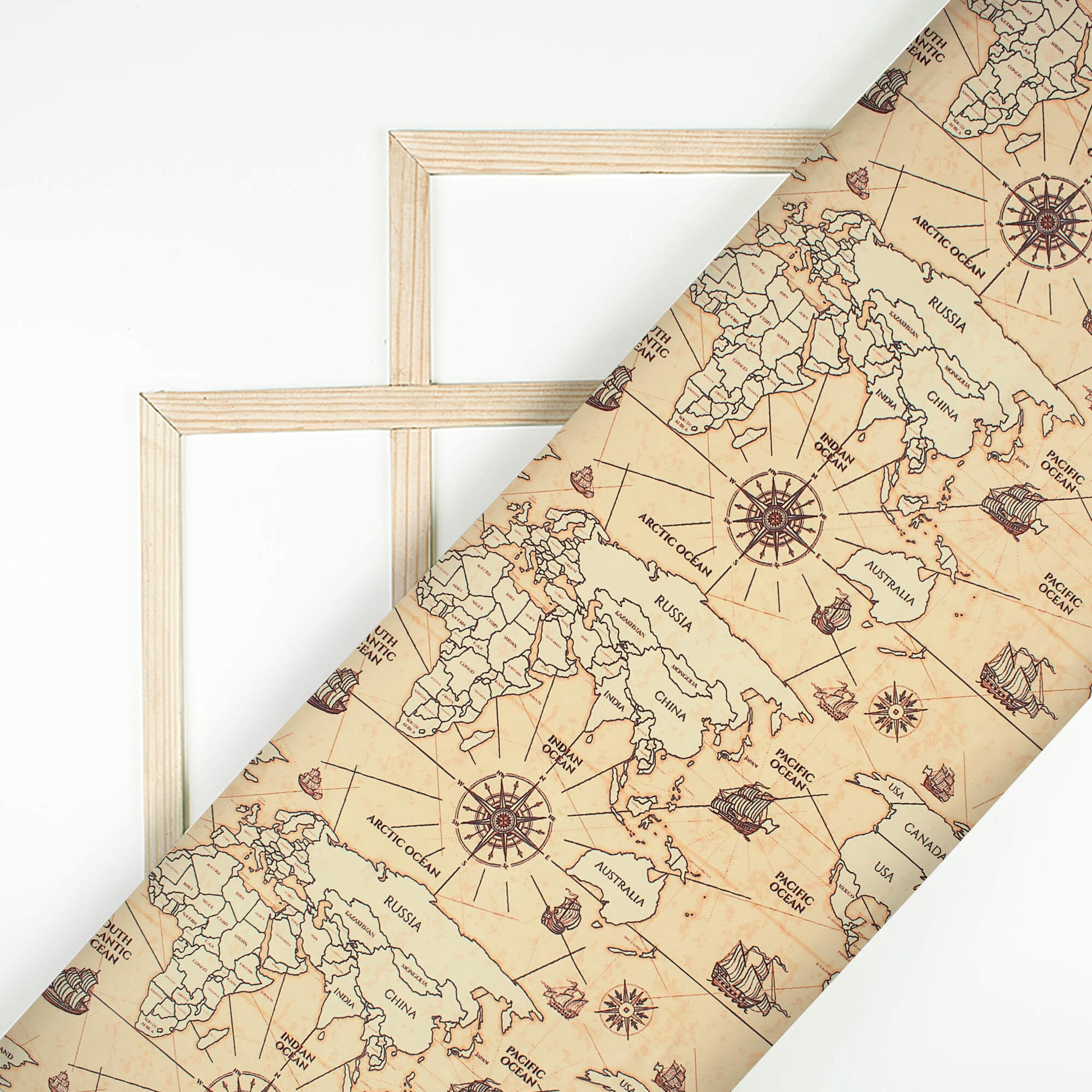 Beige Map Pattern Digital Print Ultra Premium Butter Crepe Fabric