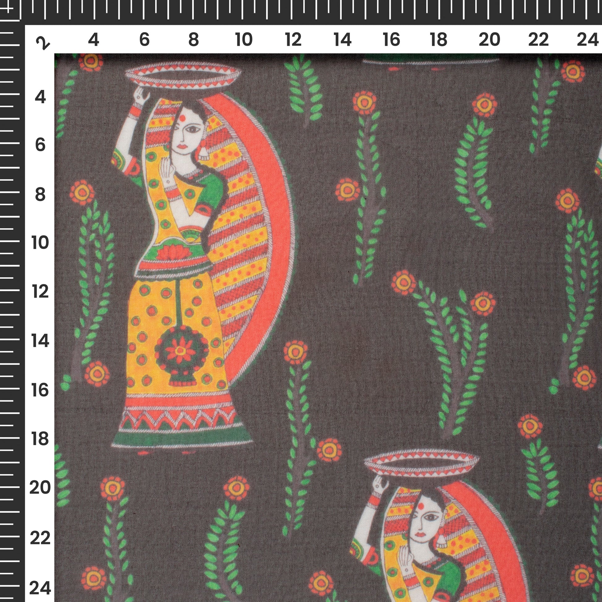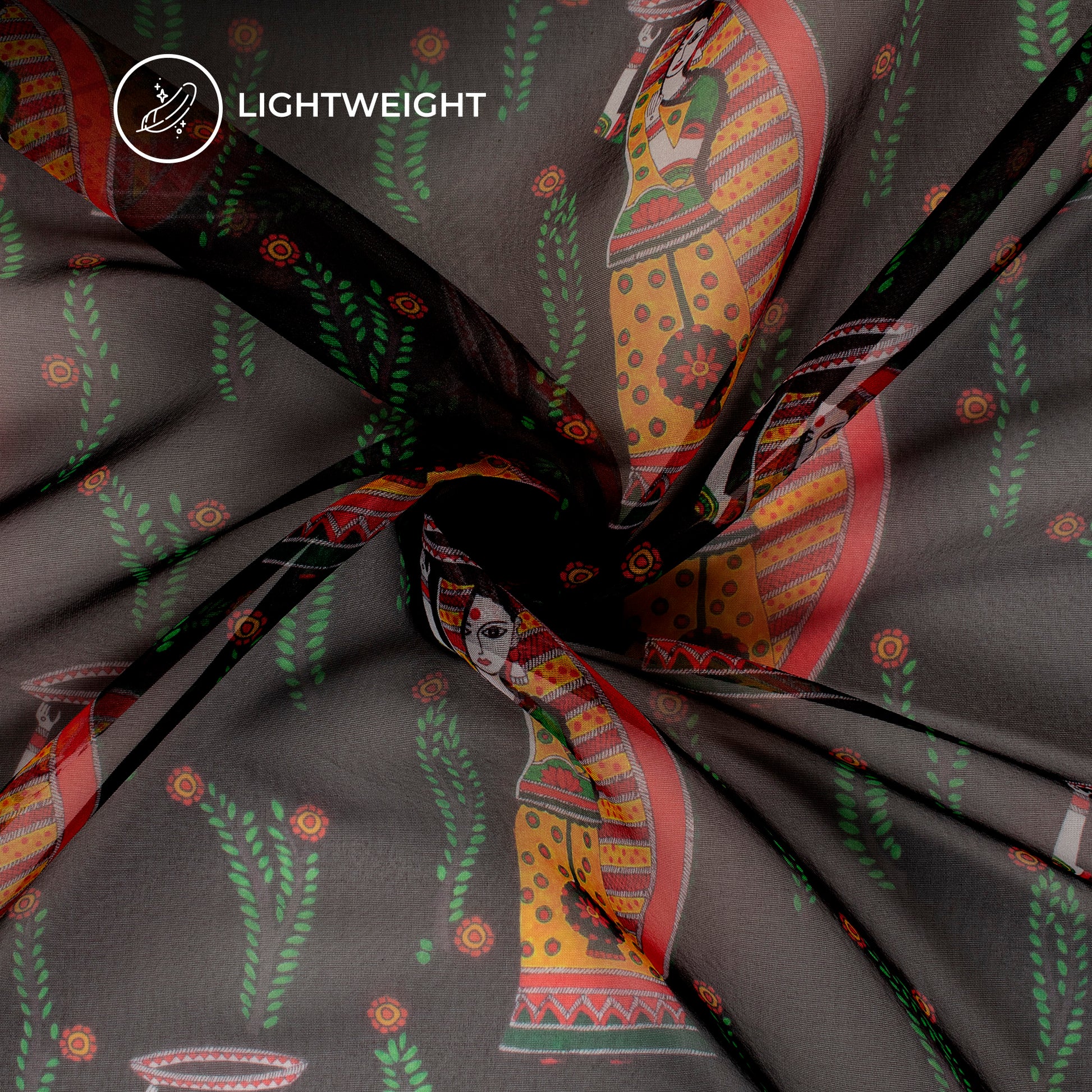 Black Madhuvanii Digital Print Matt Organza Fabric