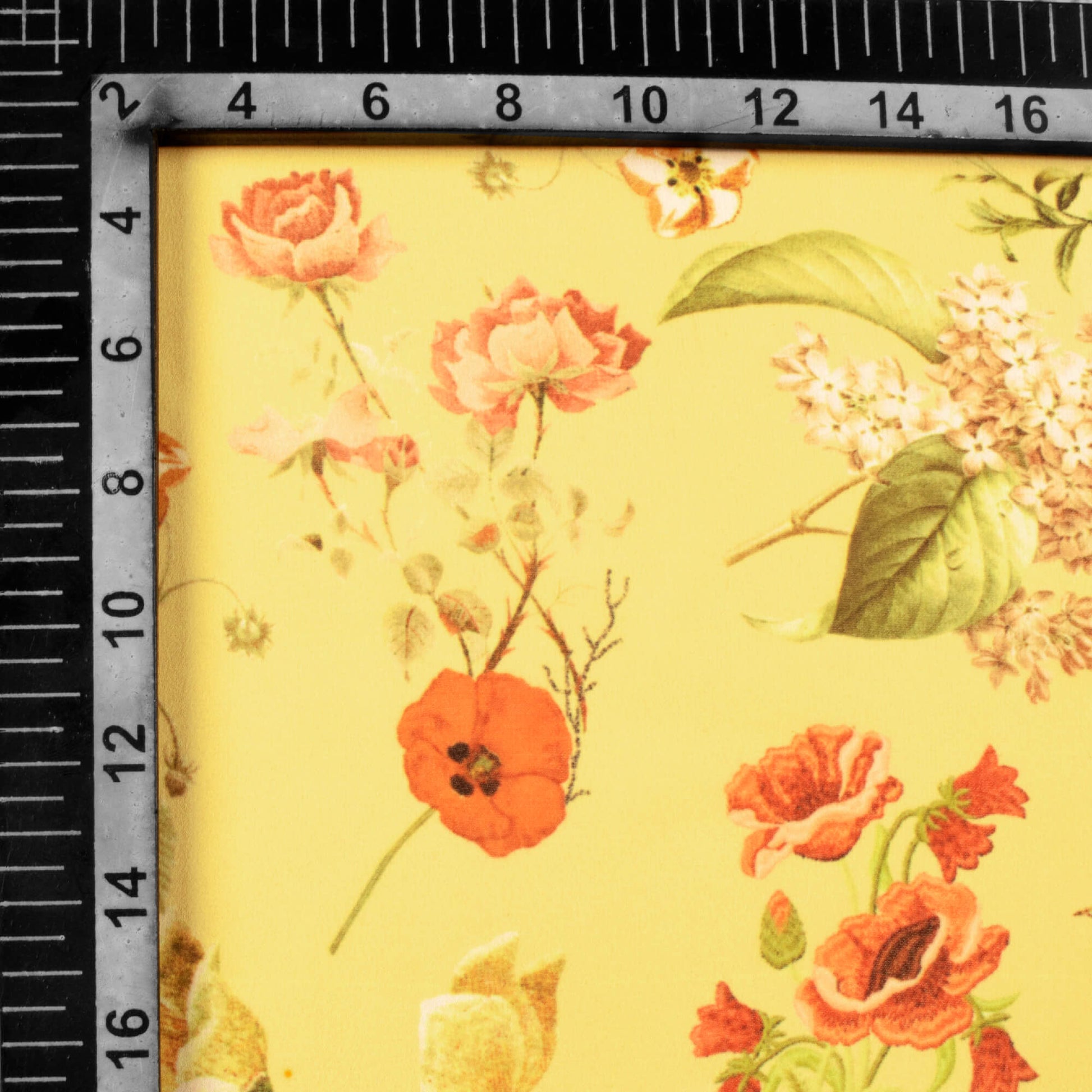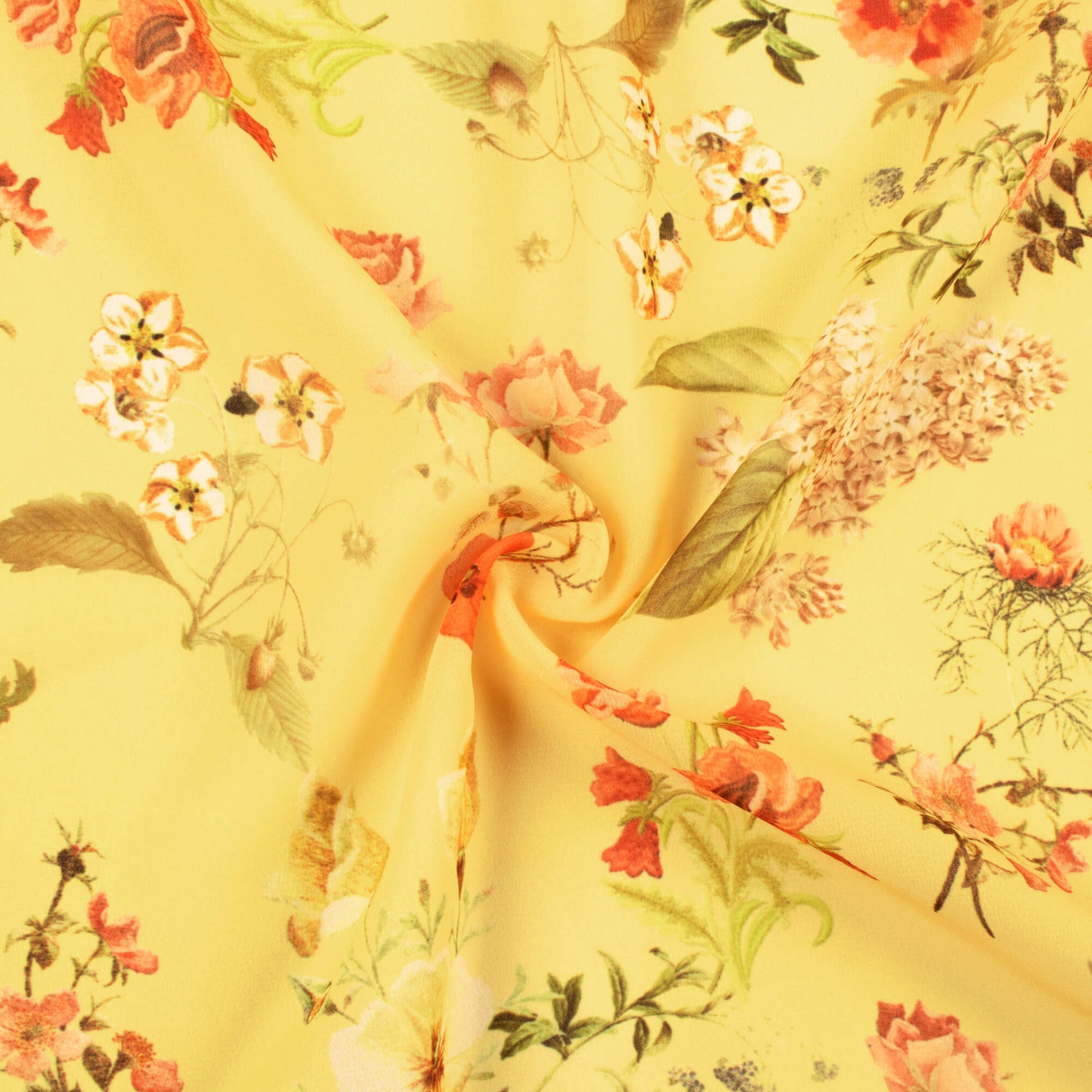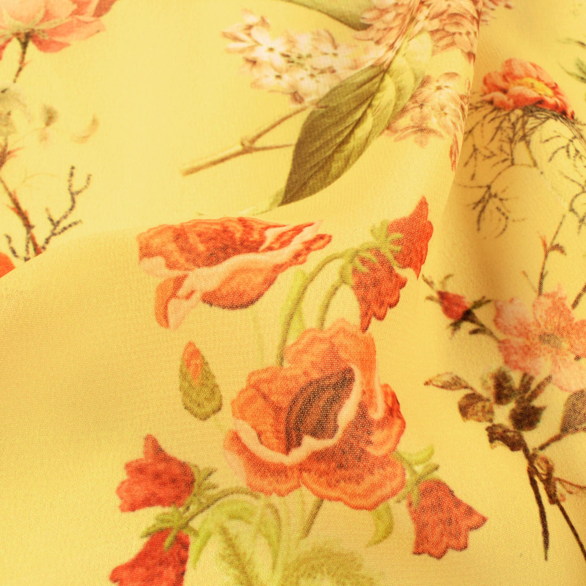 Mellow Yellow And Coral Peach Floral Pattern Digital Print Georgette Fabric