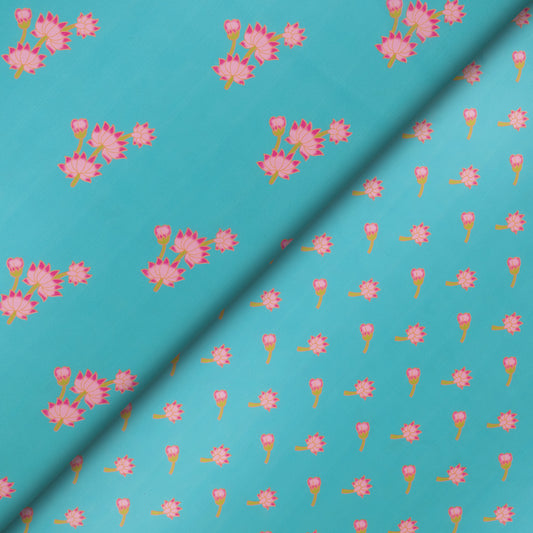 -10% offPink Floral On Vibrent Blue Backgound Digital Print Muslin Fabric Pink Floral On Vibrent Blue Backgound Digital Print Muslin Fabric