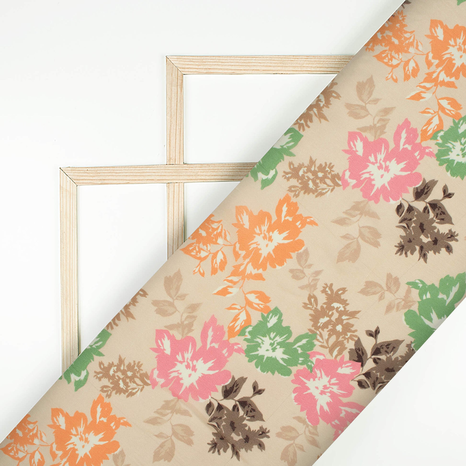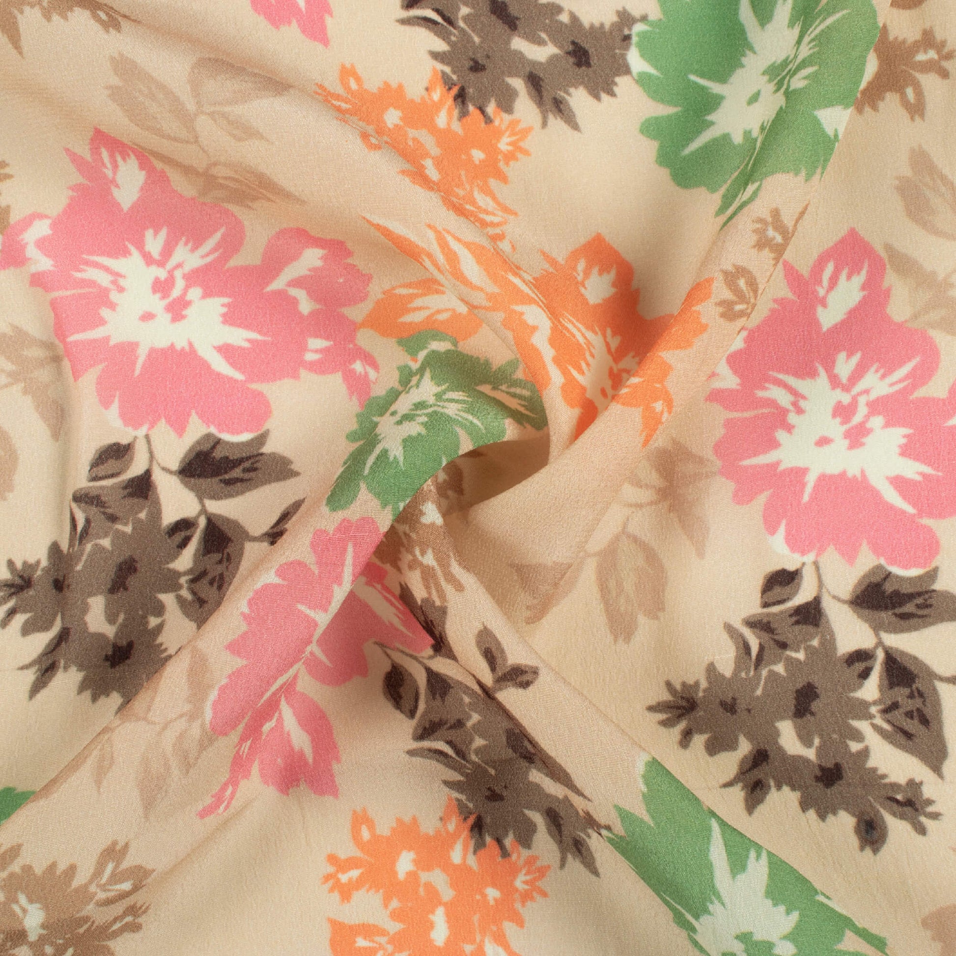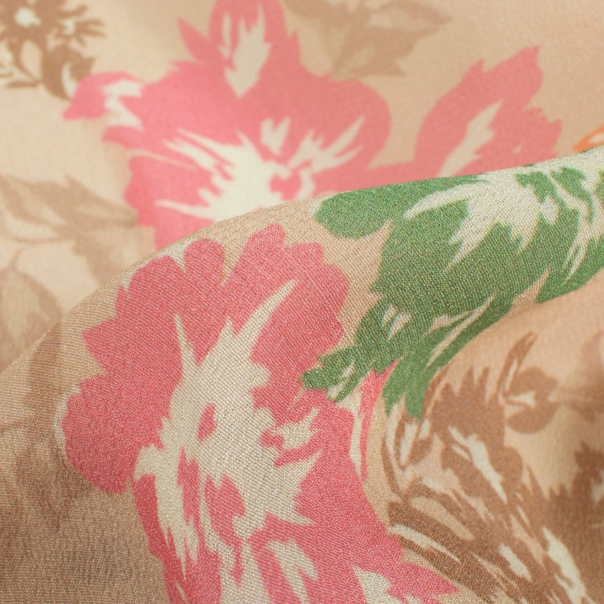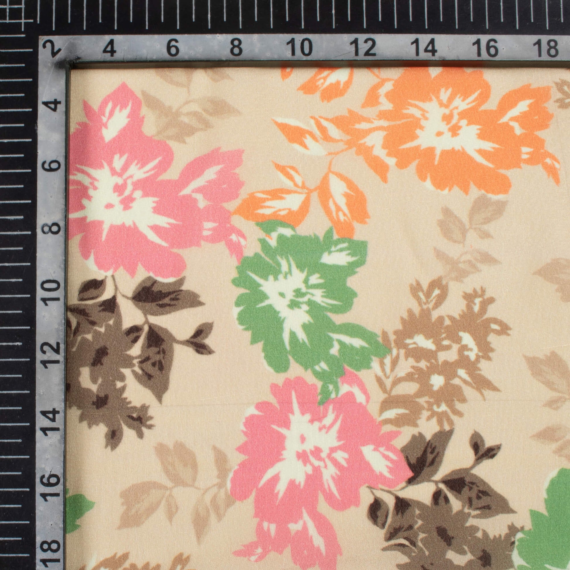 Artichock Green And Thulian Pink Floral Pattern Digital Print Viscose Natural Crepe Fabric