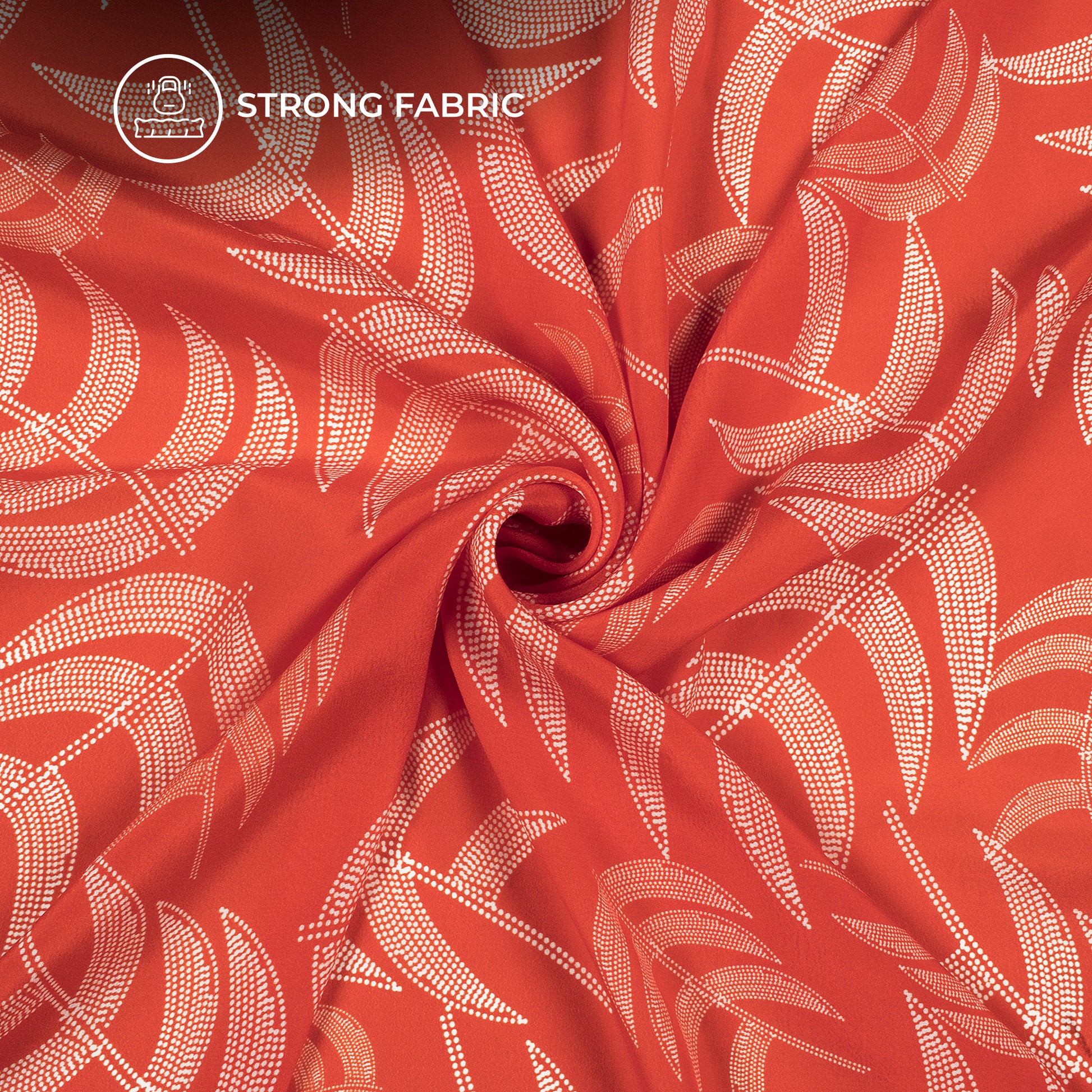 Scarlet Red Leaf Digital Print Viscose Natural Crepe Fabric