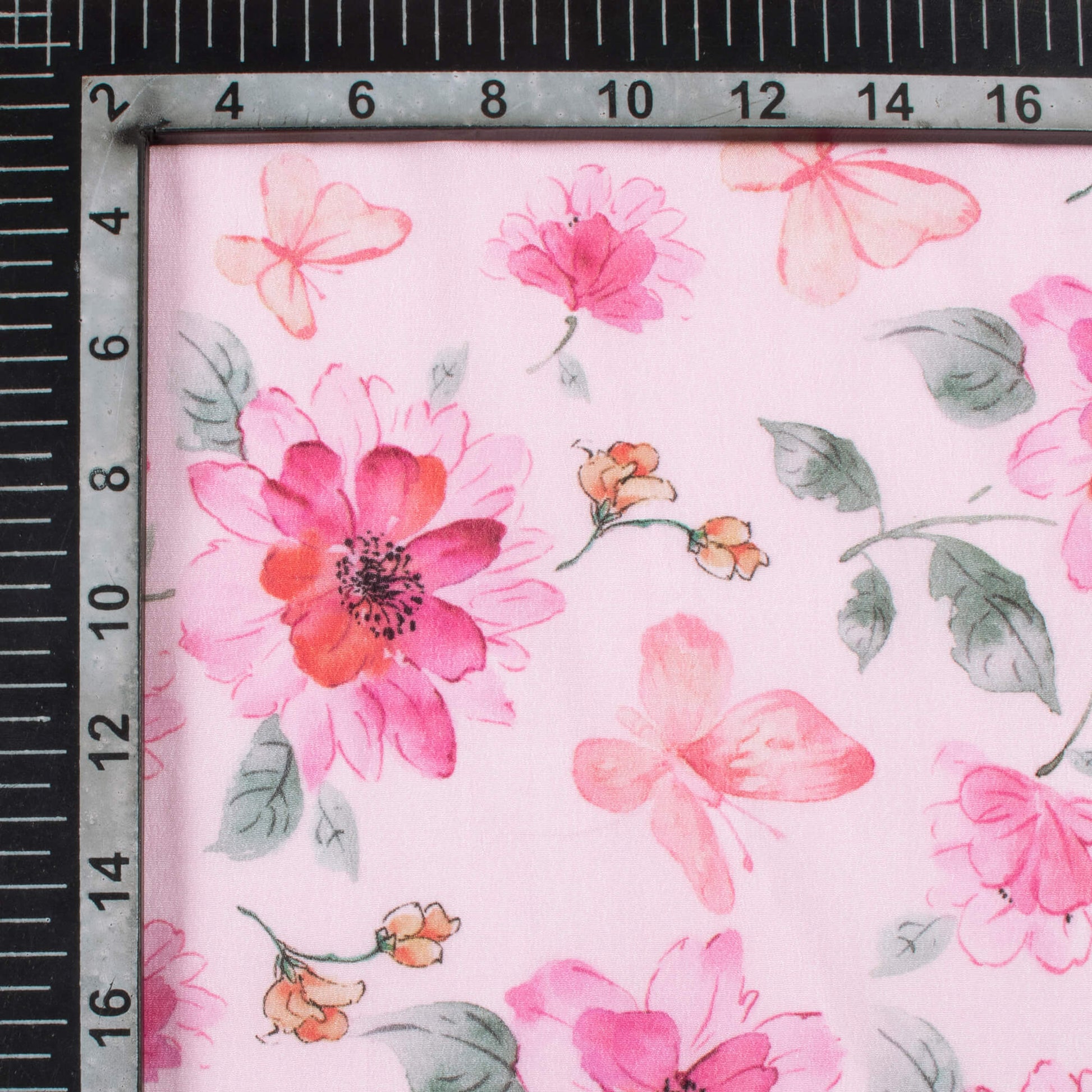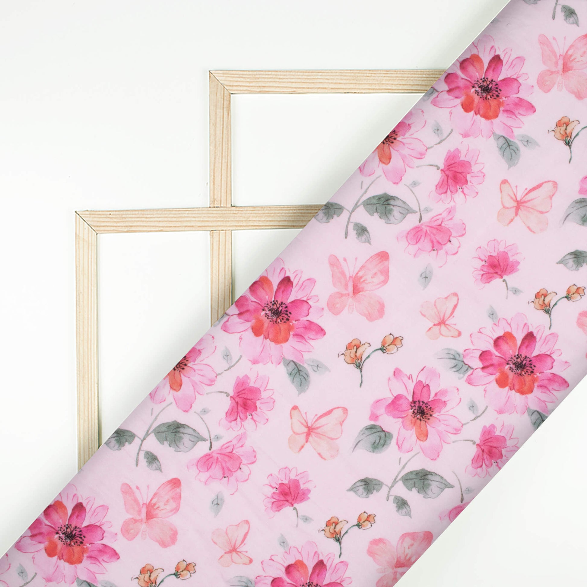 Taffy Pink And Swamp Green Floral Pattern Digital Print Viscose Natural Crepe Fabric