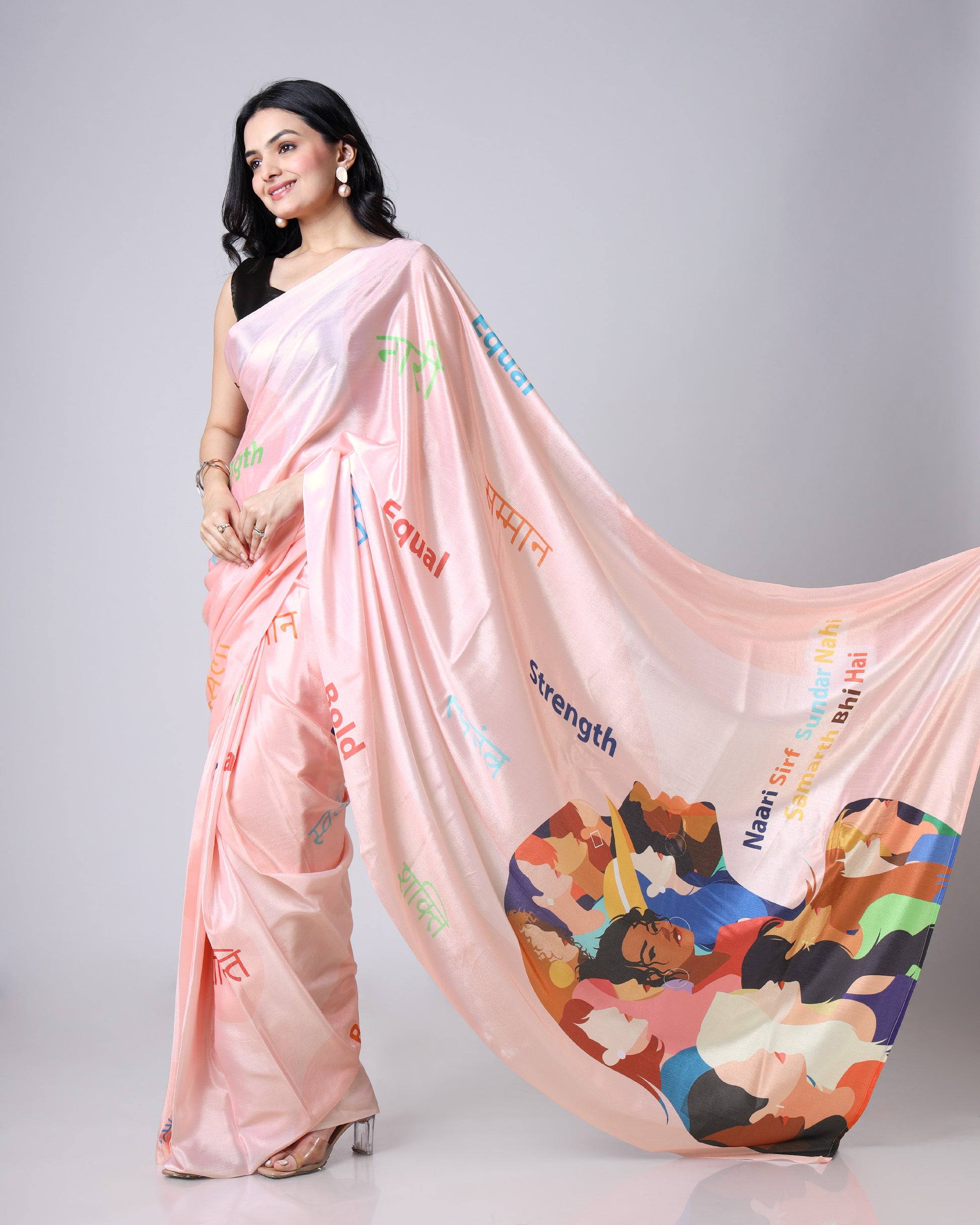 Her Strength, Her Story Typography Quirky Saree With Bold Messages