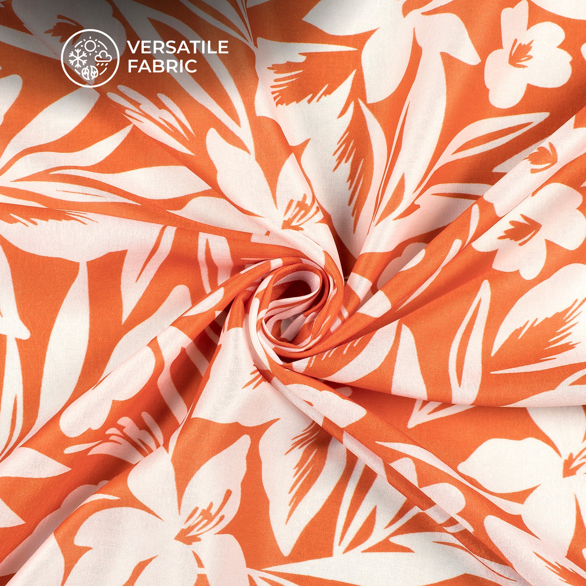 Orange Seamless Botnical Floral Digital Print Flat Silk Fabric