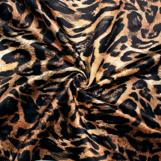 Peanut Brown And Black Leapord Animal Pattern Digital Print Lycra Fabric (Width 56 Inches) Peanut Brown And Black Leapord Animal Pattern Digital Print Lycra Fabric (Width 56 Inches)