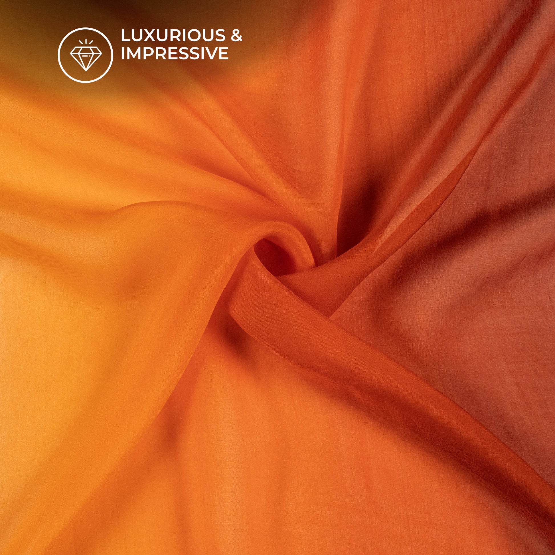 Orange Ombre Pattern Digital Print Pure Organza Fabric