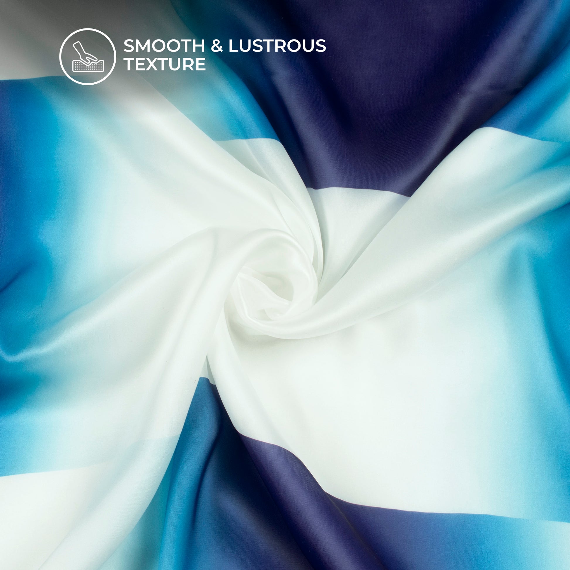 Navy Blue And White Ombre Digital Print Organza Satin Fabric