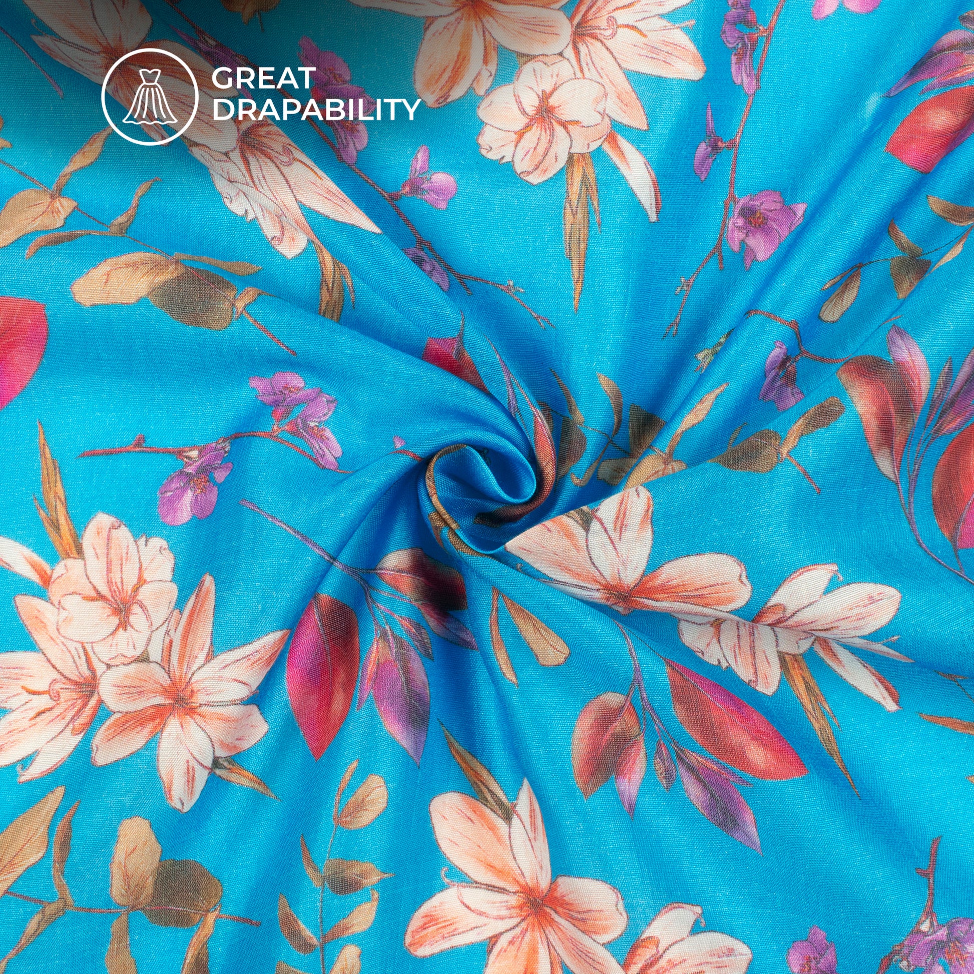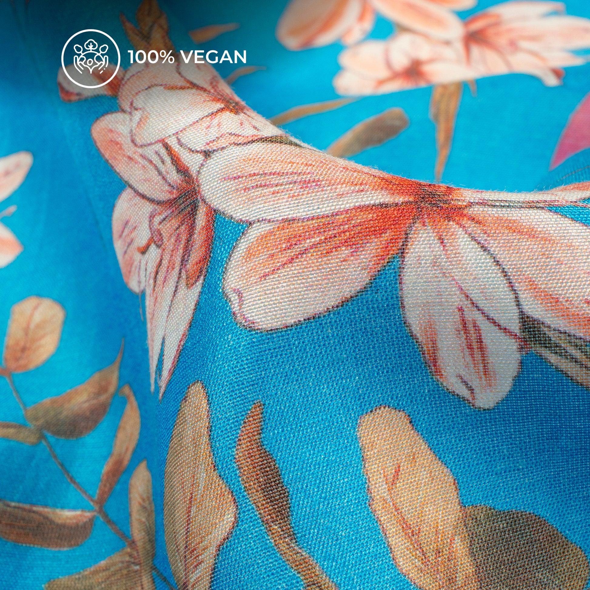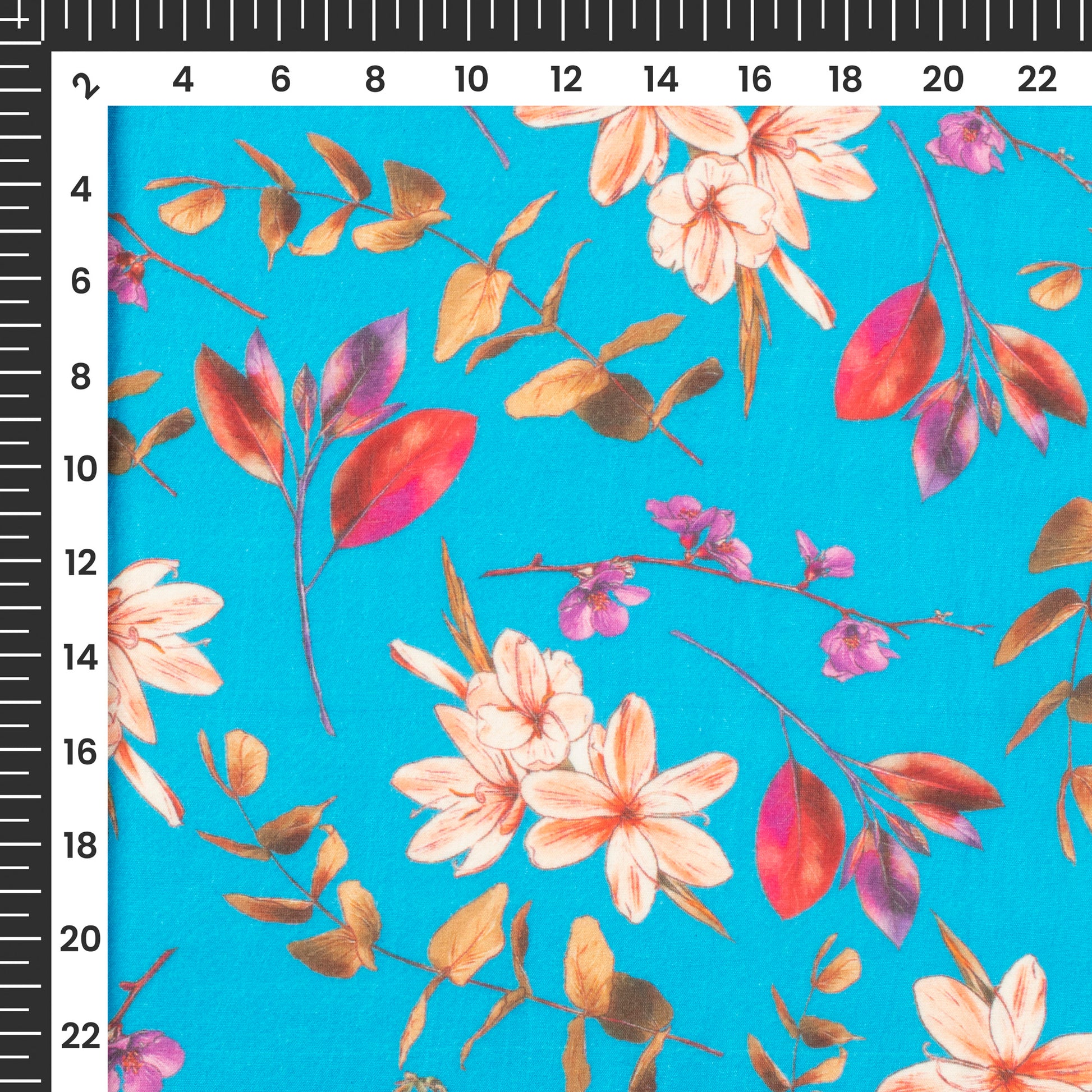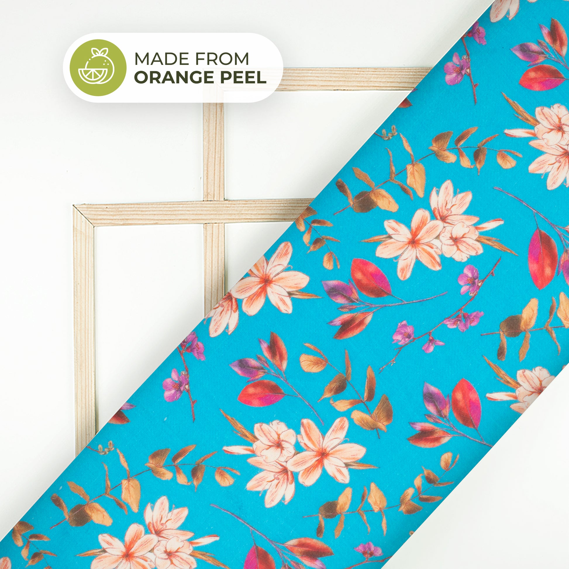 Azure Blue Floral Printed Sustainable Orange Fabric
