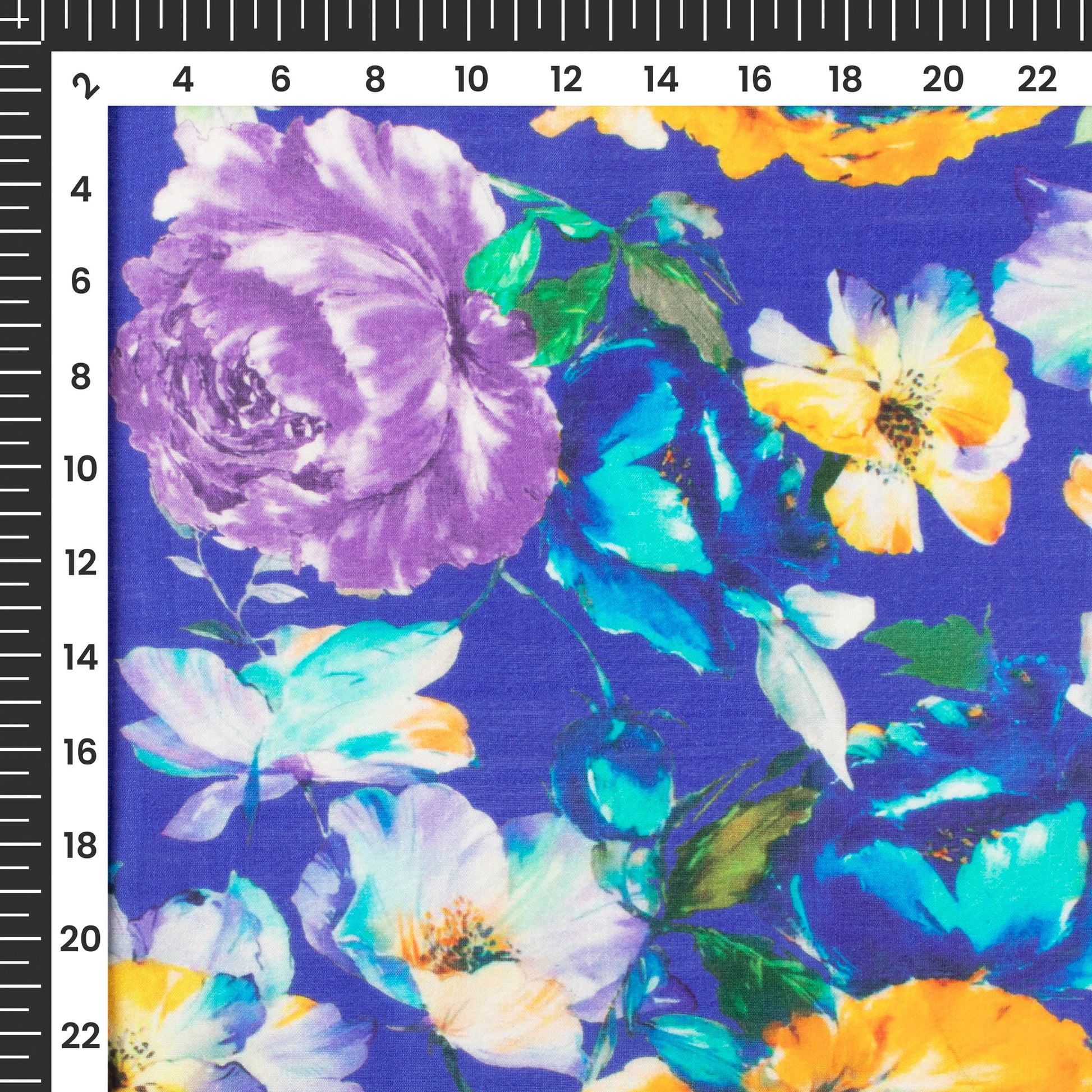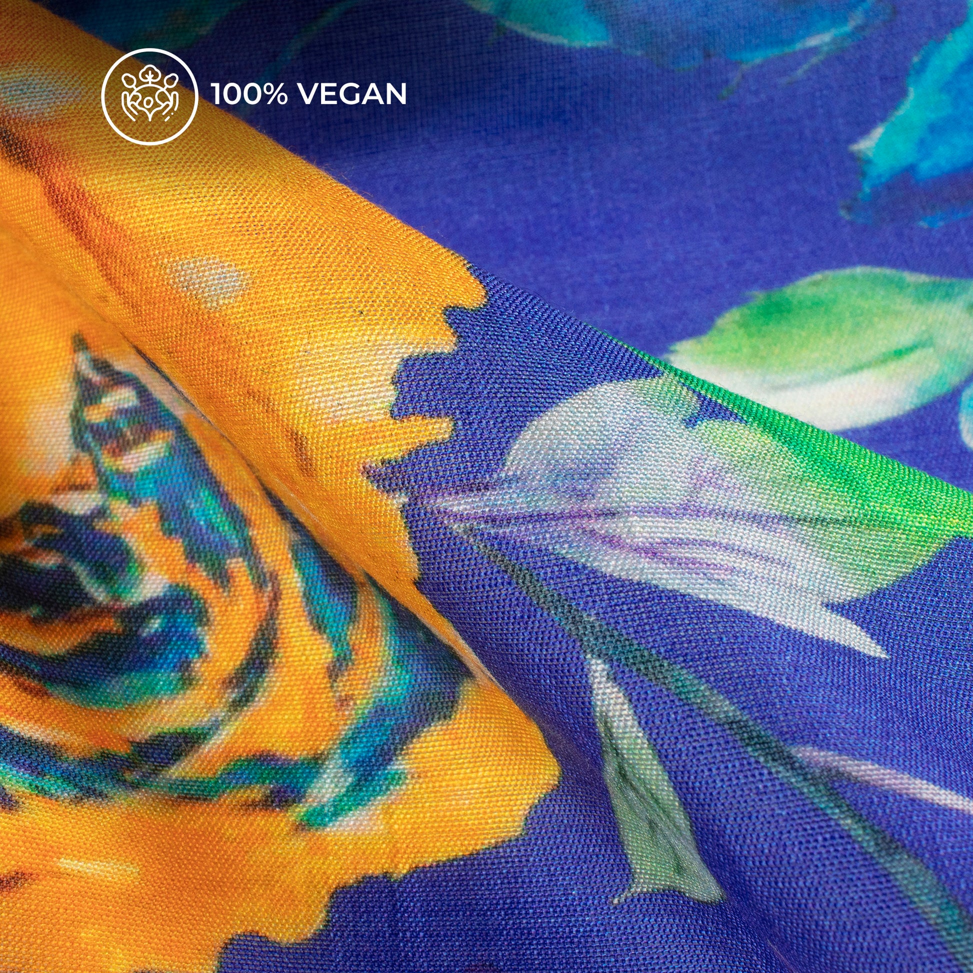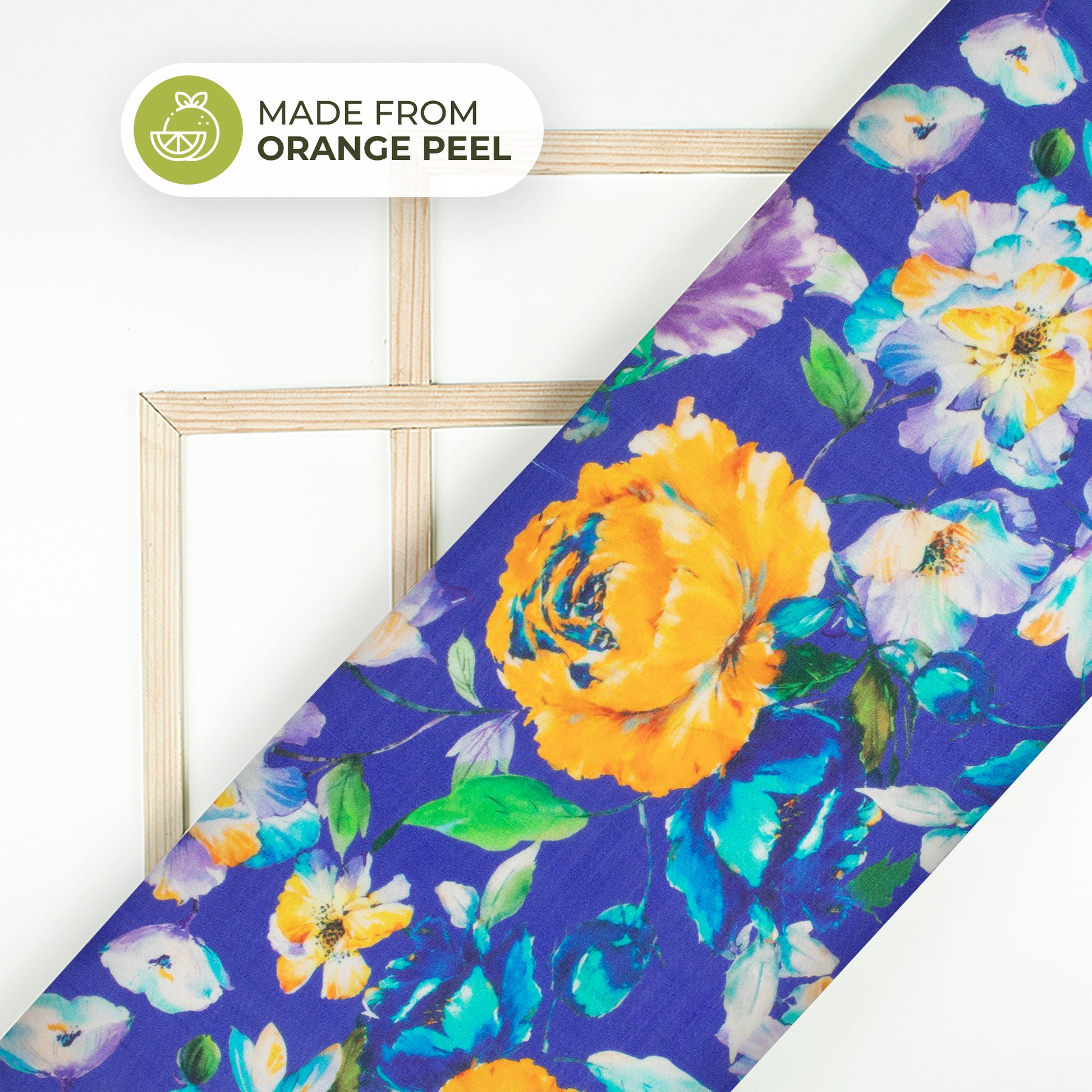 Cobalt Blue Floral Printed Sustainable Orange Fabric