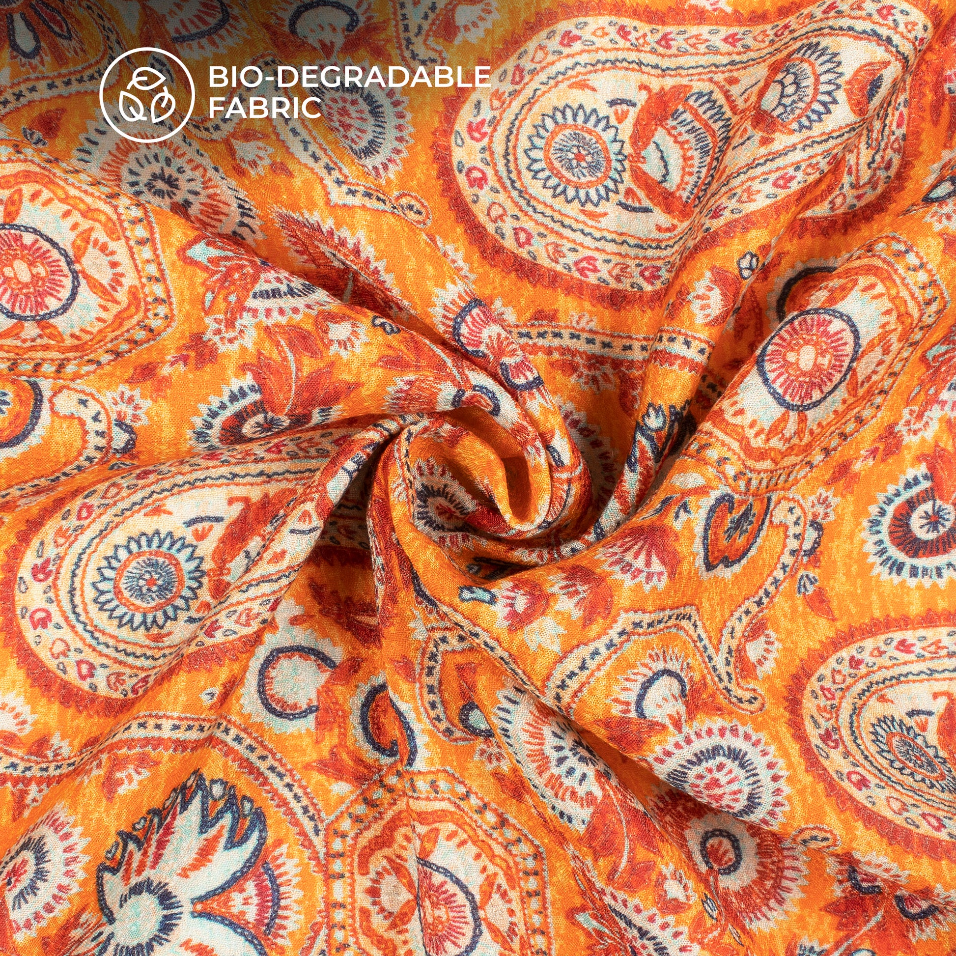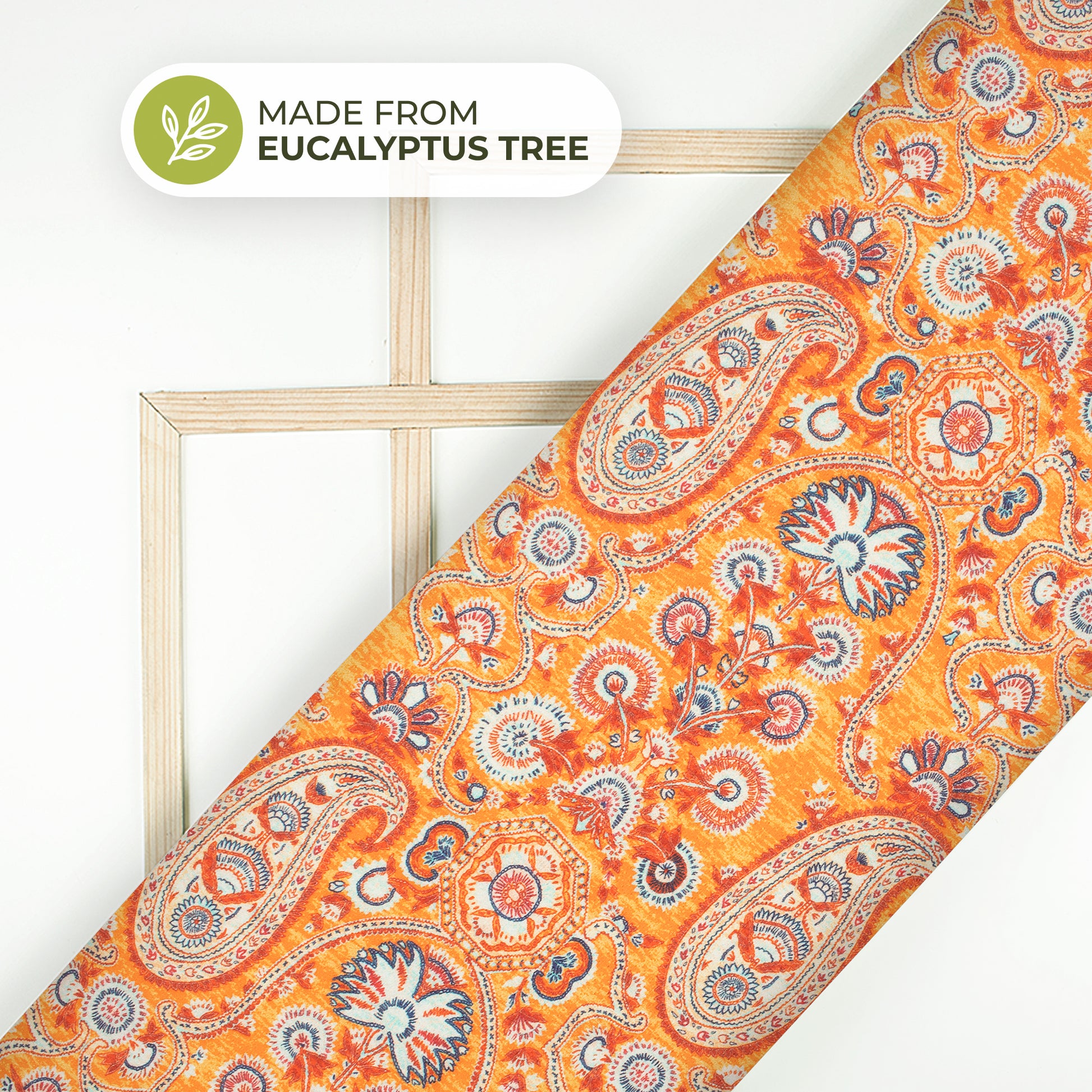 Honey Orange Paisley Printed Sustainable Eucalyptus Fabric
