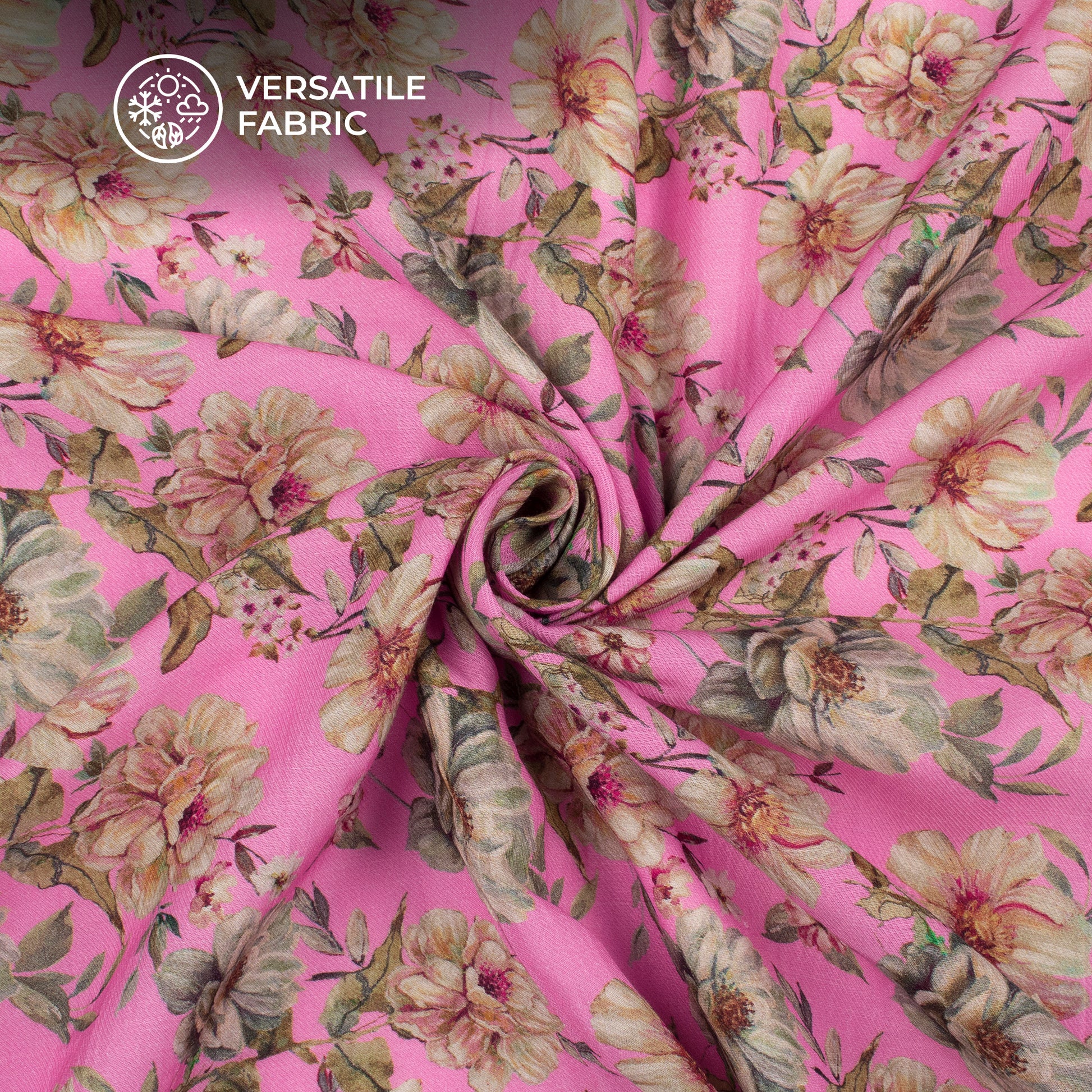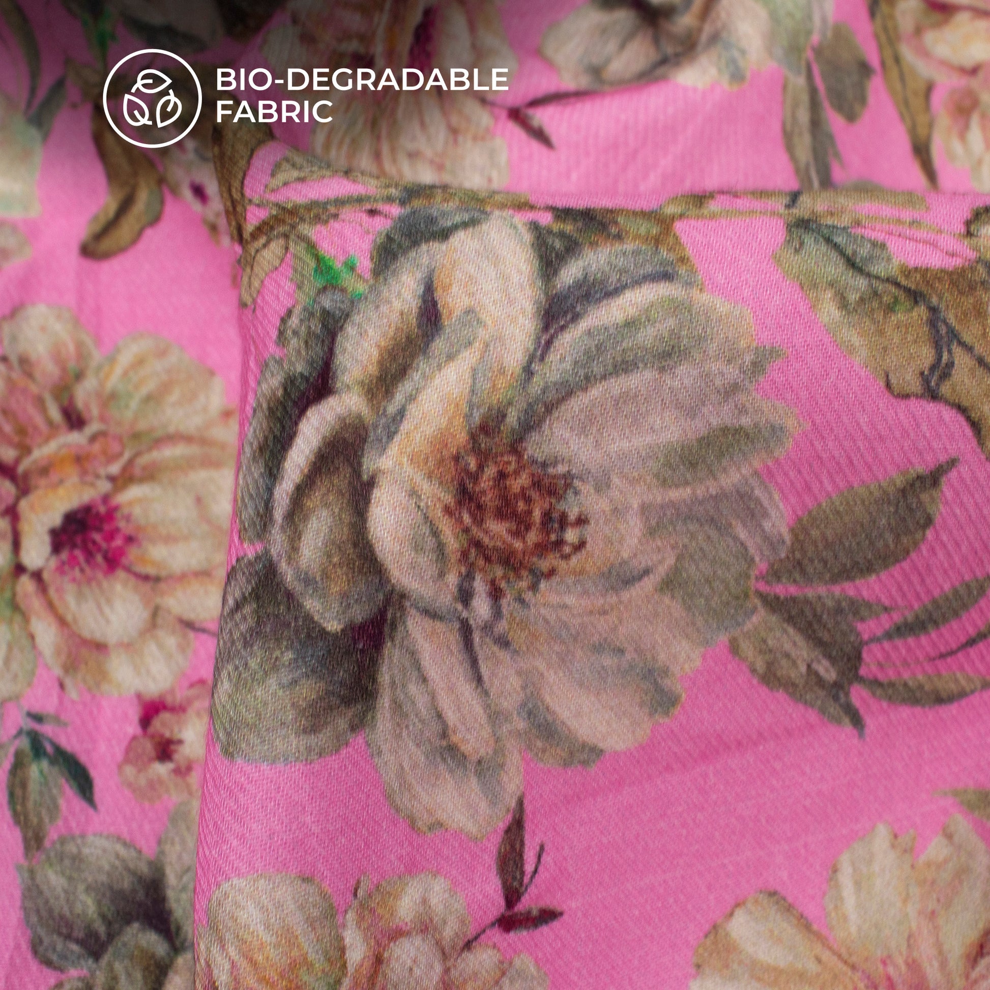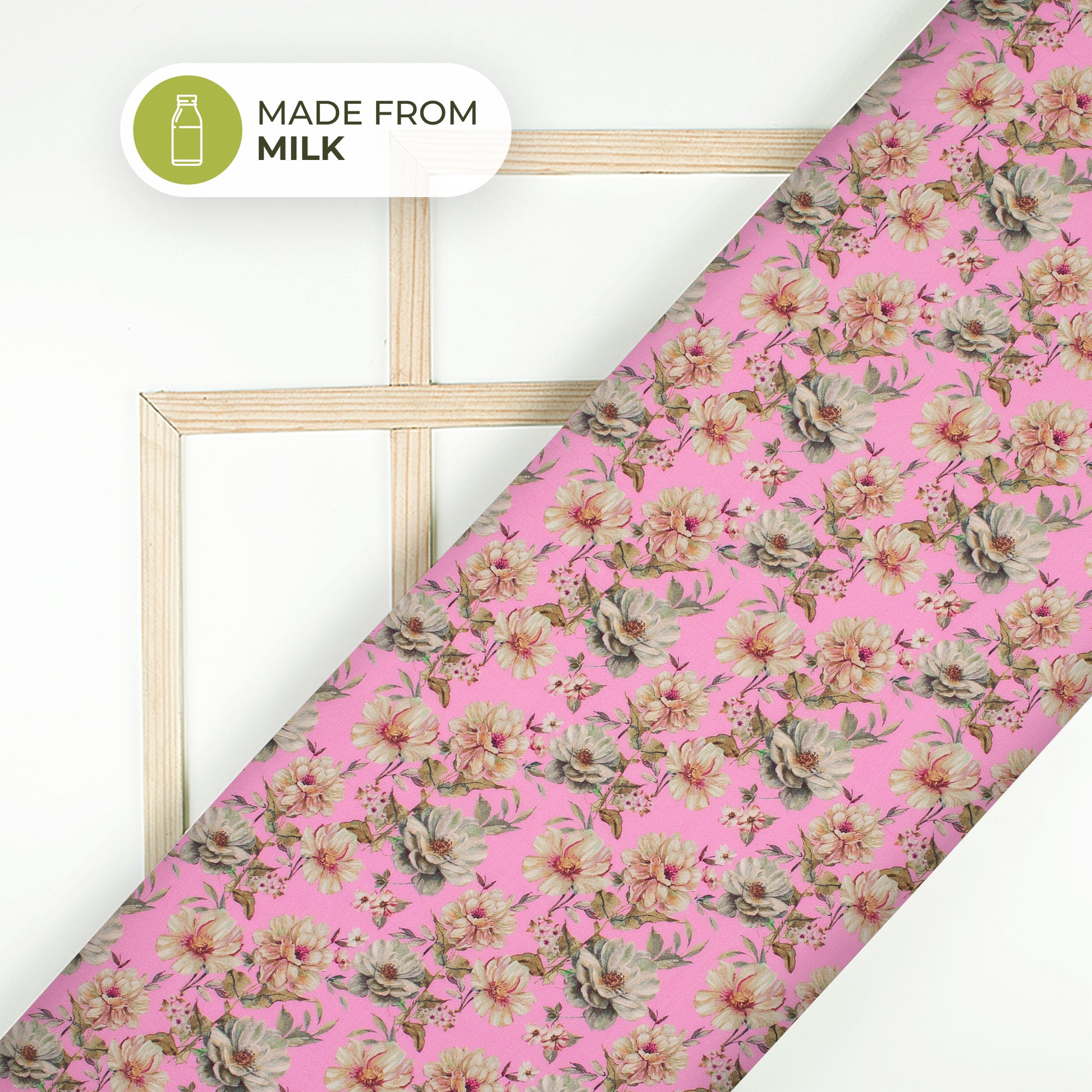 Pink Floral Printed Sustainable Milk Fabric