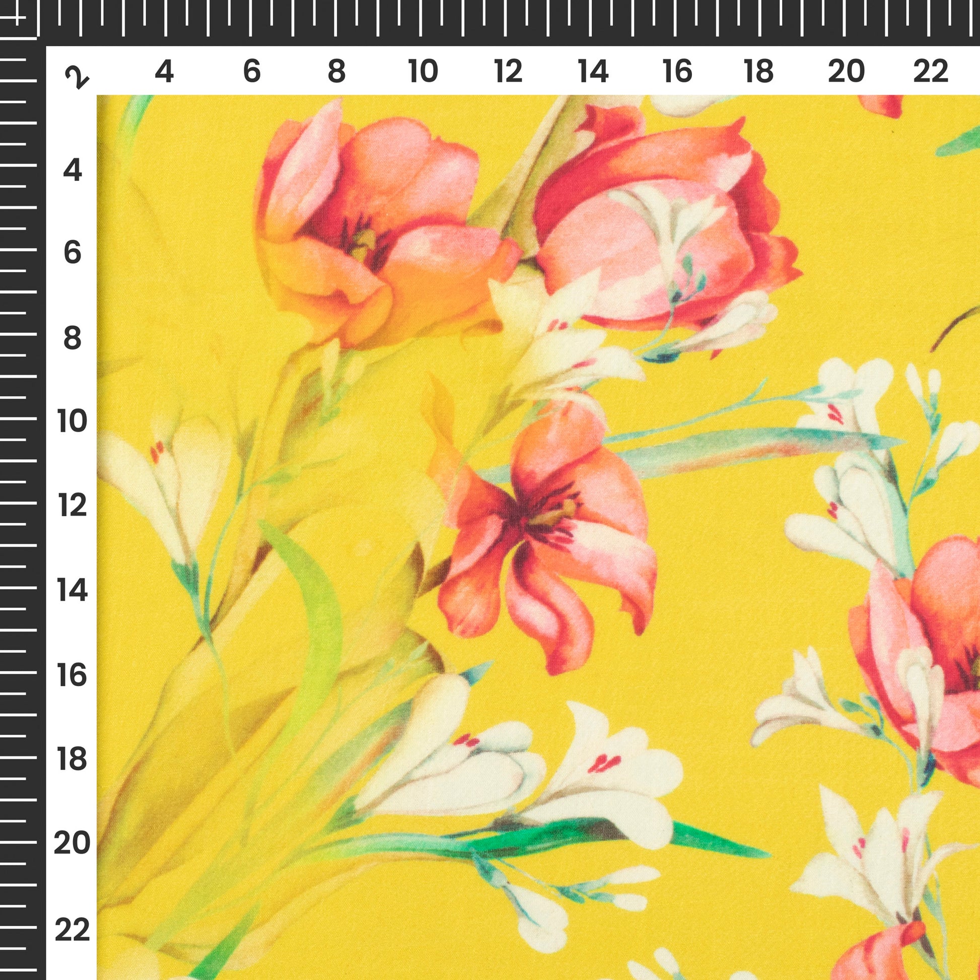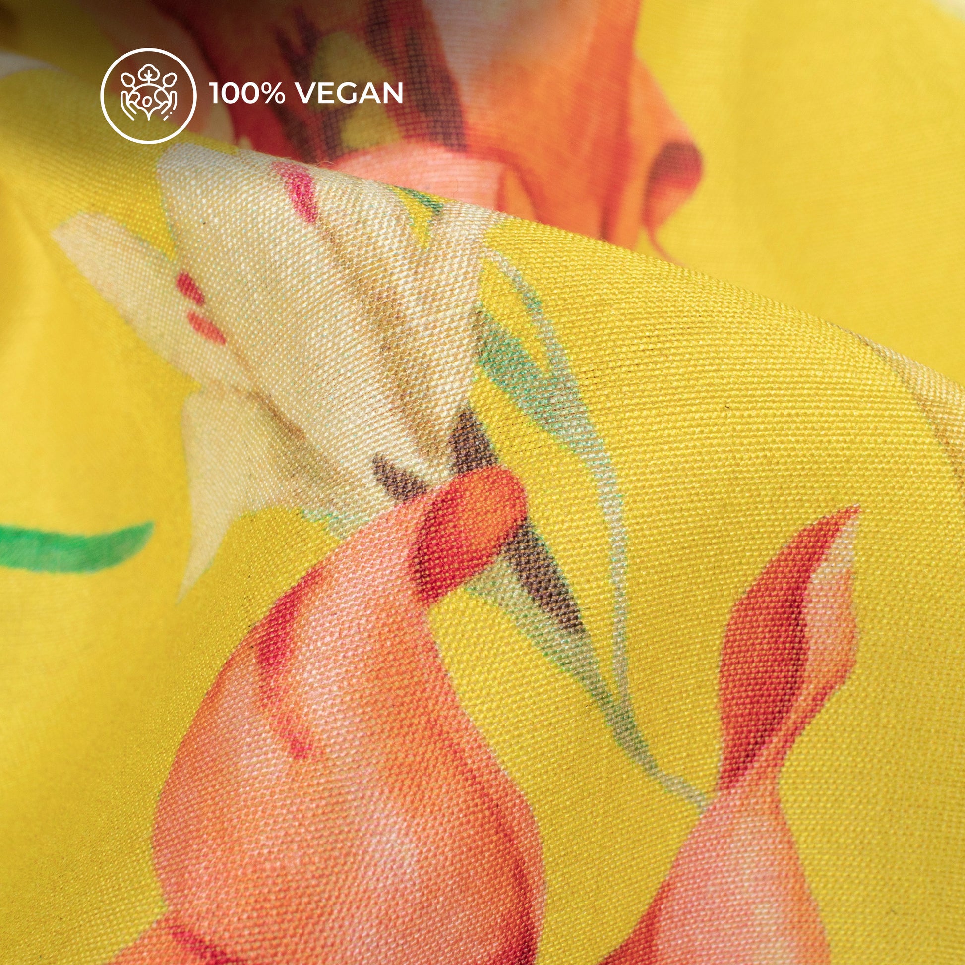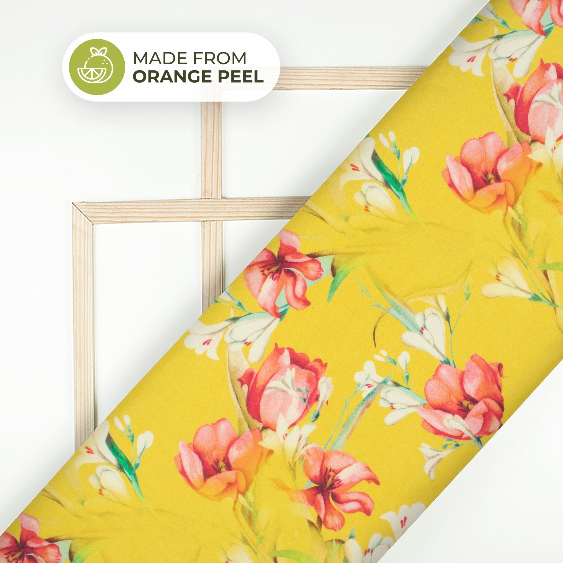 Lemon Yellow Floral Printed Sustainable Orange Fabric