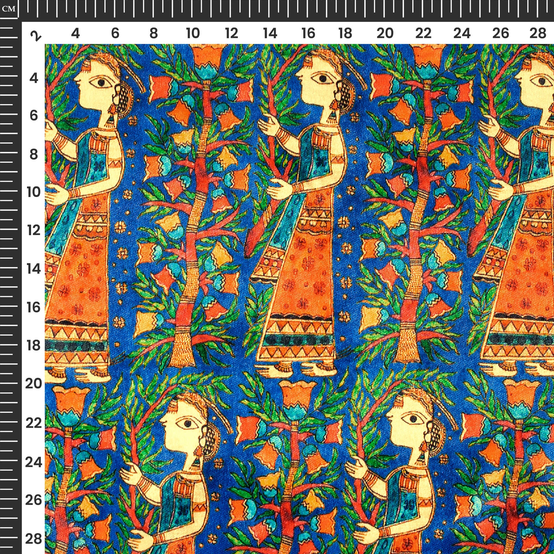 Blue Madhuvanii Digital Print Premium Velvet Fabric