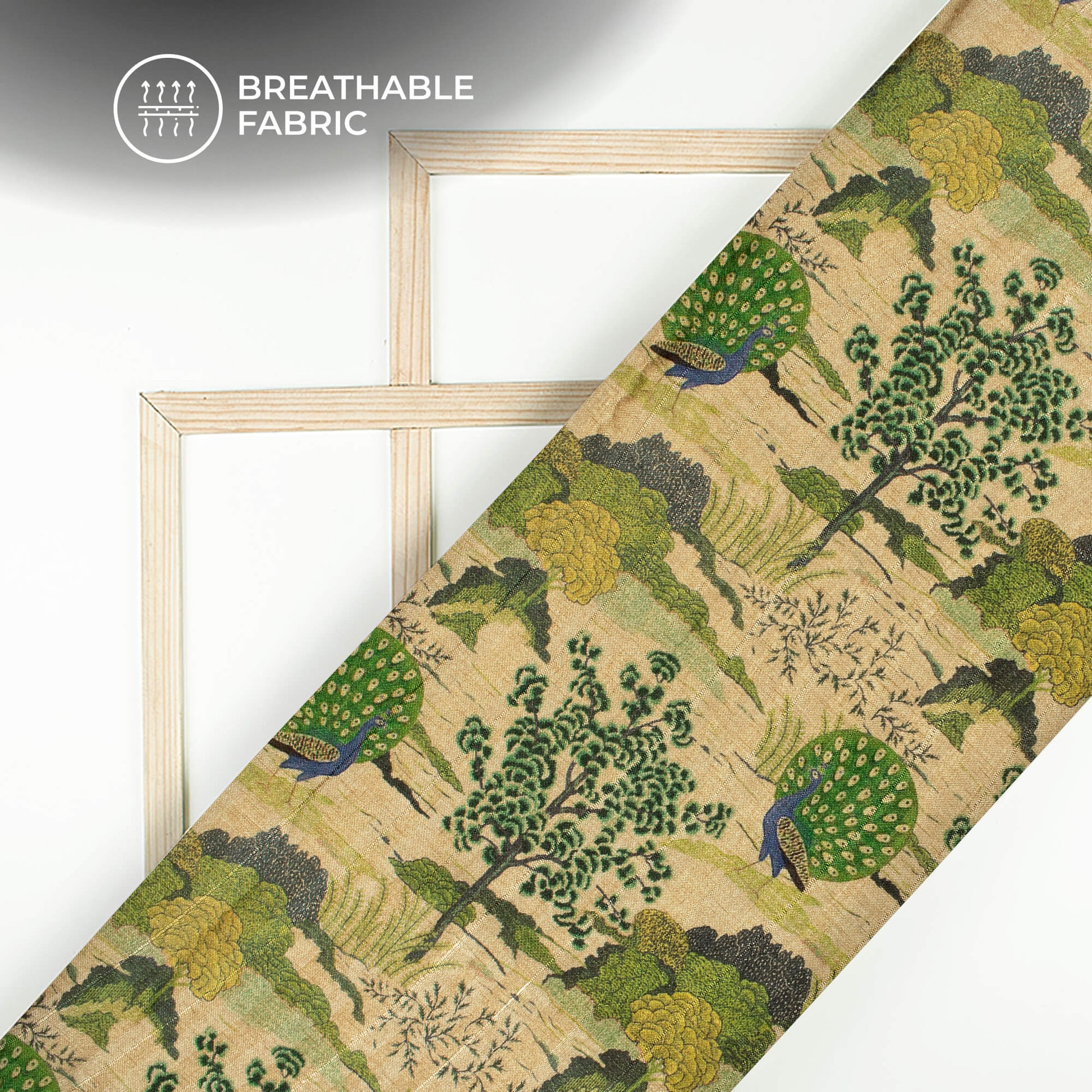 Peacock Garden Madhuvanii Printed Art Tusser Silk Fabric