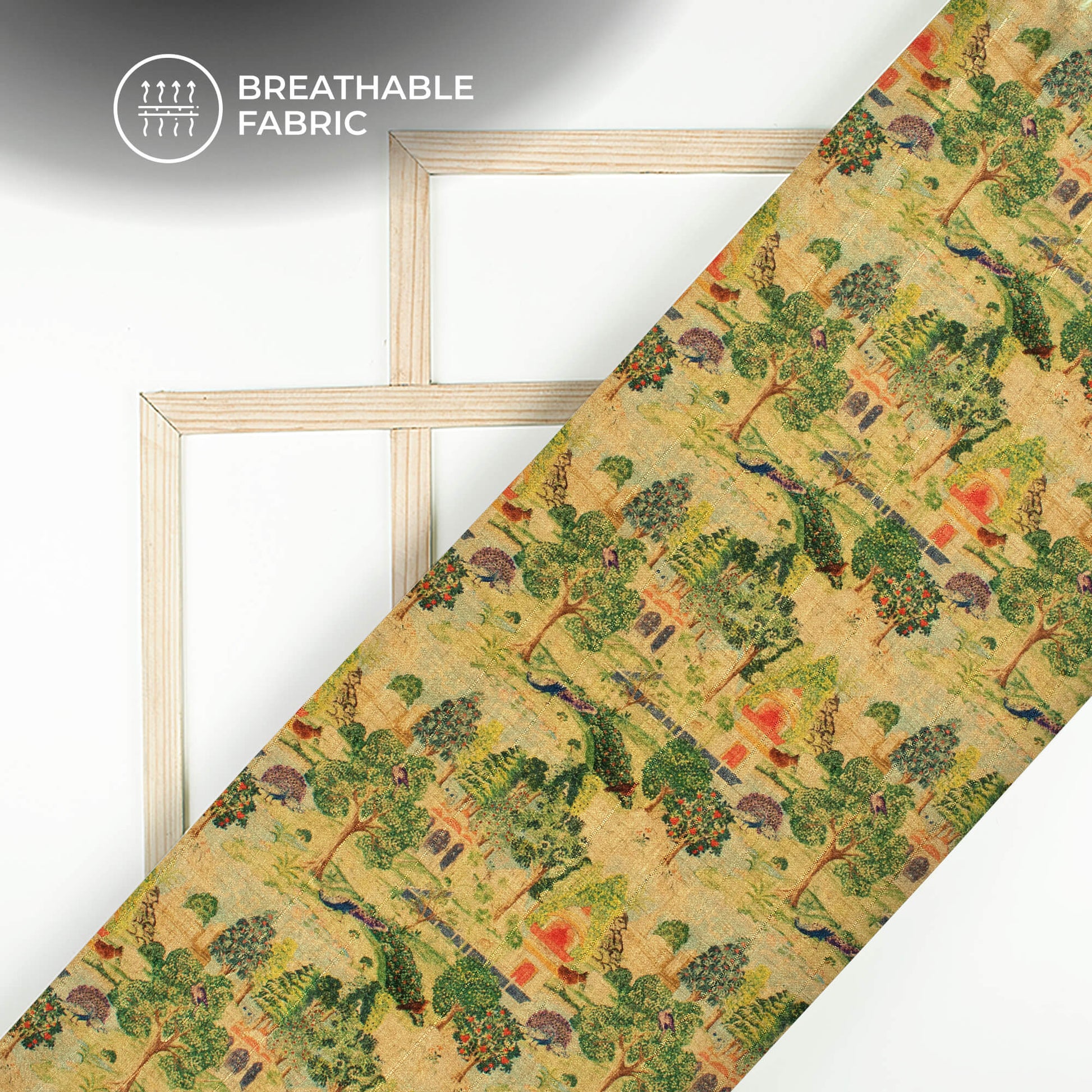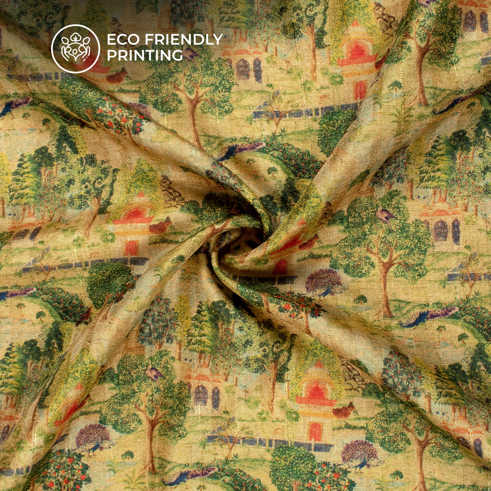 Peacock Garden Madhuvanii Printed Art Tusser Silk Fabric