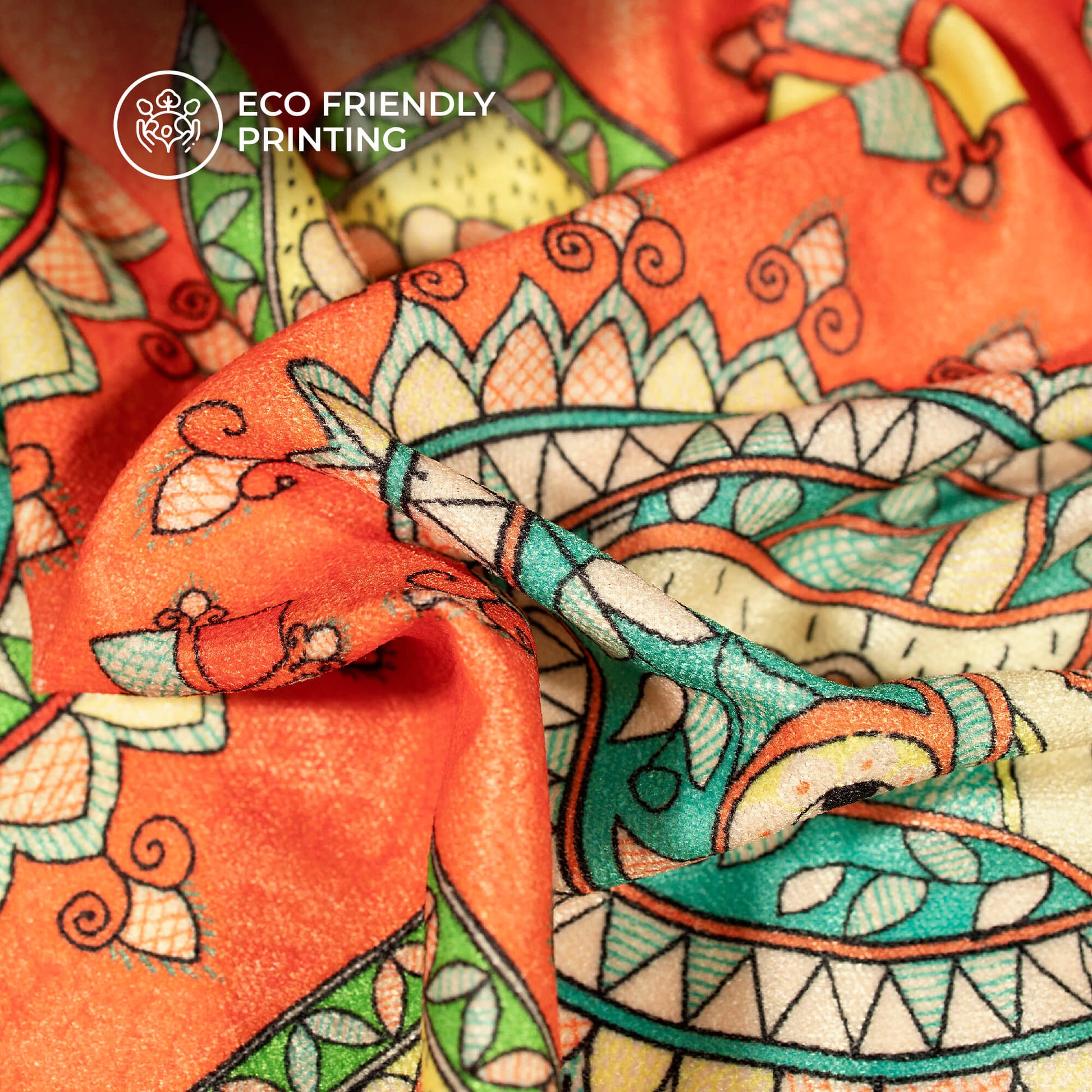 Royal Orange Madhuvanii Digital Print Premium Velvet Fabric