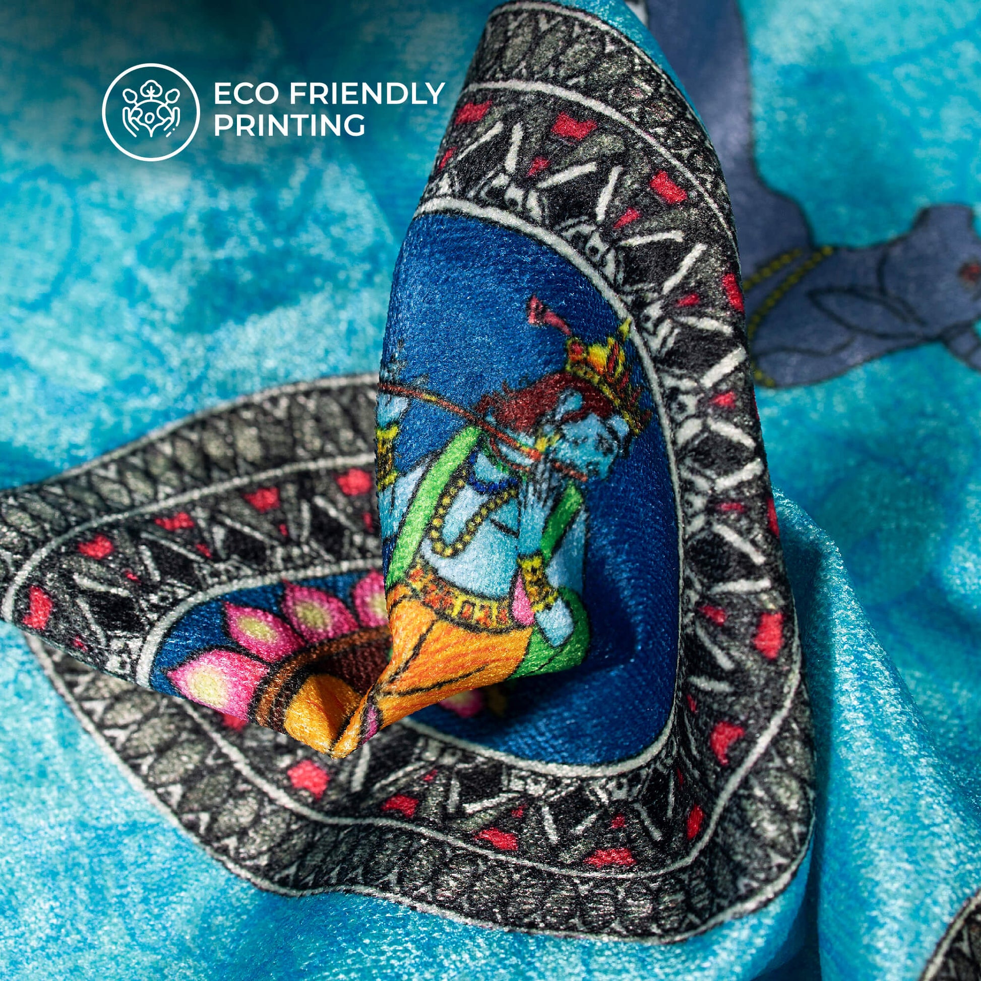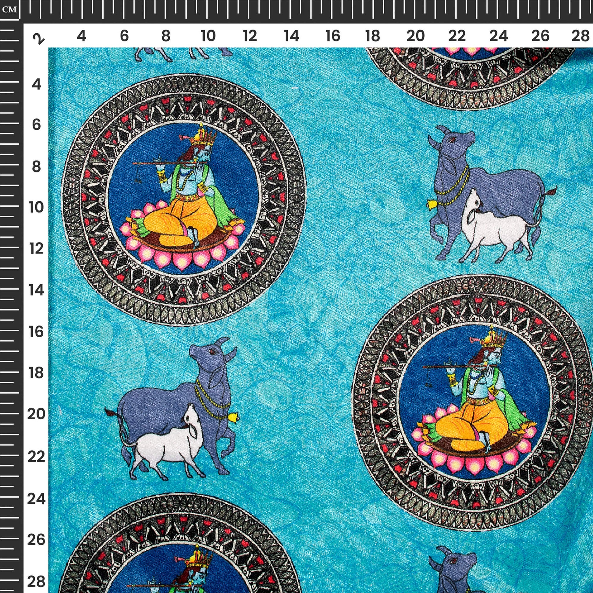 Sky Blue Madhuvanii Digital Print Premium Velvet Fabric