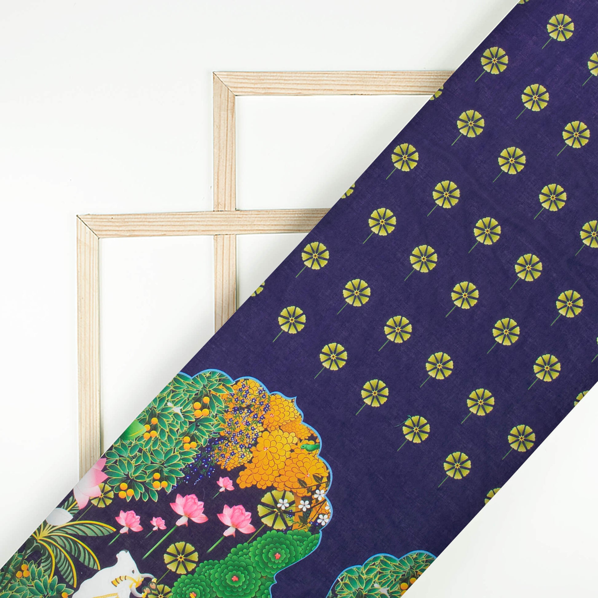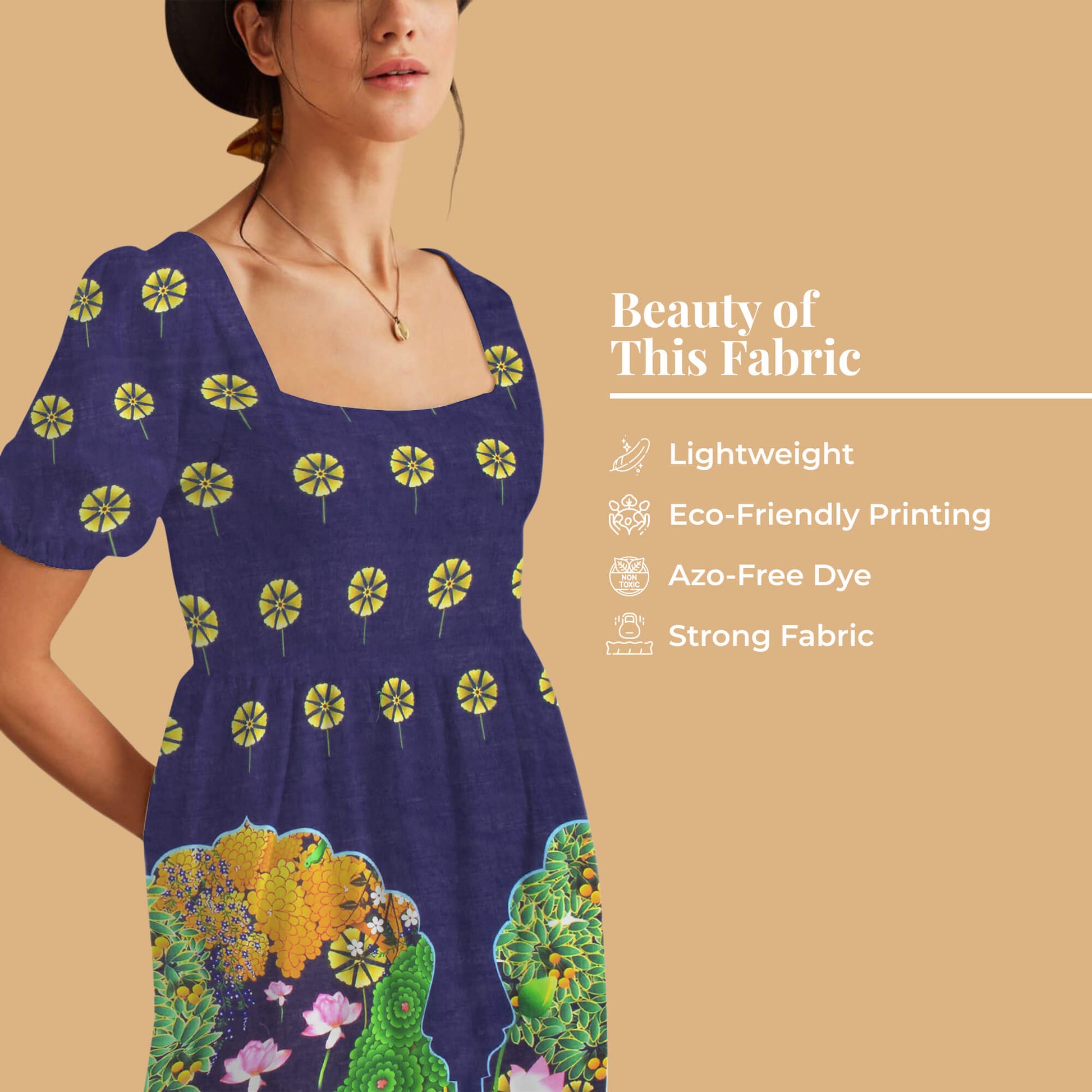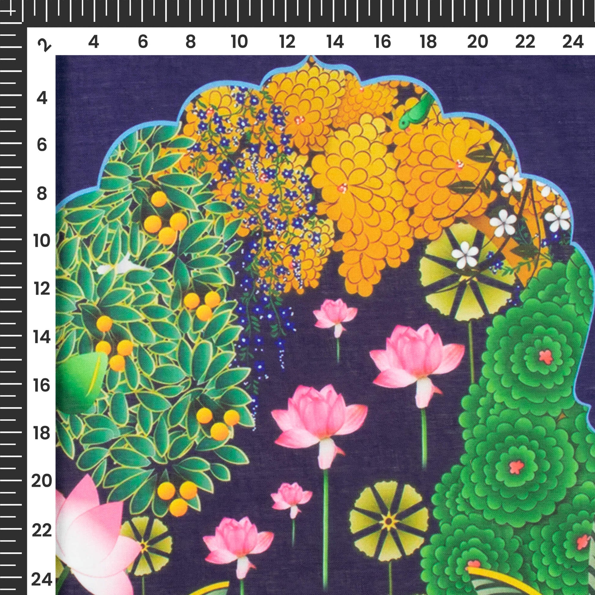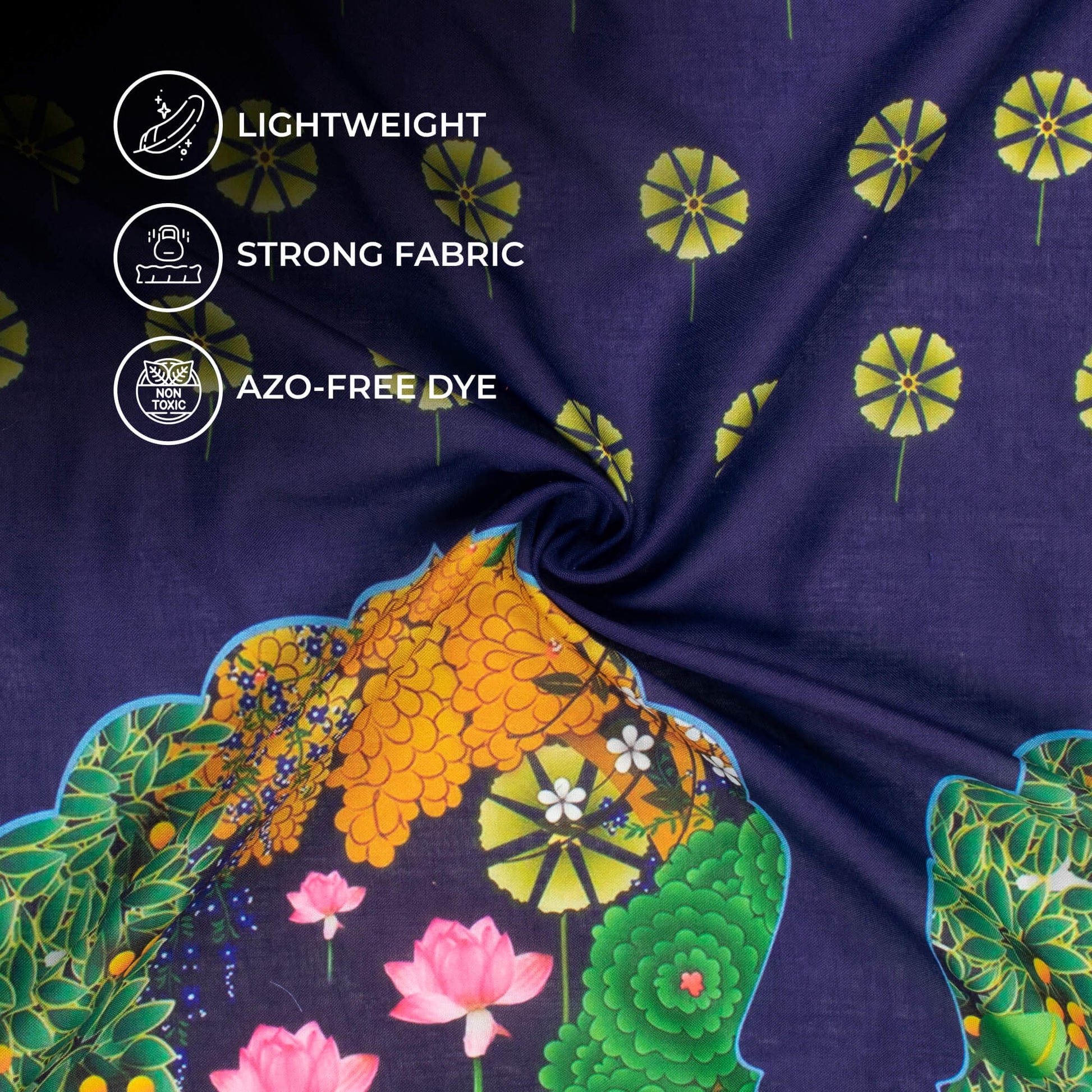 The Pichwai pattern collection from fabcurate is an adoption of the Pichwai painting that depicts the historical events of Lord Krishna's life. Motifs of leaves, trees, and scenic beauty on the fabric will surely mesmerize you at a glance. Digitally printed Pichwai patterns are something unique that tell a lot about our culture and one can display them in style. You can wear these fabrics during festive days and special occasions. One can make dresses, sarees, tops, and much more using this fabric.