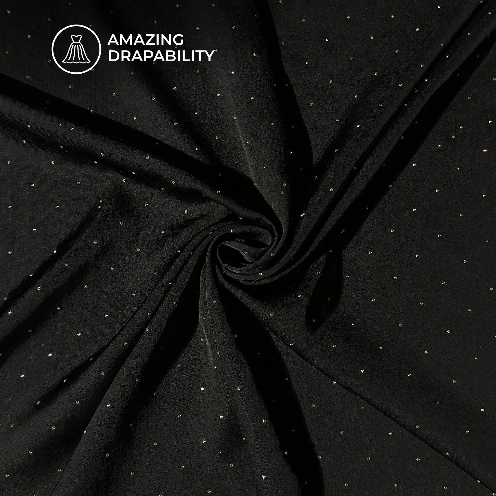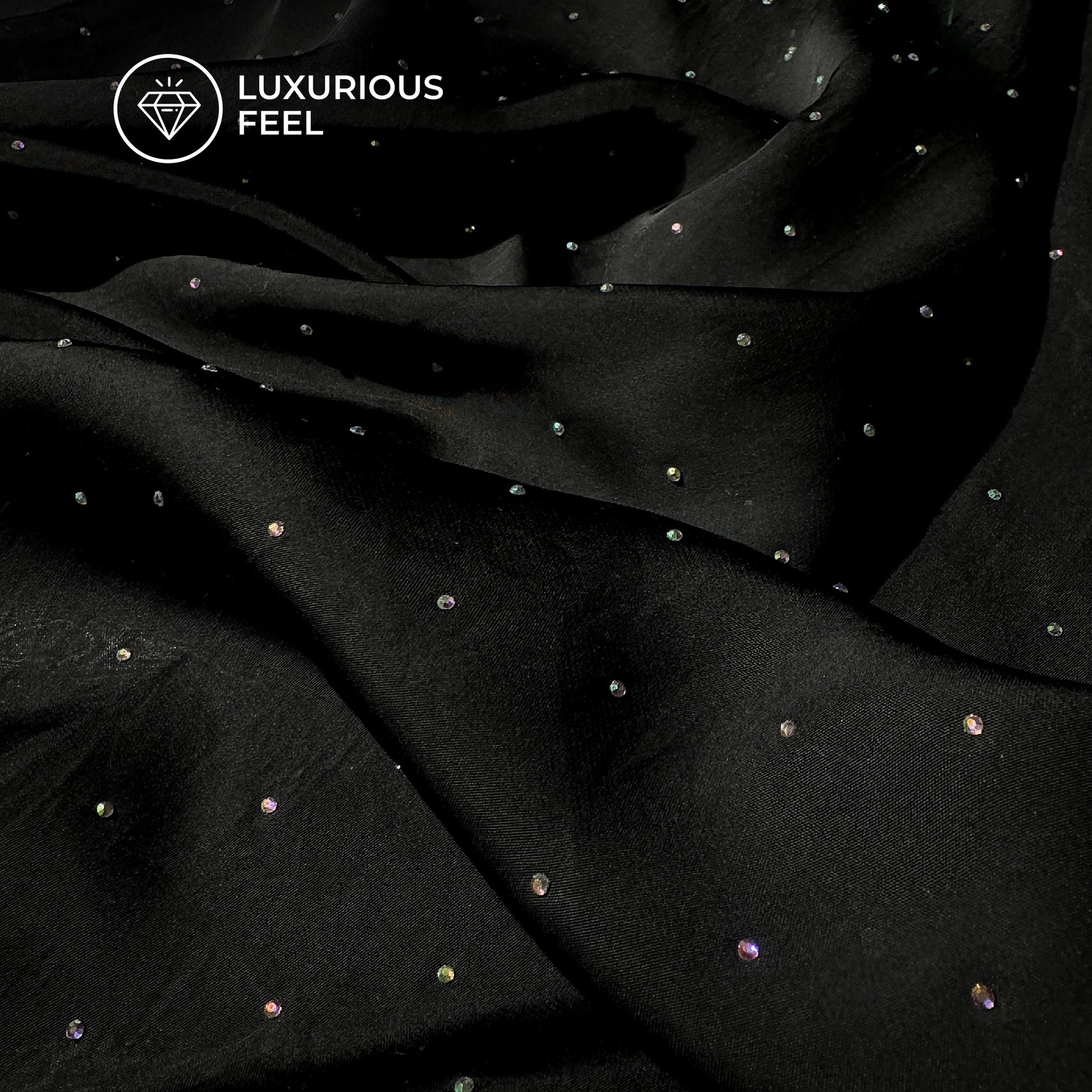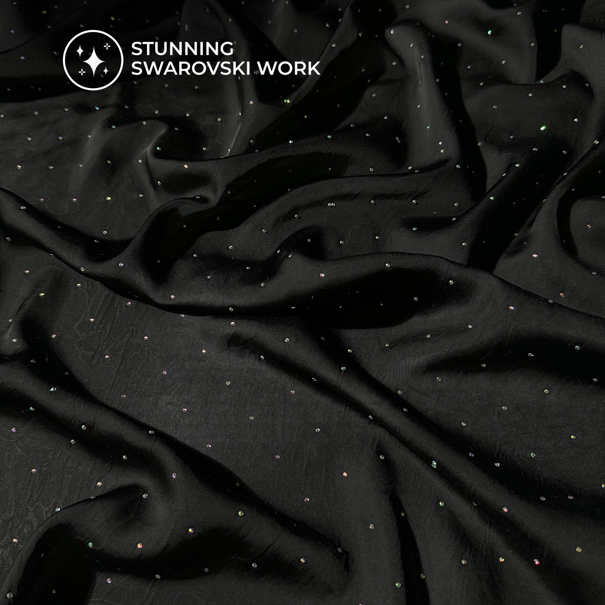 Swarovski Imported Satin Fabric is a masterpiece of refined grace, designed for those who seek unmatched luxury in their garments. The fabric’s smooth satin base is complemented by the impeccable sparkle of Swarovski crystals, creating a captivating blend of elegance and brilliance. Ideal for evening wear, party outfits, or high-end fashion pieces, this fabric offers a rich drape and silky texture that flows effortlessly. Its sheen complements the crystal embellishments, making it perfect for creating statement pieces that exude glamour and refinement.