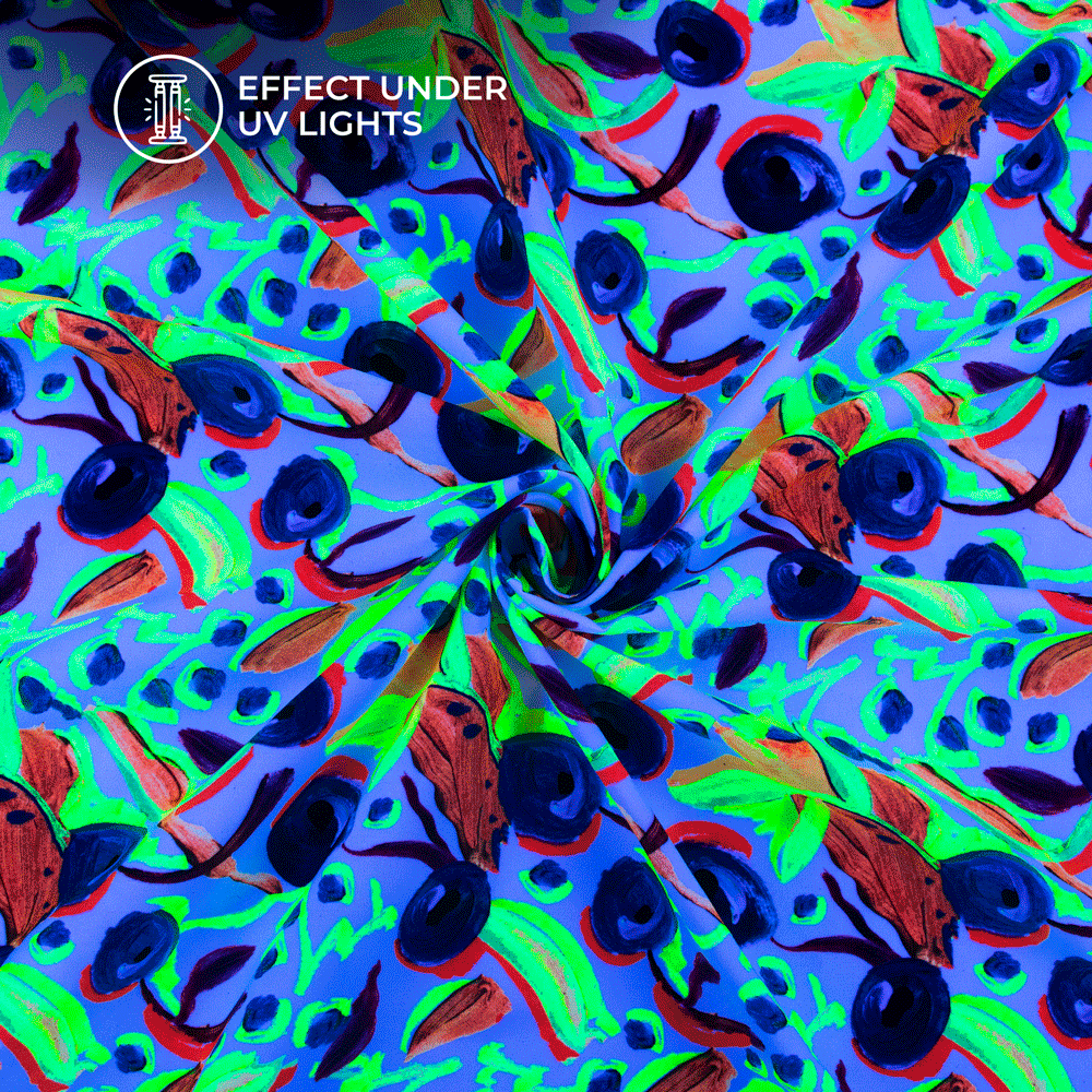 Abstract Seamless Leaf Digital Print Neon Rayon Fabric