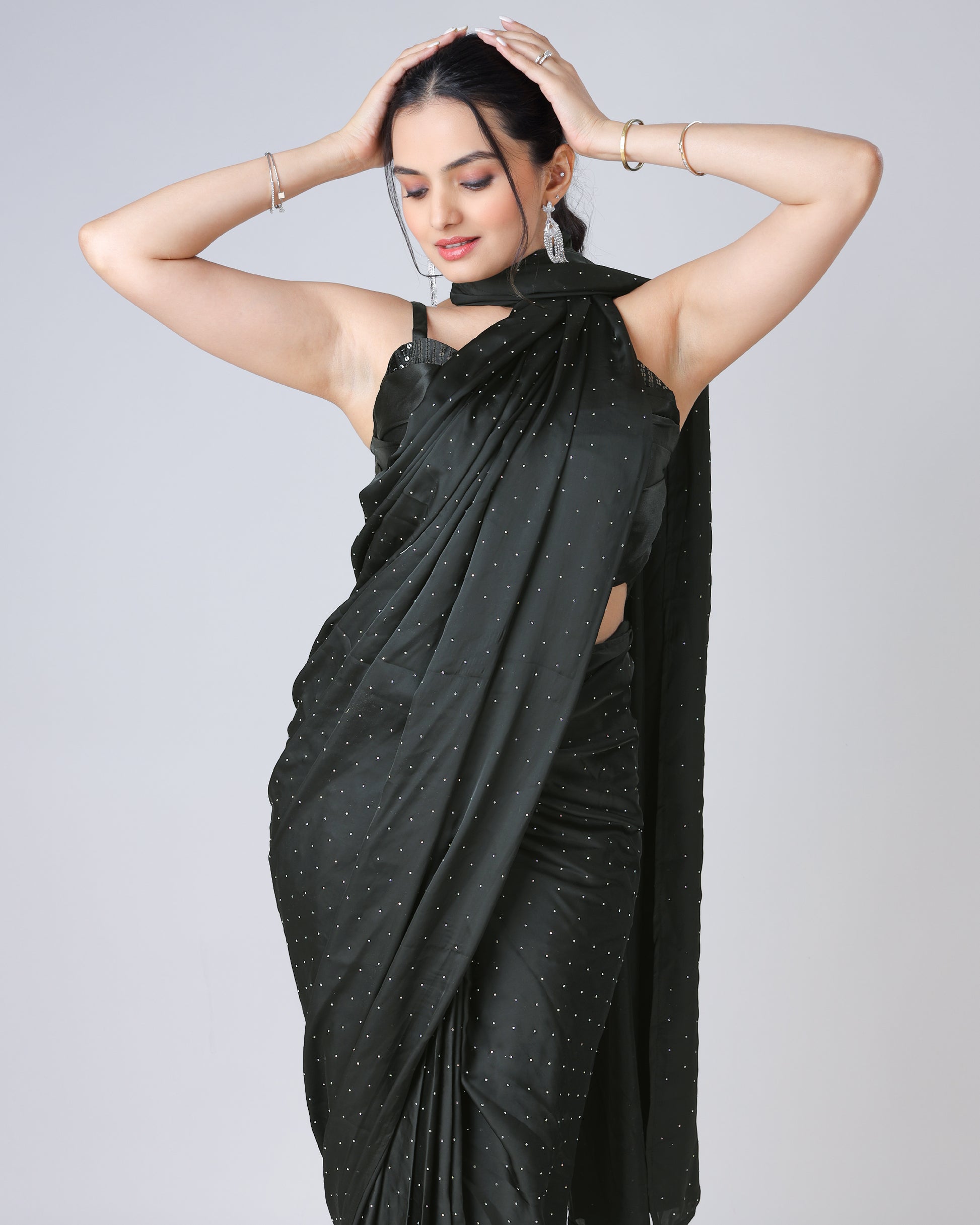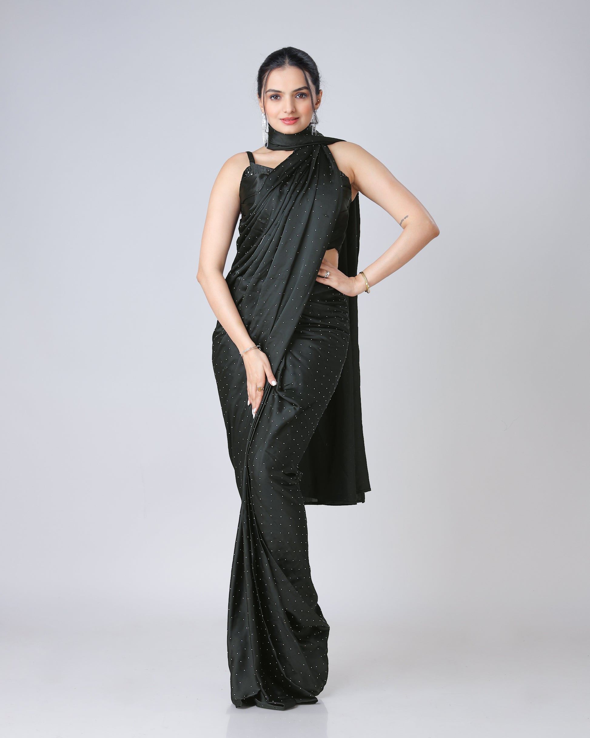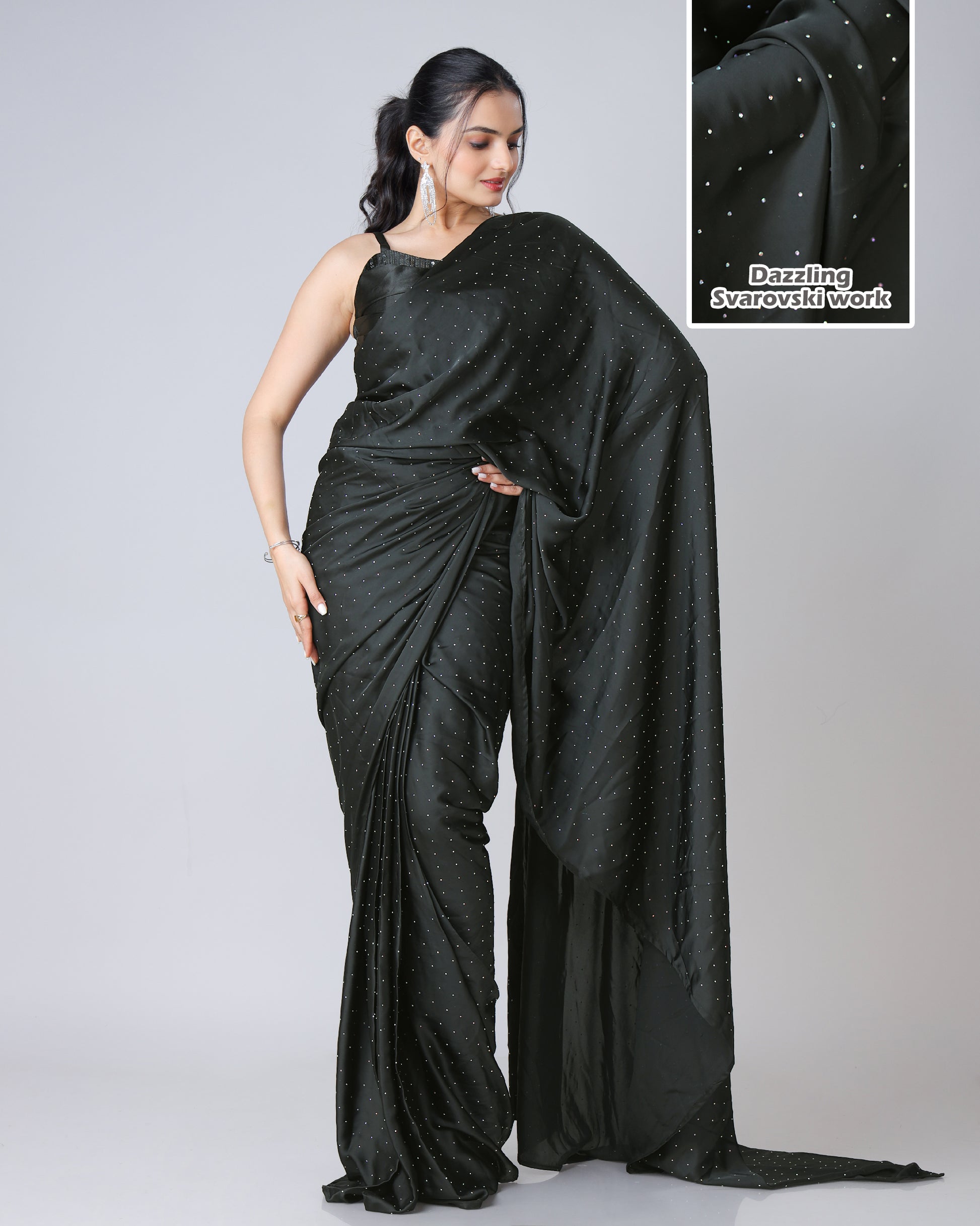 Black Stunning Designer Saree Featuring Svarovski Stone Work
