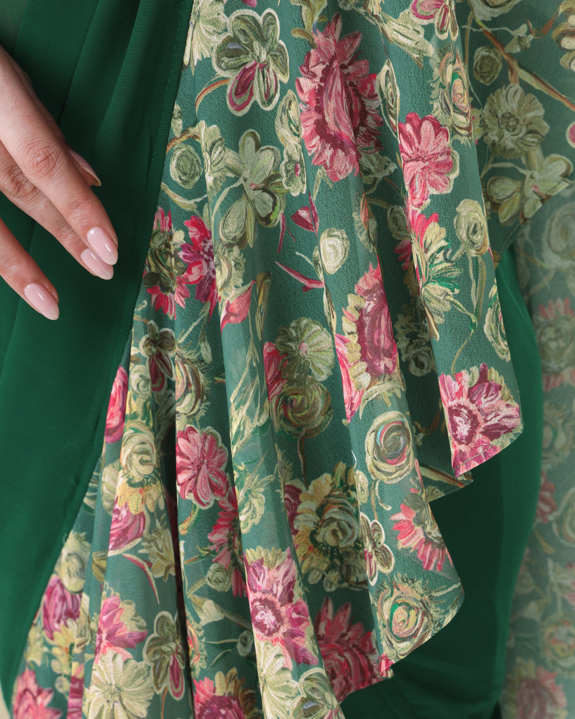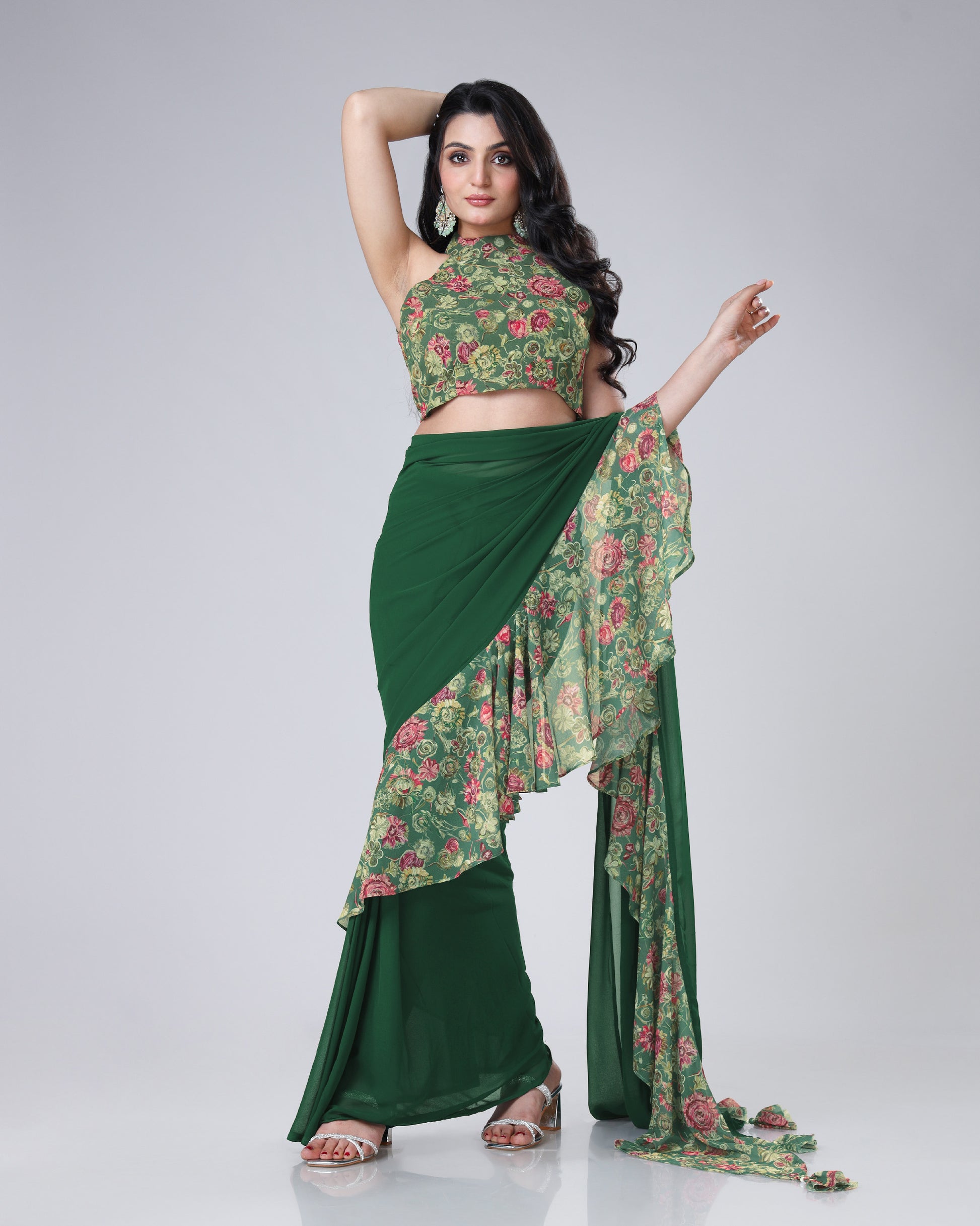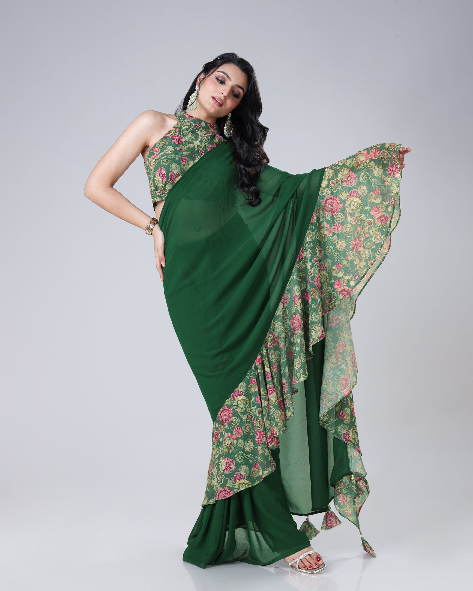 Elevate your ethnic wardrobe with our Ruffle Georgette Saree, available in both plain and printed styles for every mood and occasion. Crafted in lightweight georgette, it drapes effortlessly to give you a trendy yet graceful look. Known as our #1 seller saree, it beautifully blends modern design with timeless Indian tradition. Perfect for parties, weddings, or festive celebrations, this saree is a true statement of elegance and style.