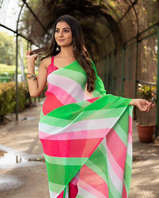 -25% offCerise Red And Green Leheriya Pattern Digital Print Georgette Pleated Saree Cerise Red And Green Leheriya Pattern Digital Print Georgette Pleated Saree