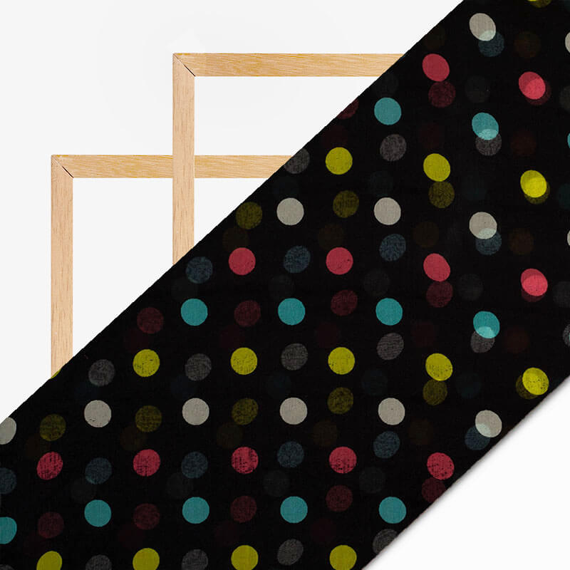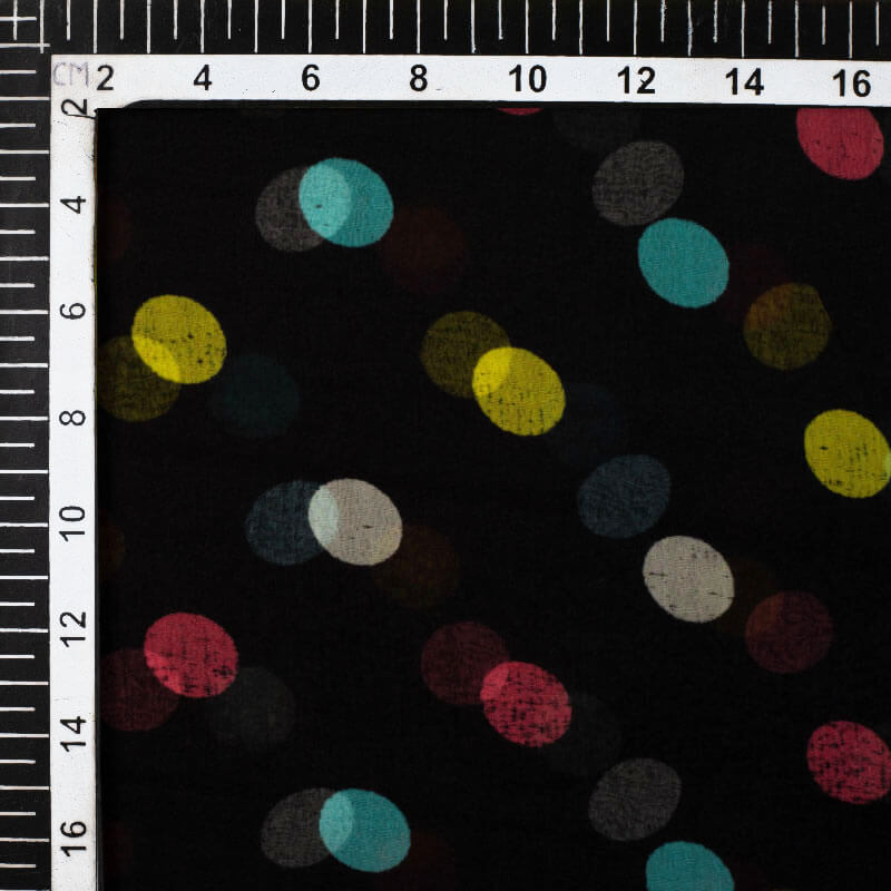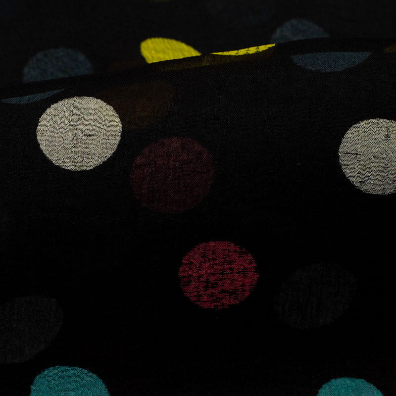 Black And Yellow Polka Dots Pattern Digital Print Bemberg Chiffon Fabric