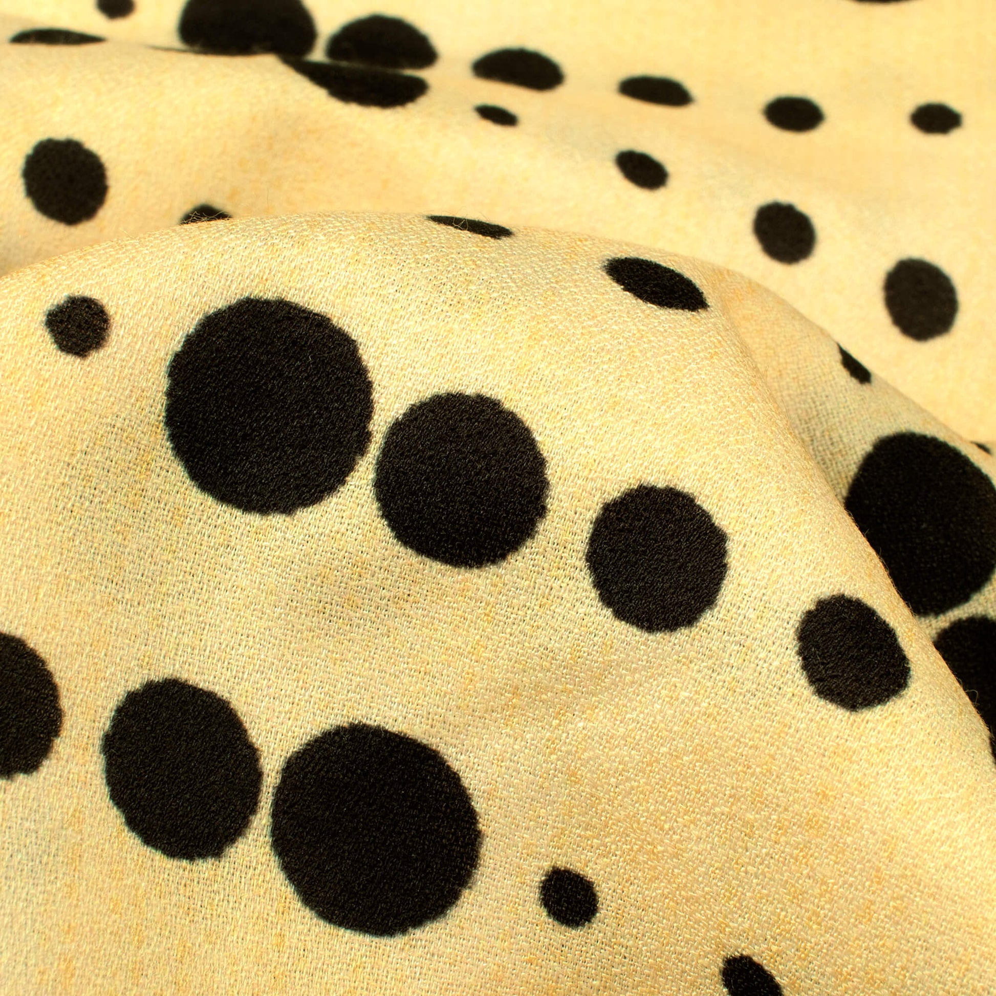 Cream Polka Dots Pattern Digital Print Moss Crepe Fabric