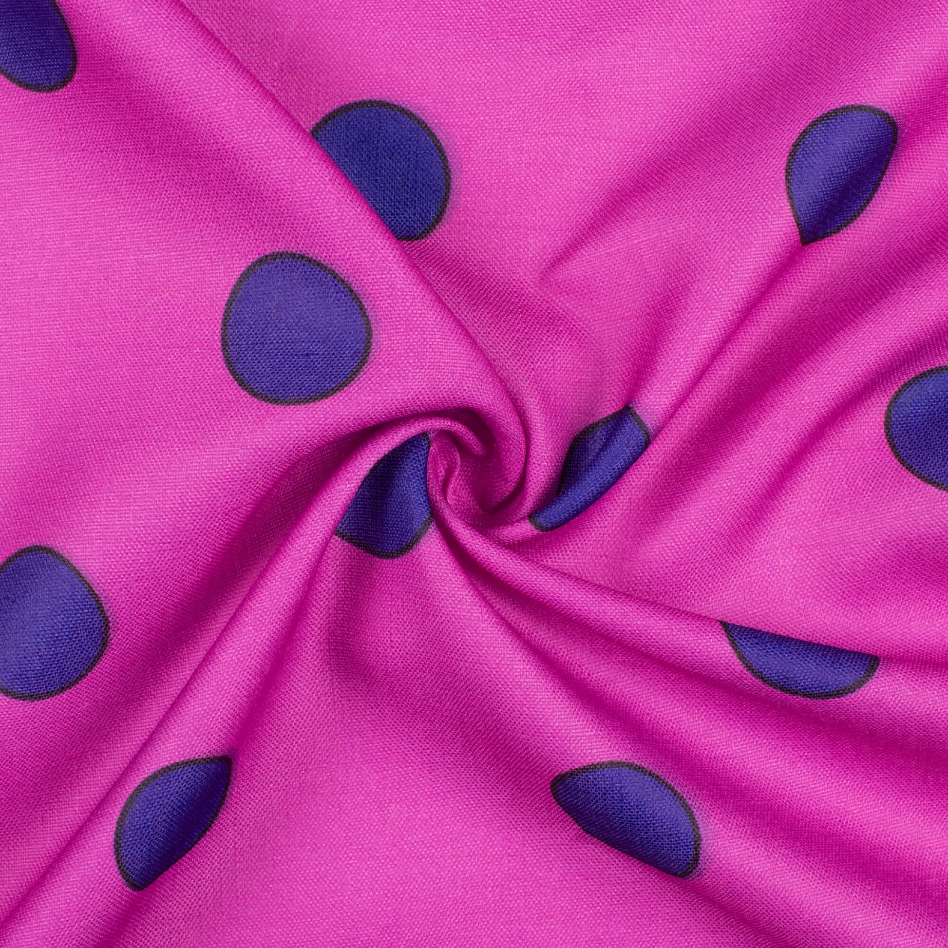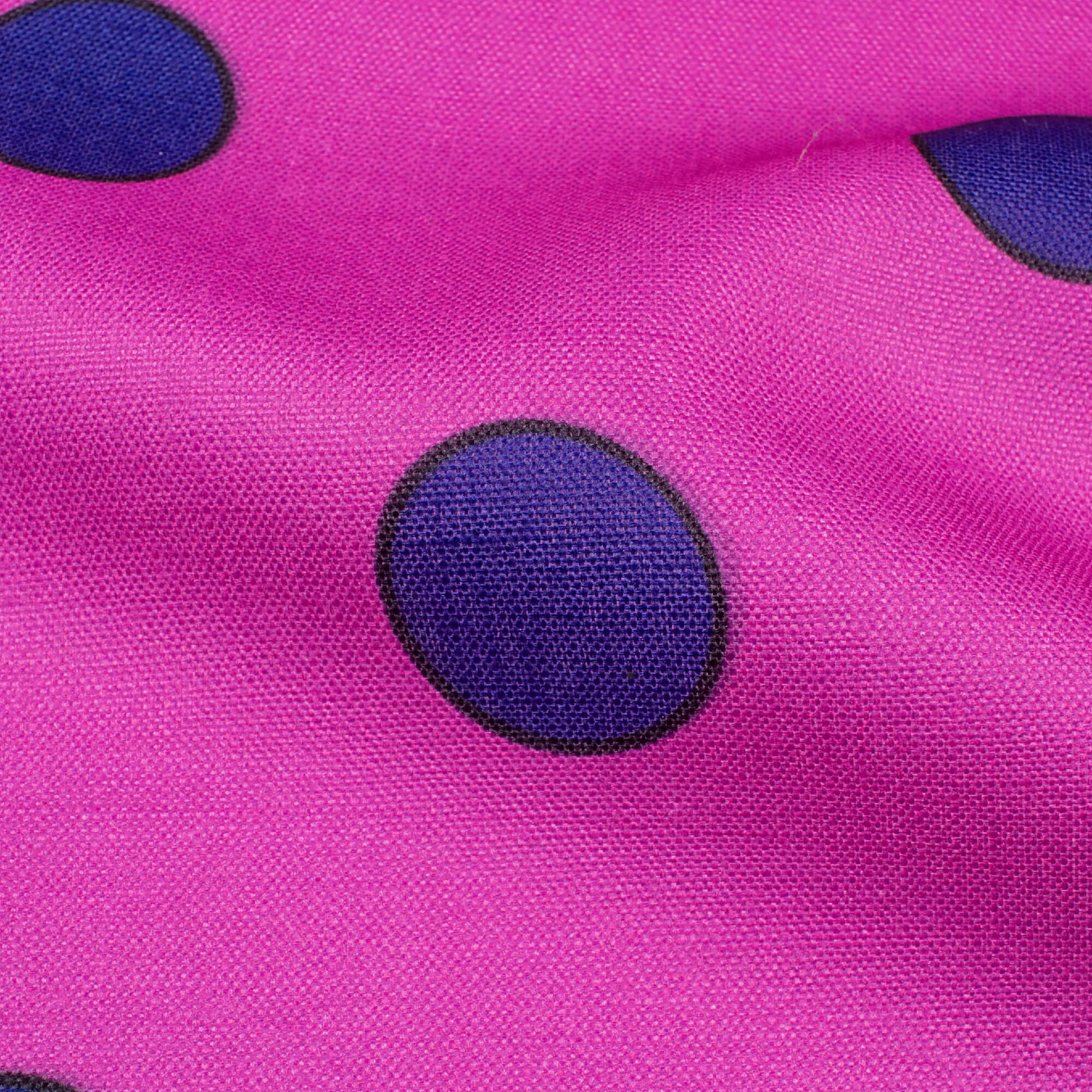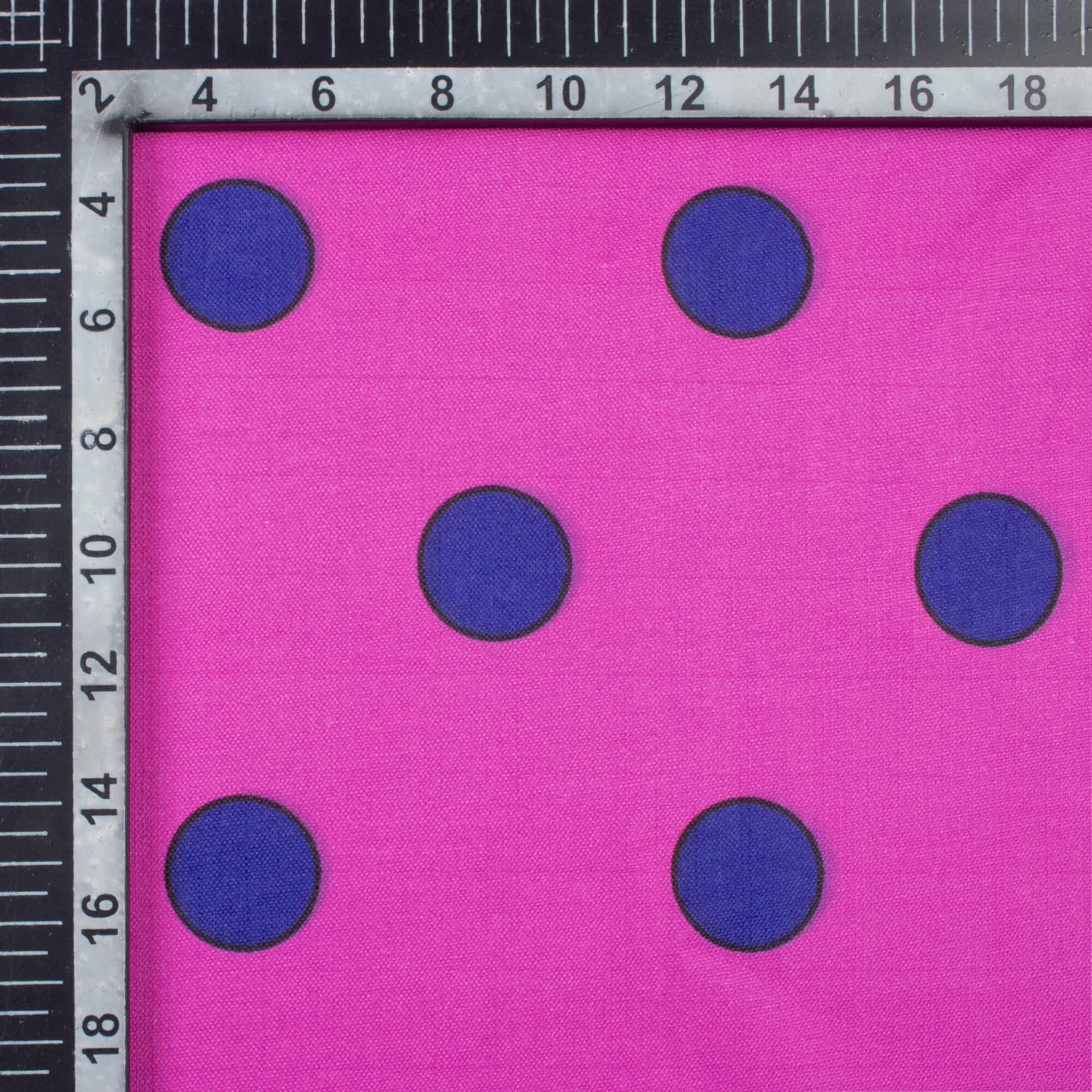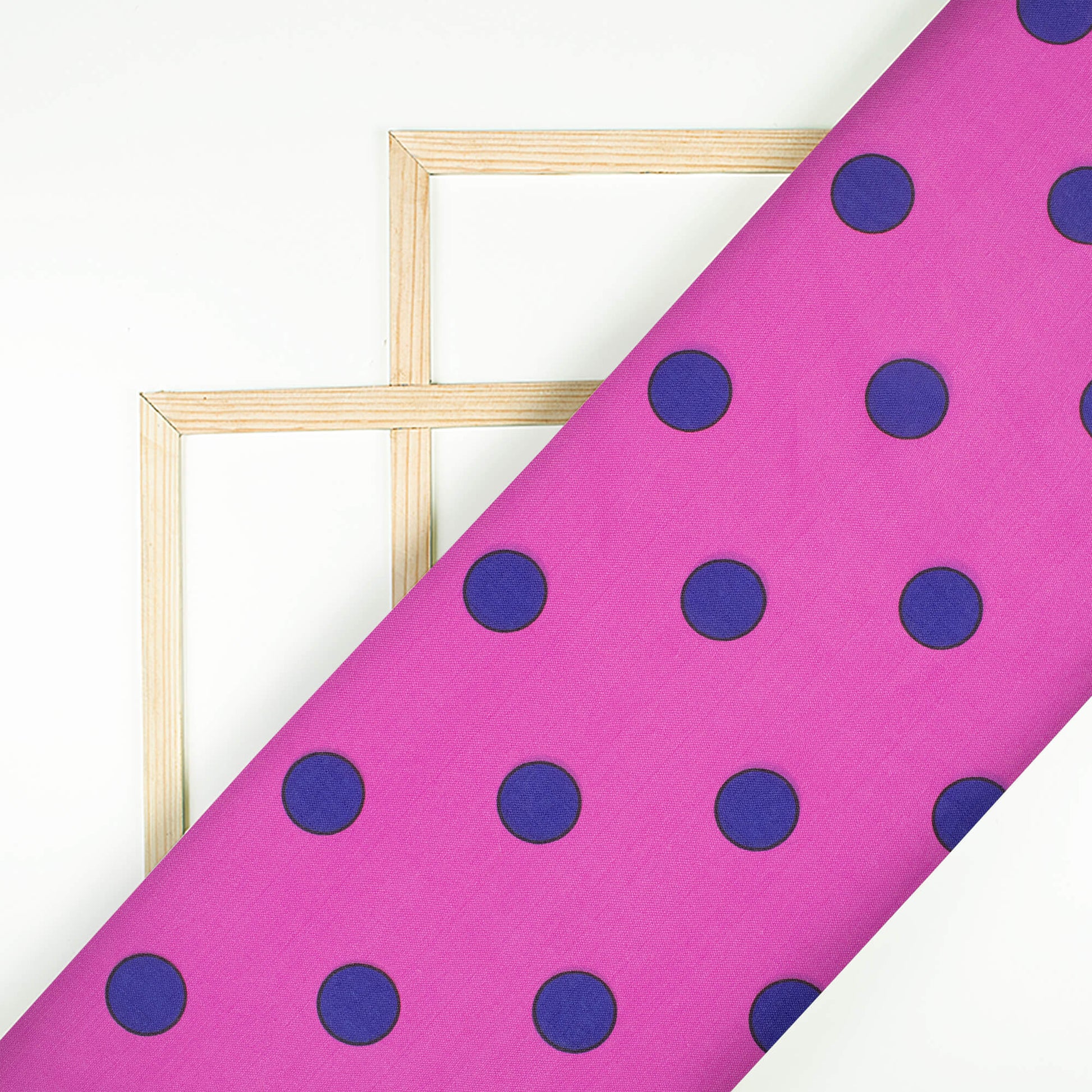 Fuchsia Pink And Navy Blue Polka Dots Pattern Digital Print Poly Linen Slub Fabric