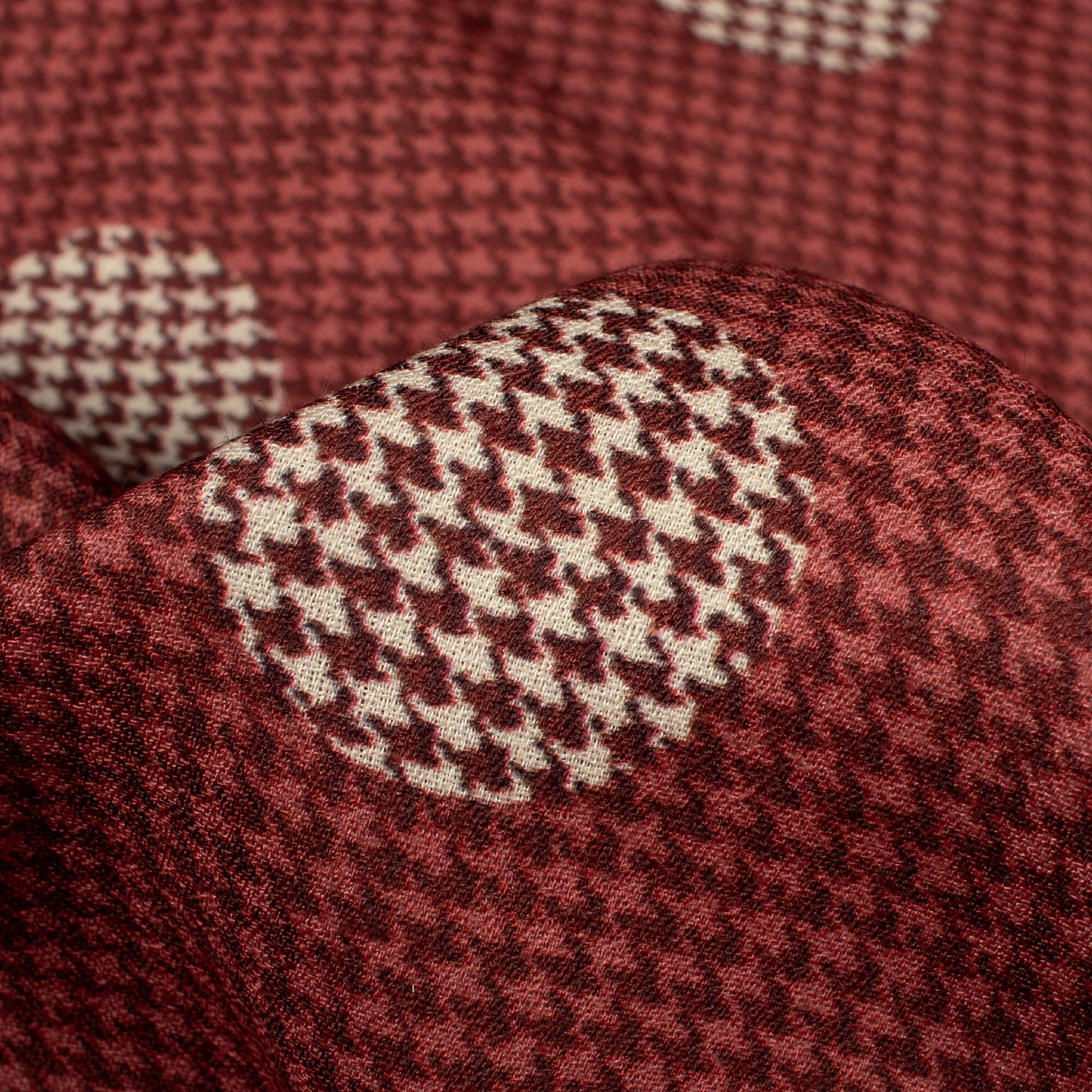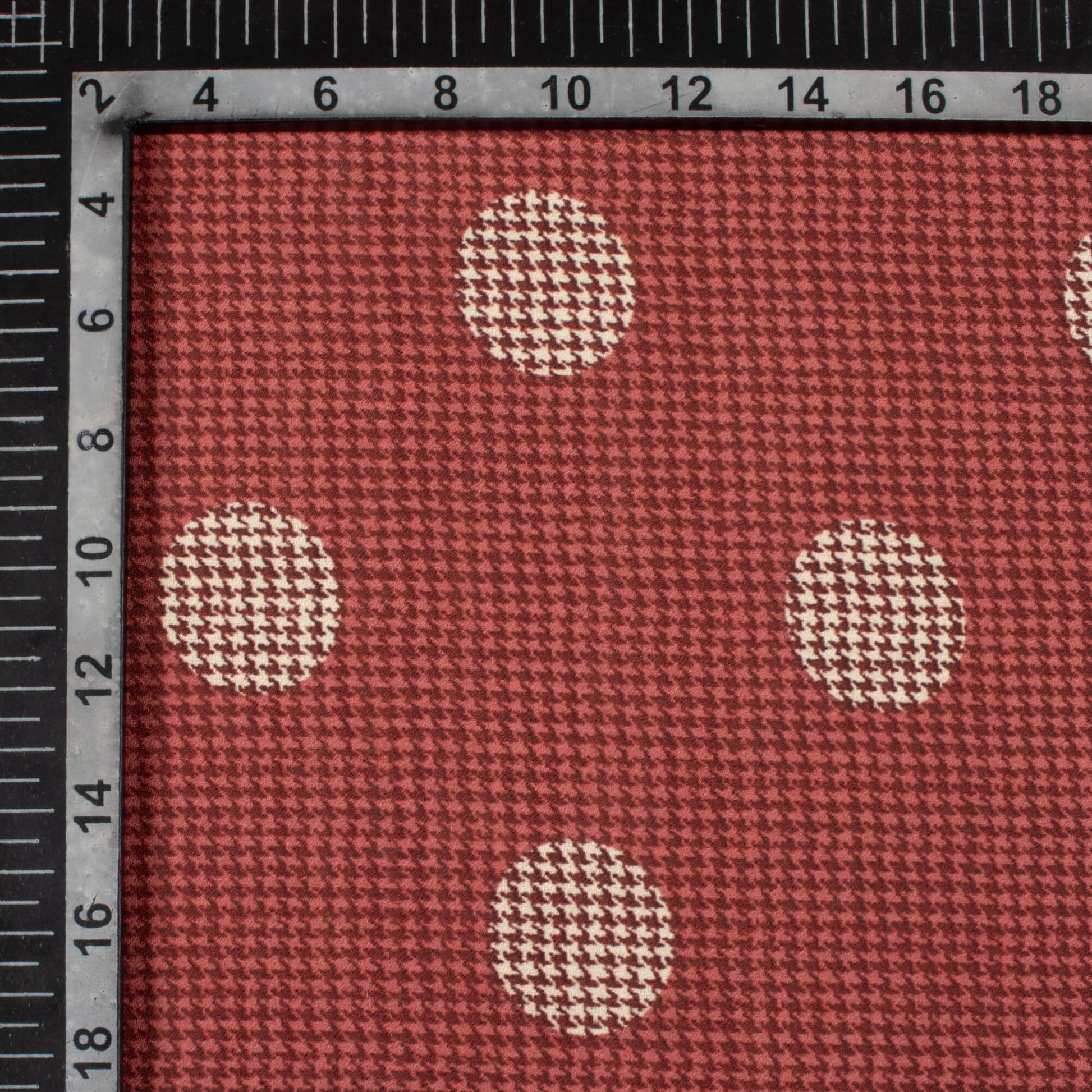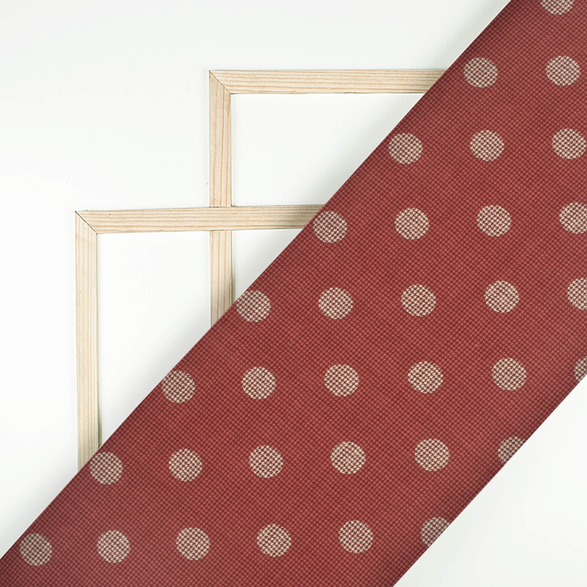Maroon Polka Dots Pattern Digital Print Moss Crepe Fabric