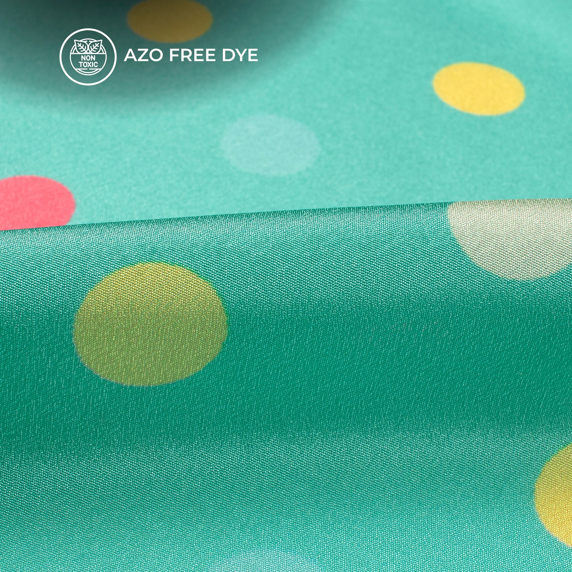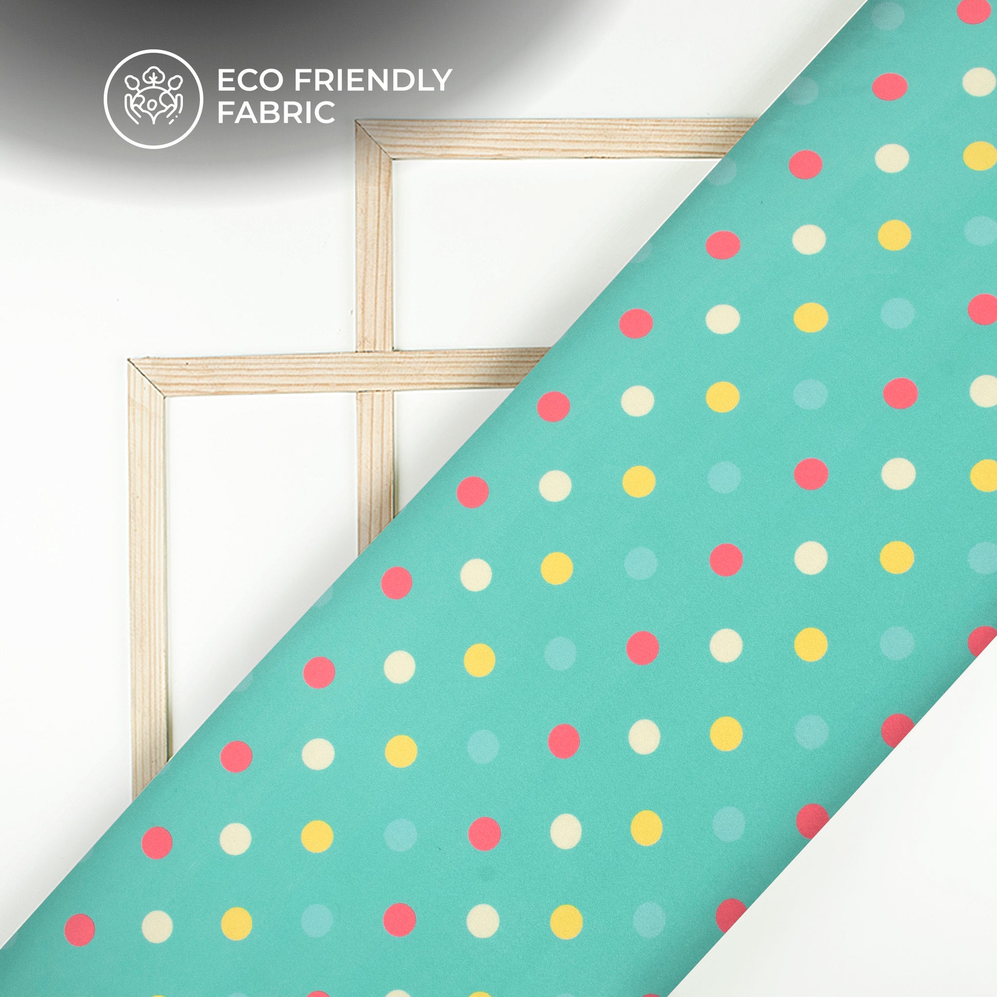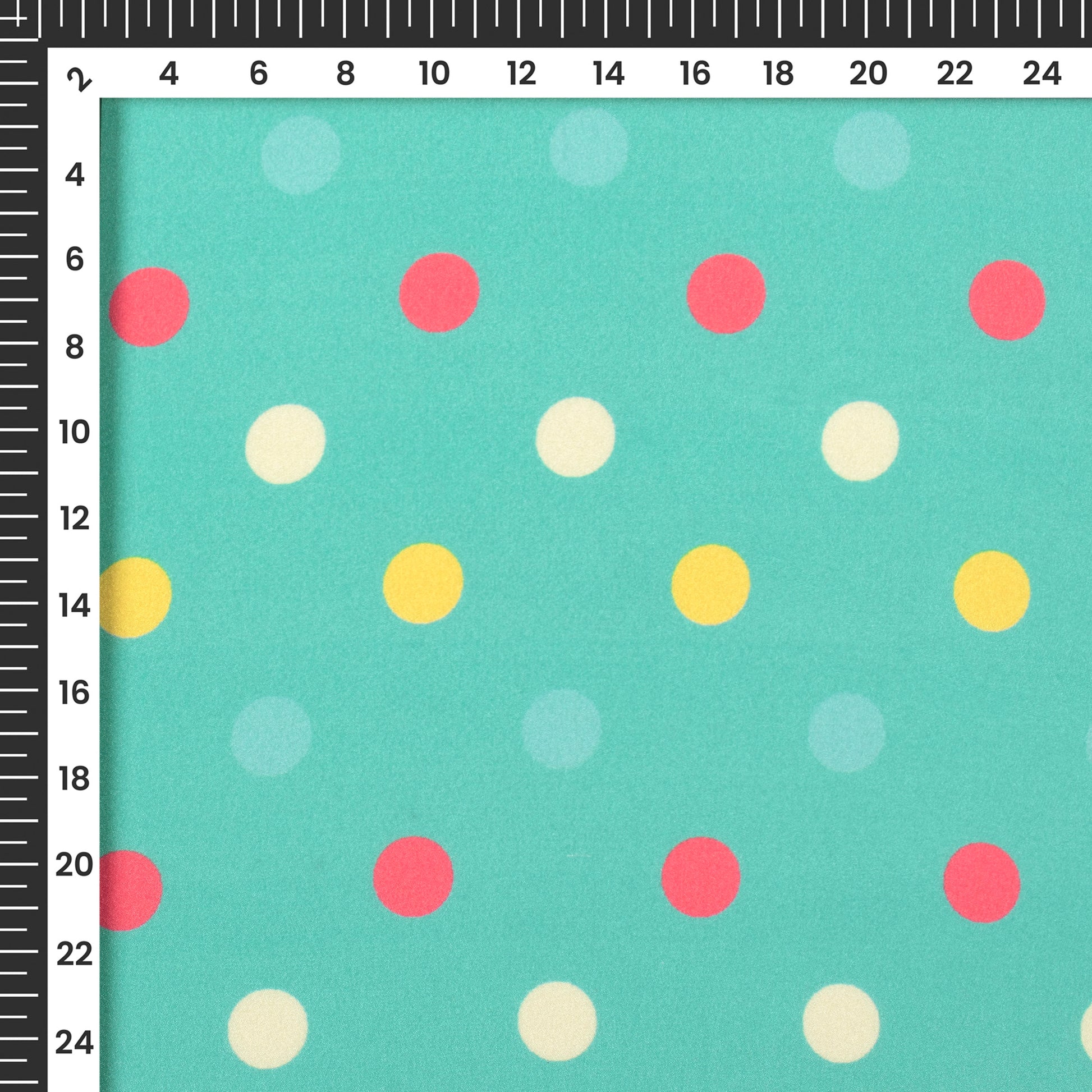 Mint Green Polka Dots Pattern Digital Print Crepe Silk Fabric