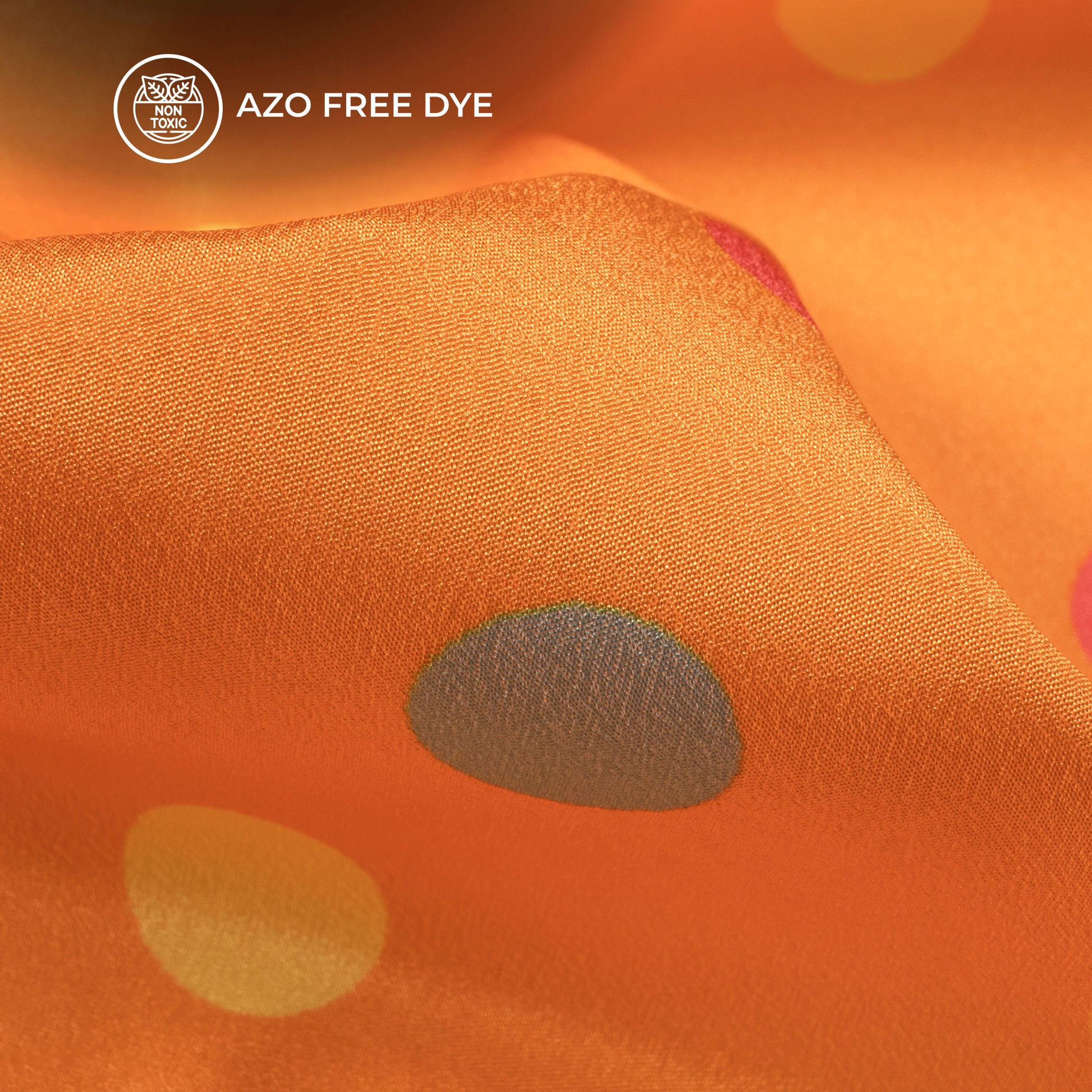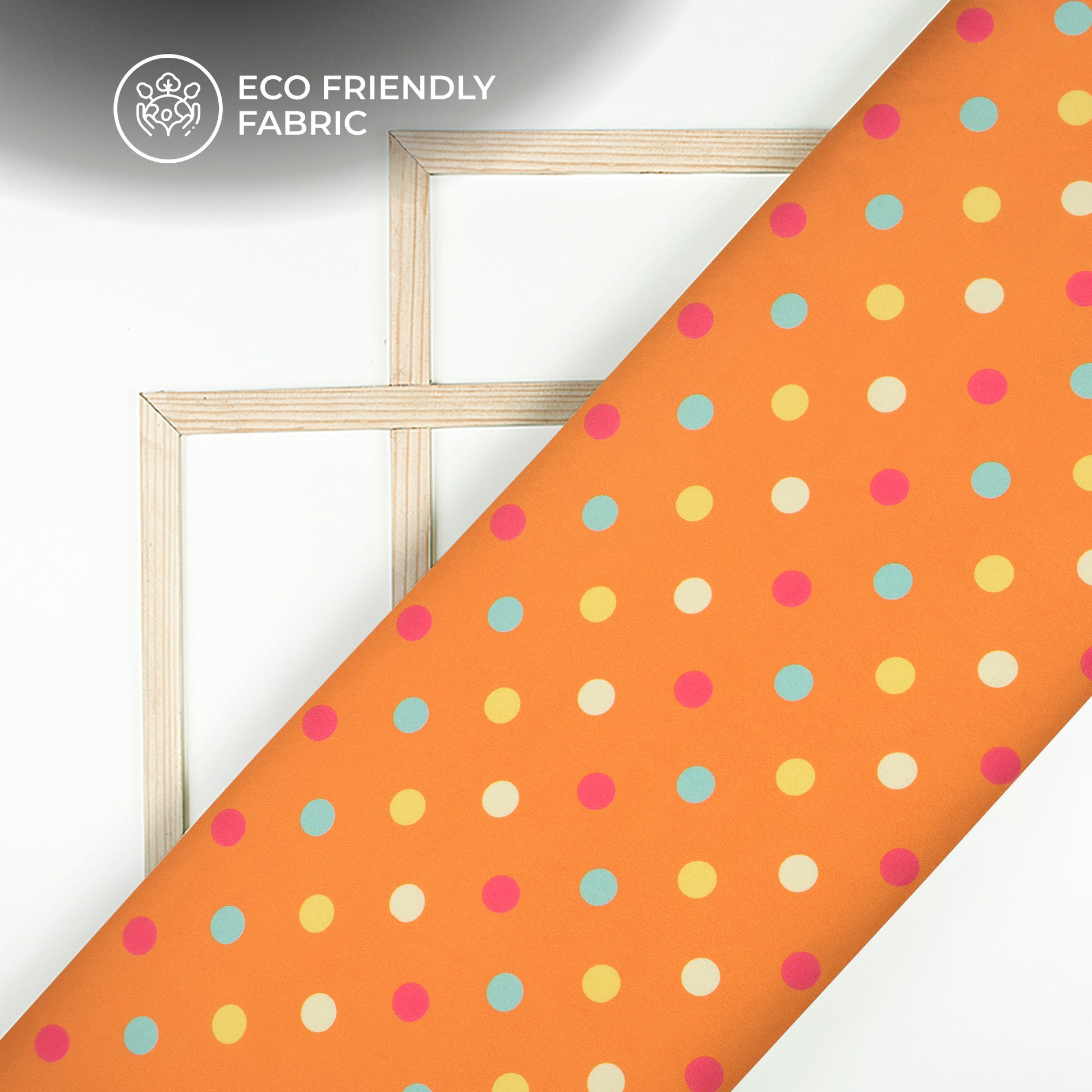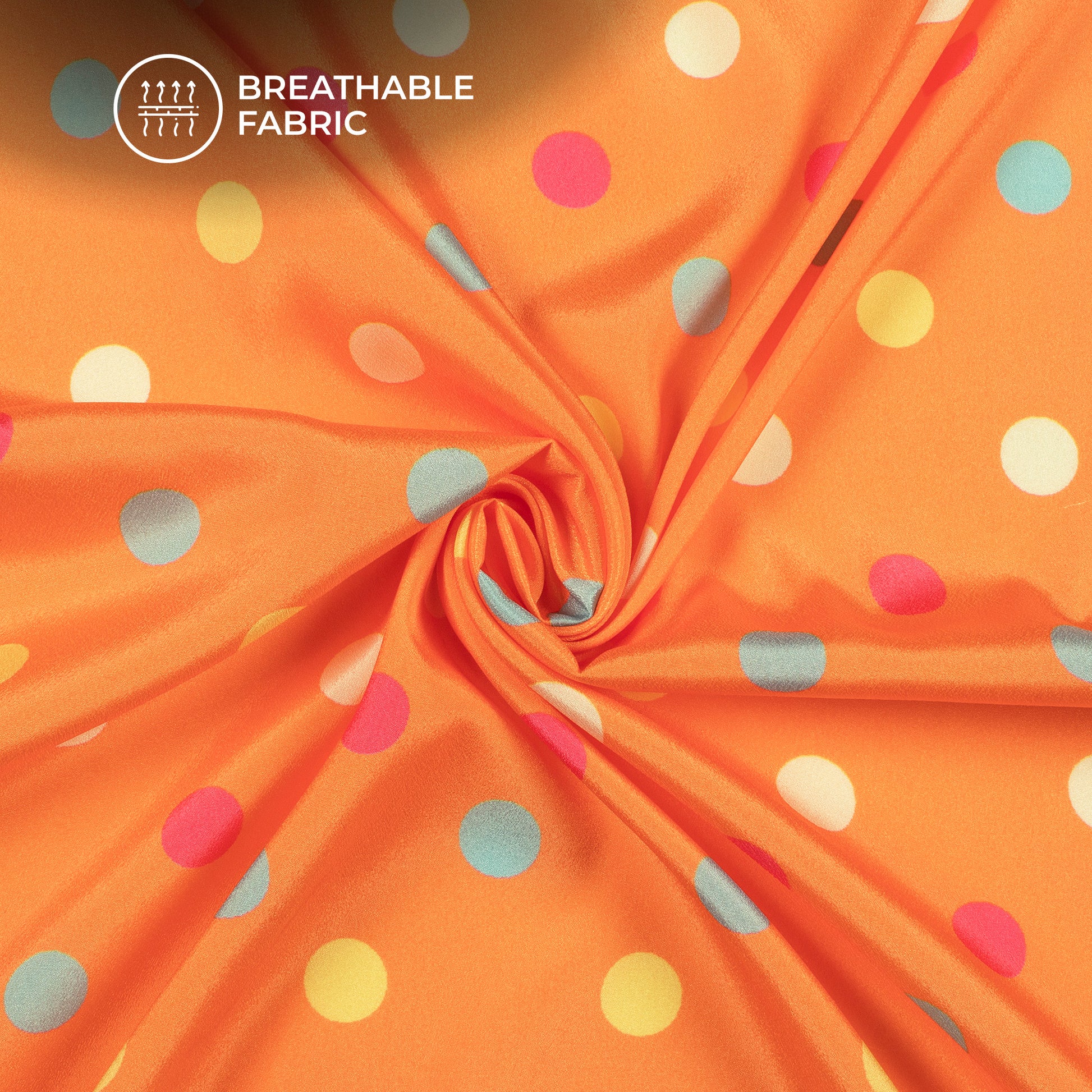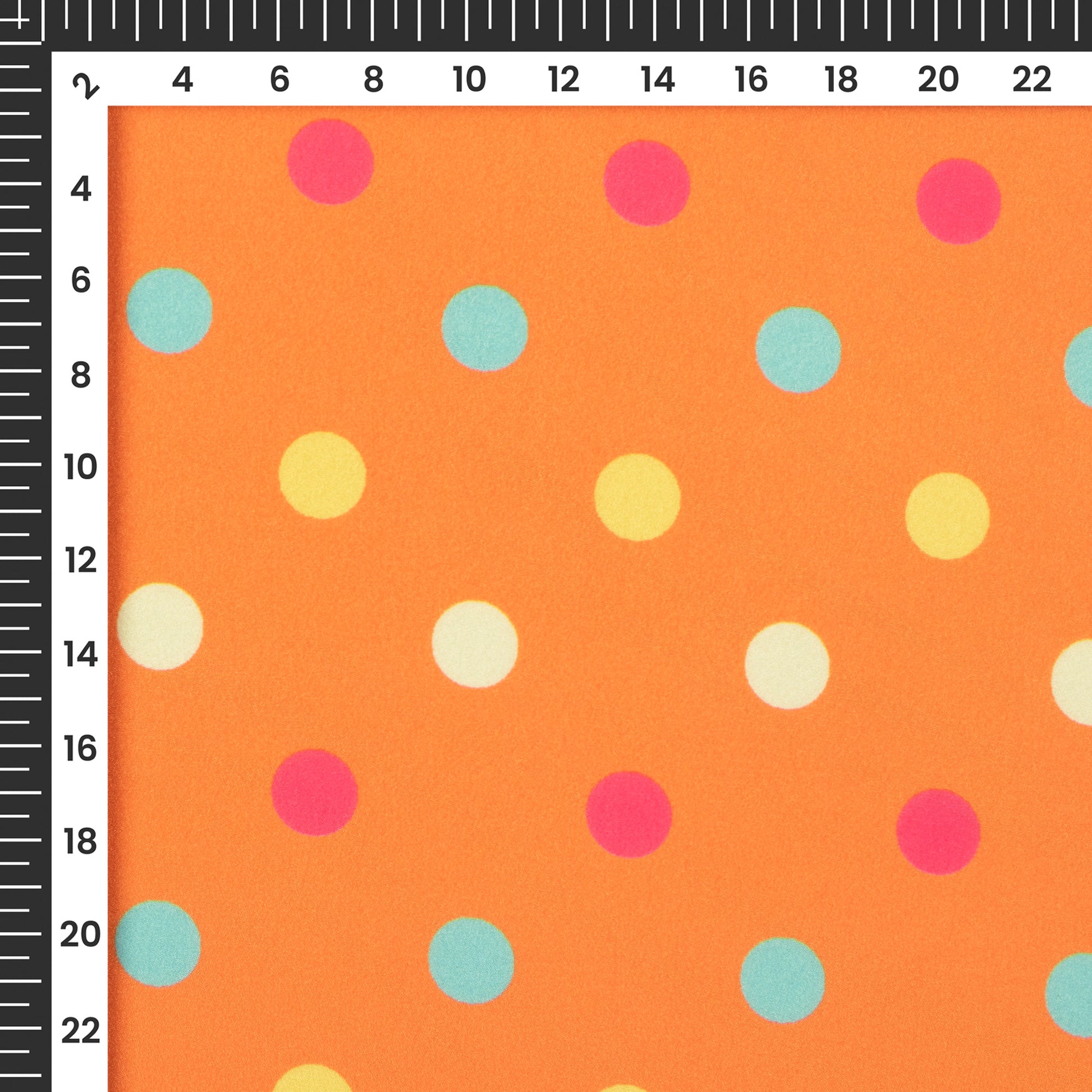 Orange Polka Dots Pattern Digital Print Crepe Silk Fabric