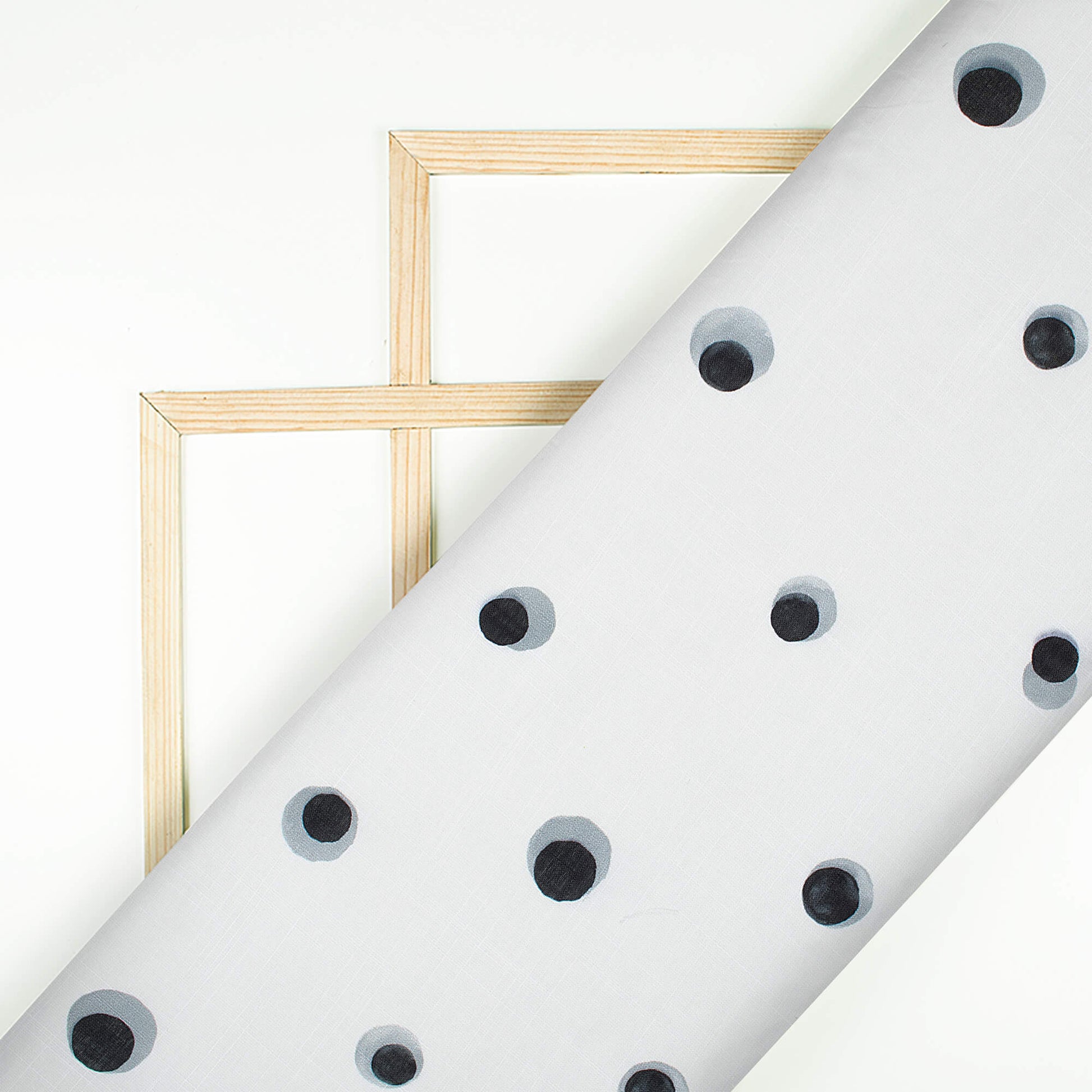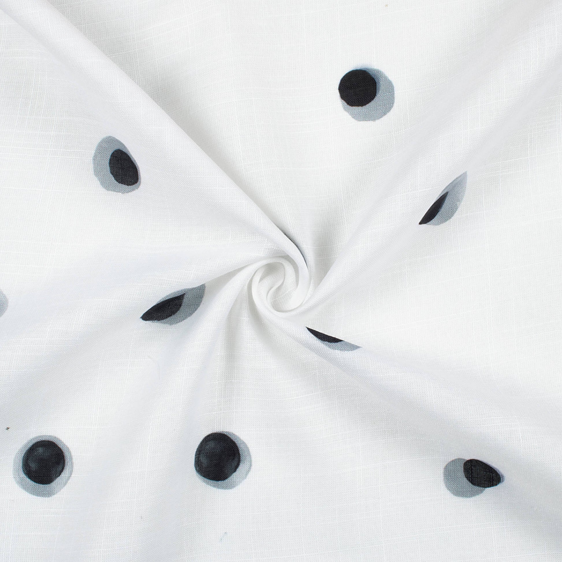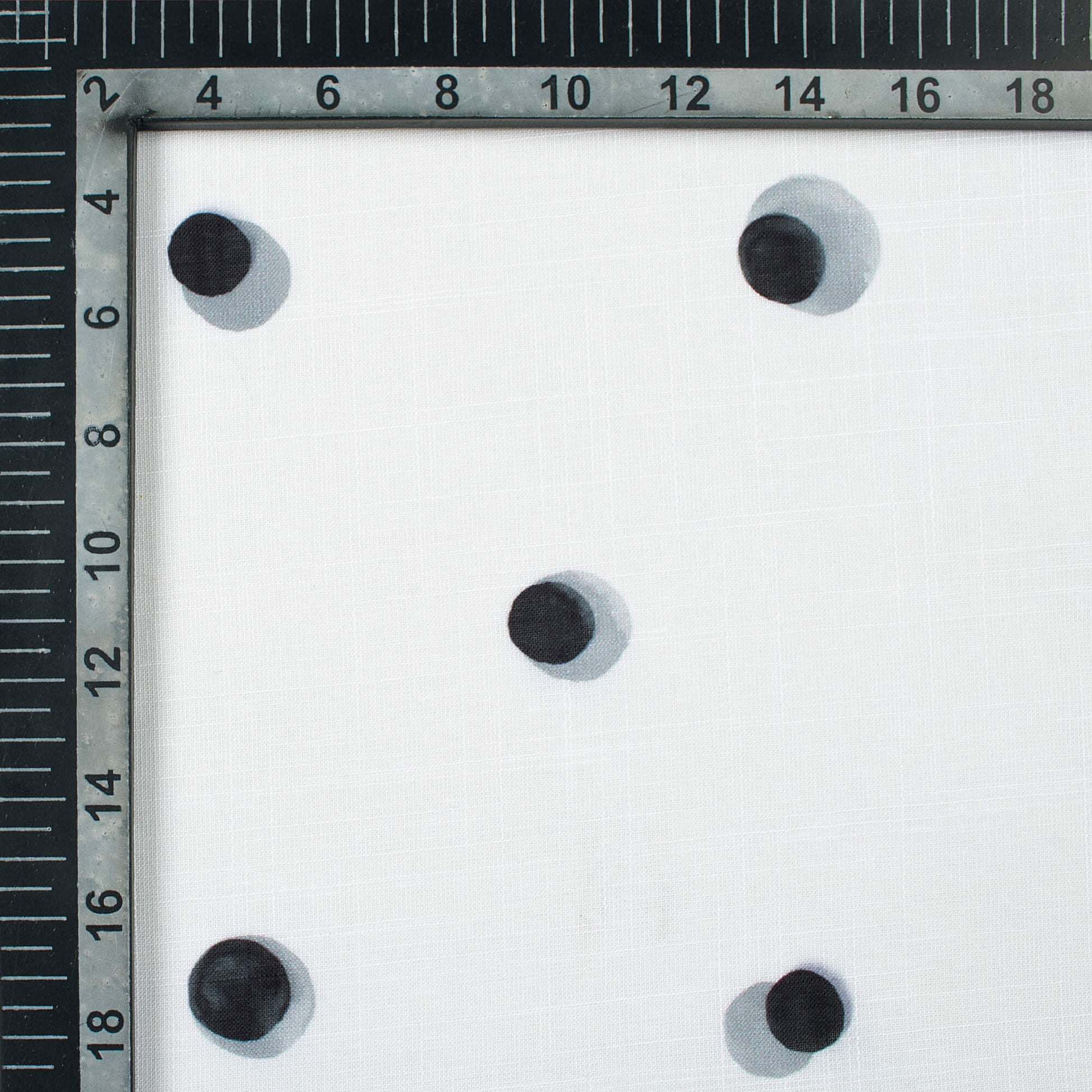 Premium White And Black Polka Dots Pattern Digital Print Poly Linen Fabric