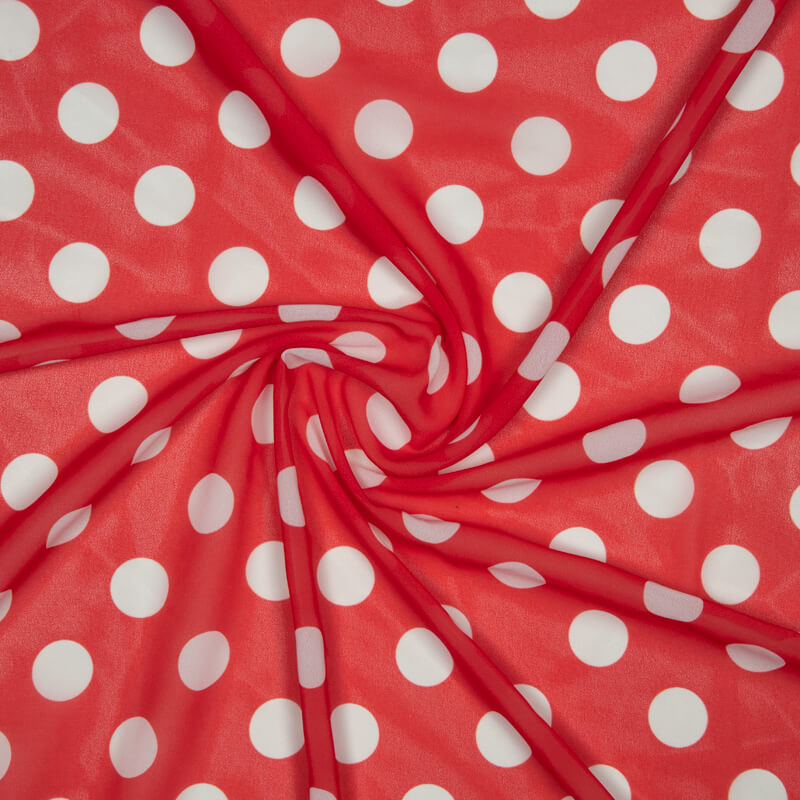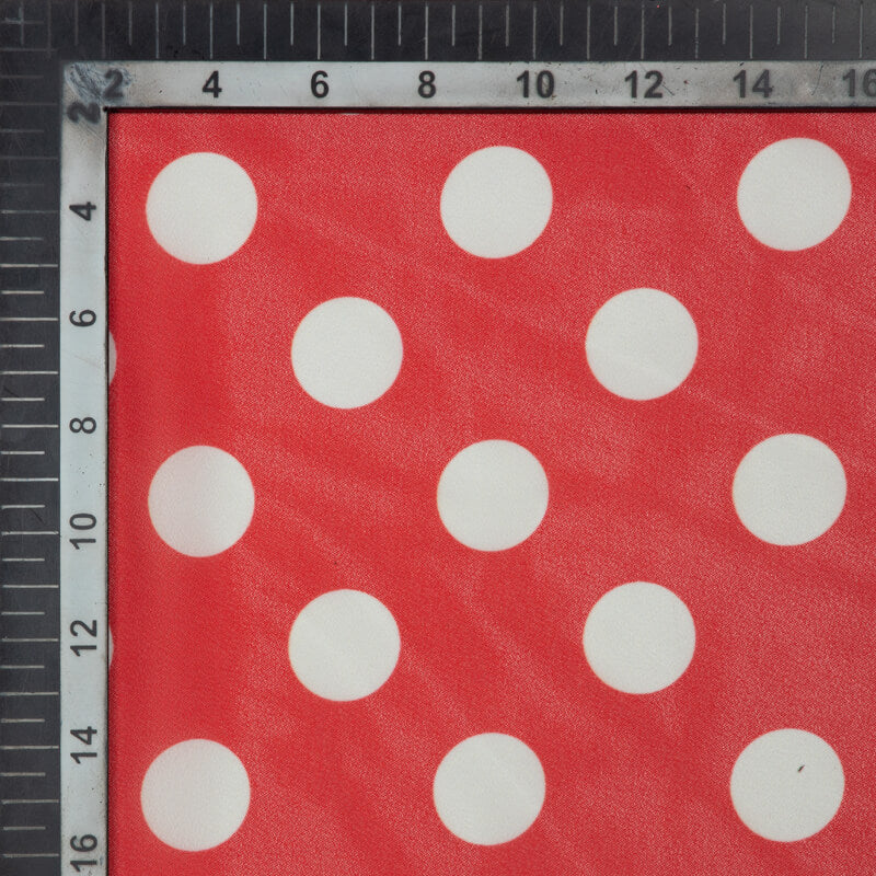 Red And White Polka Dots Digital Print Georgette Fabric