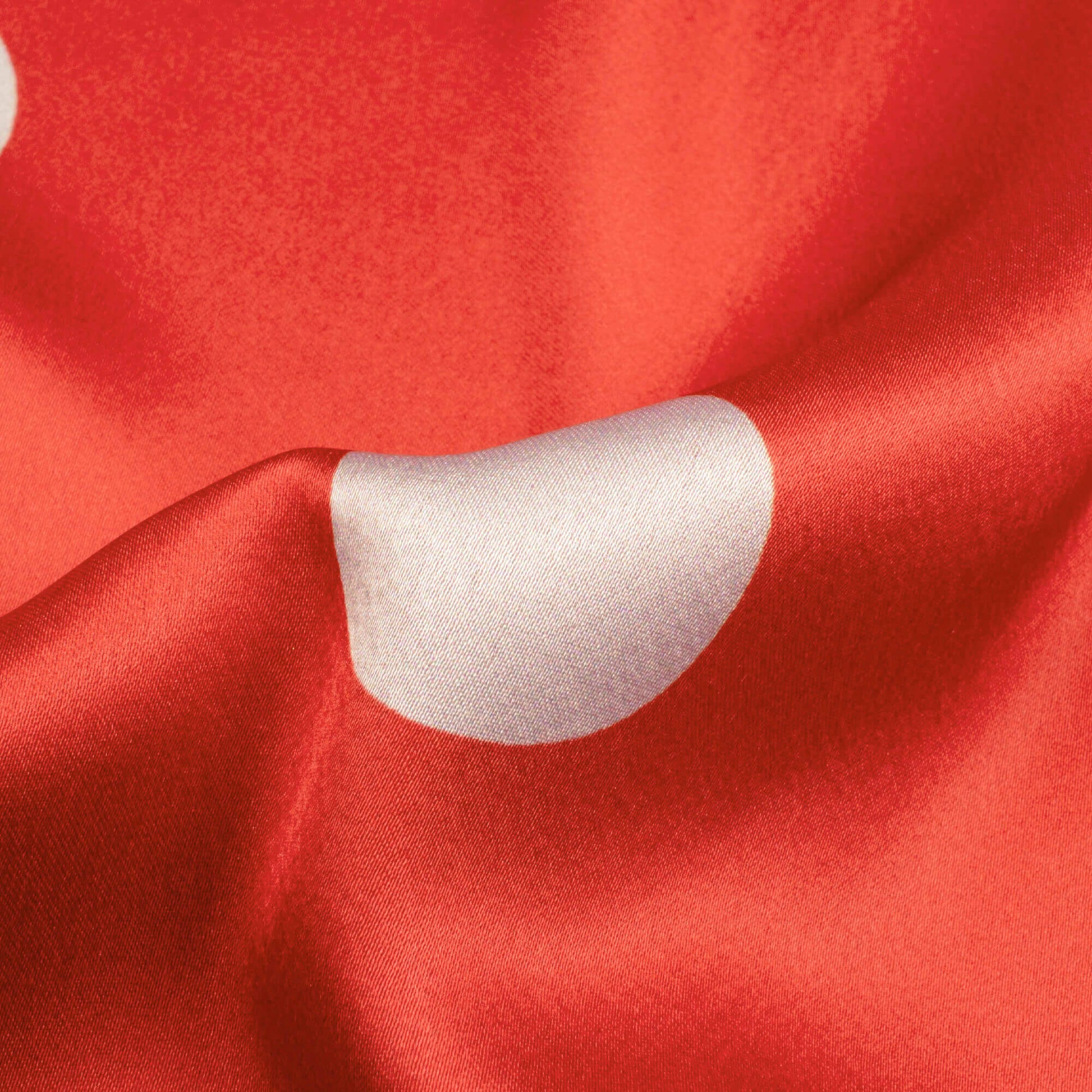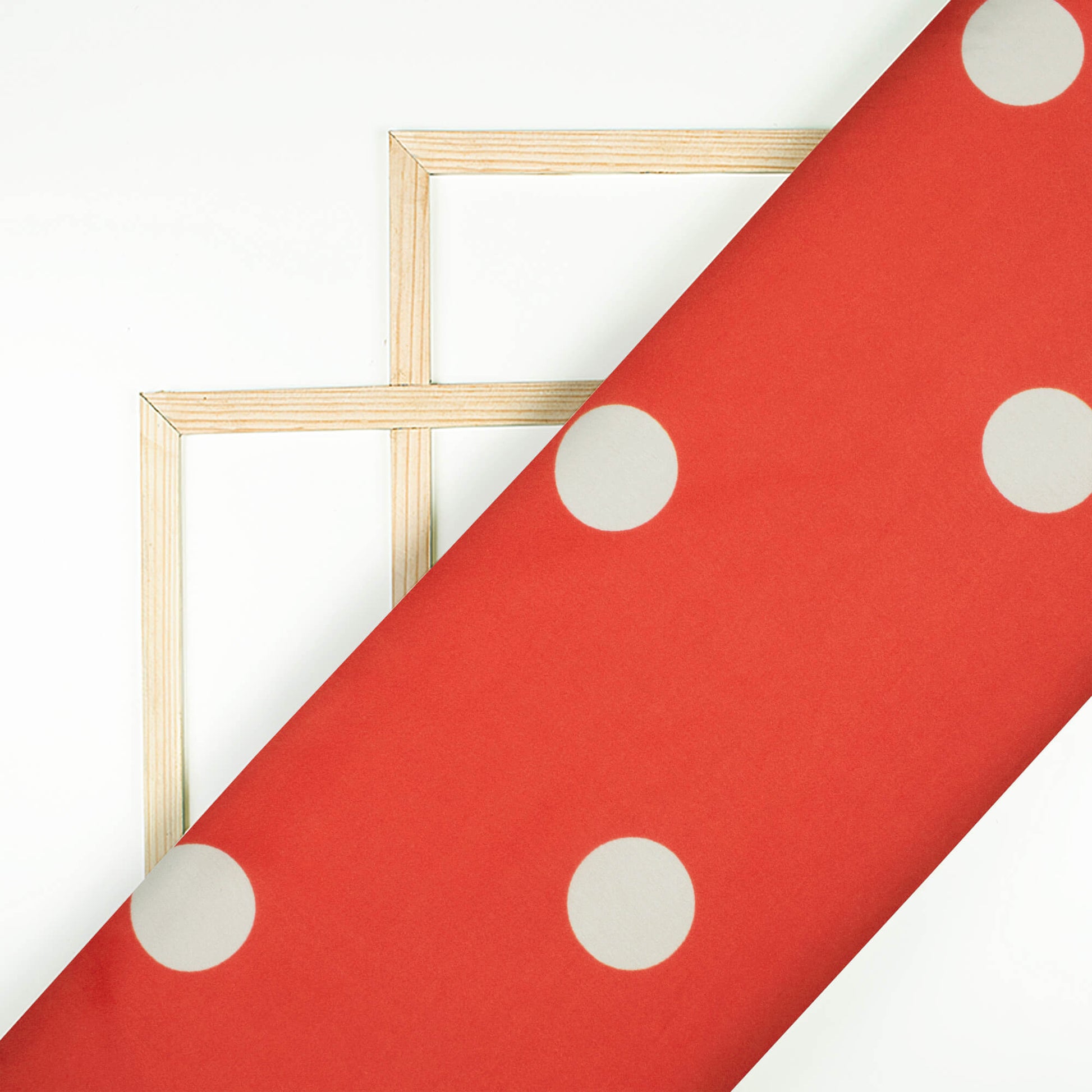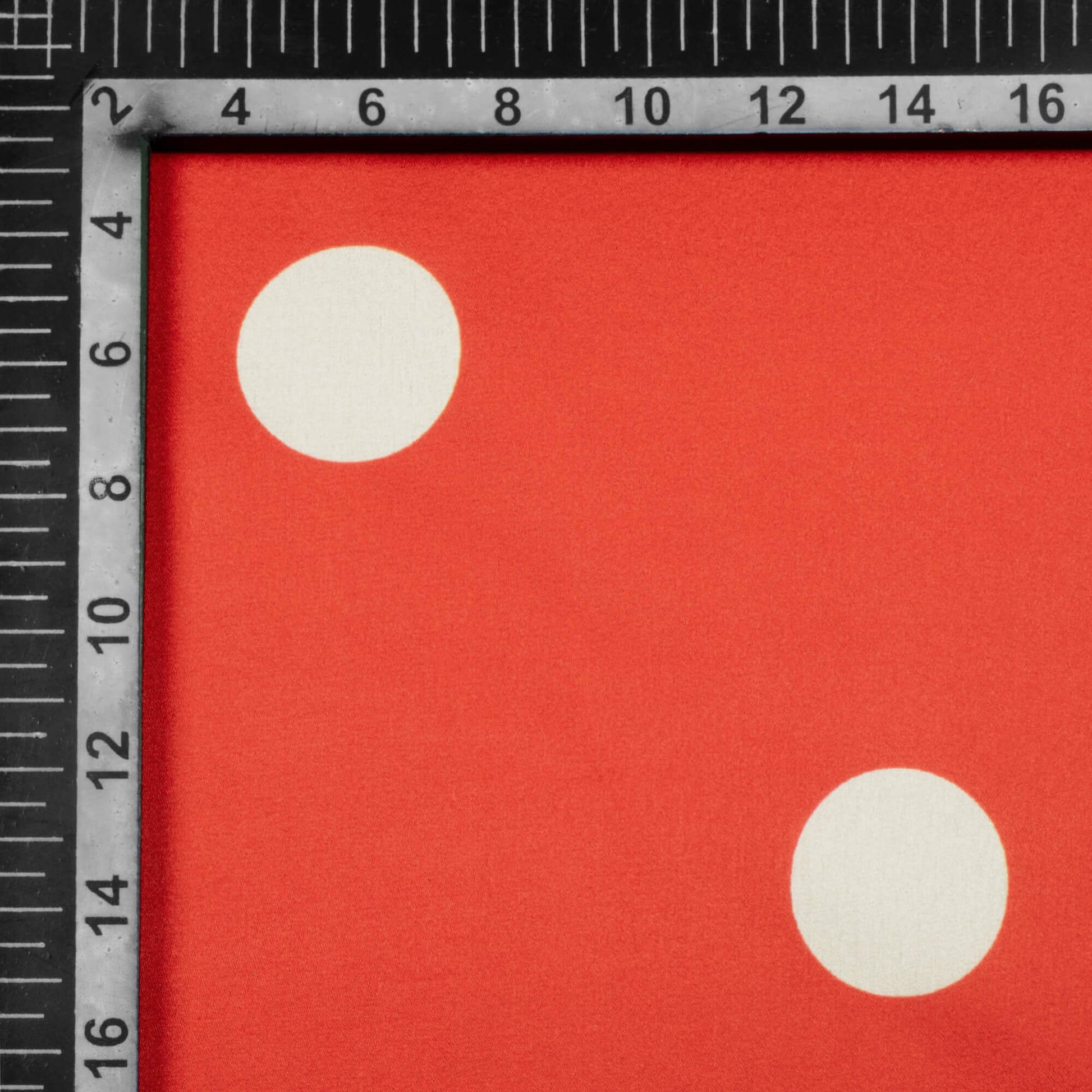 Vermilion Red And Off White Polka Dots Pattern Digital Print Japan Satin Fabric