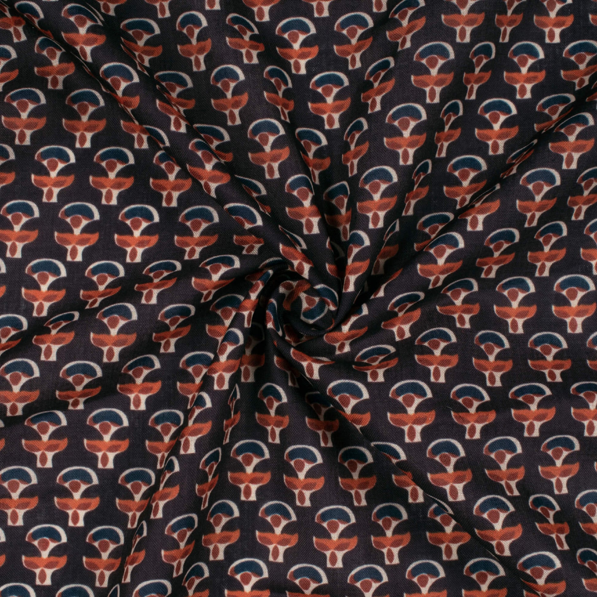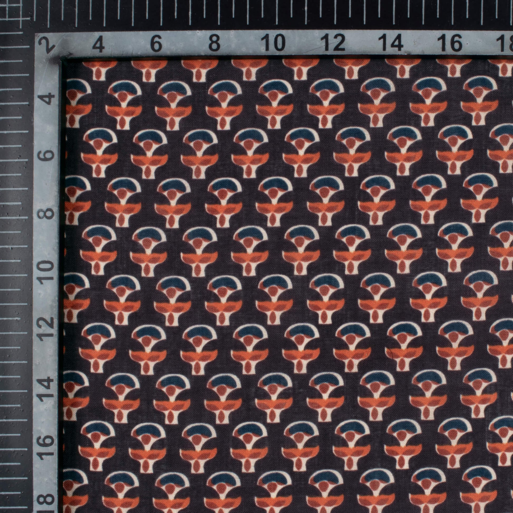 Black And Crimson Red Floral Pattern Digital Print Poly Cambric Fabric