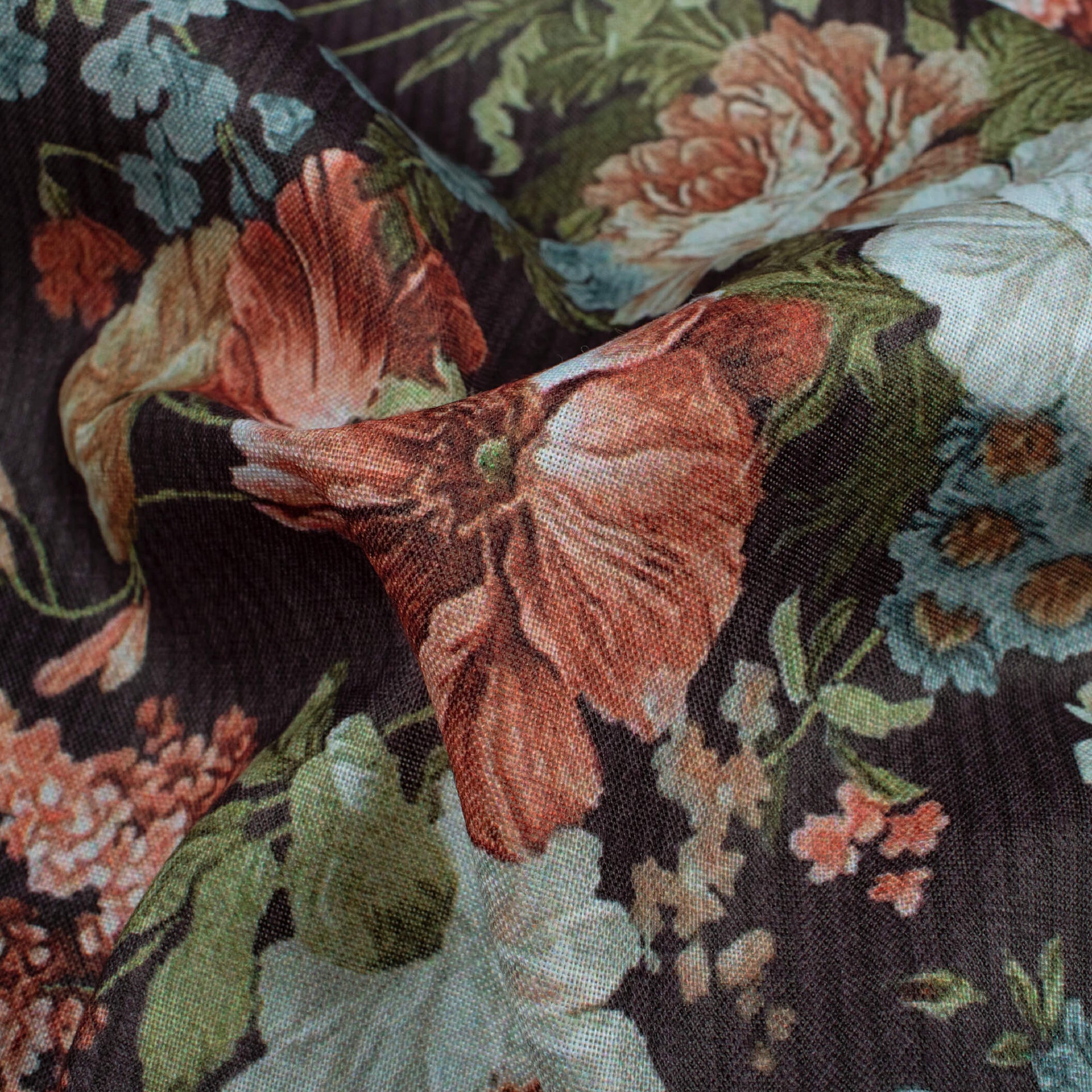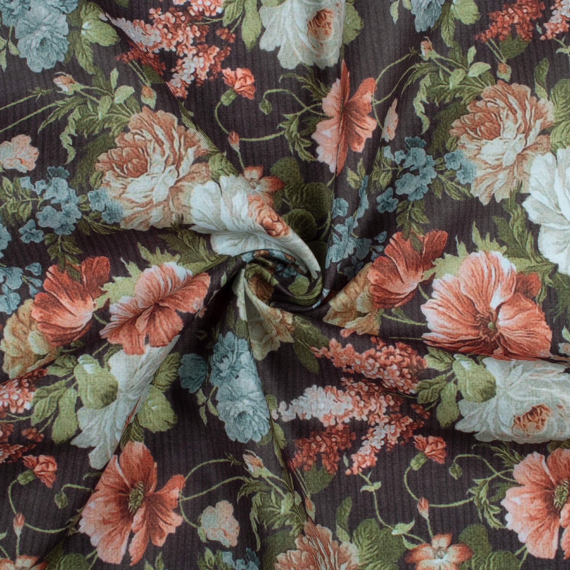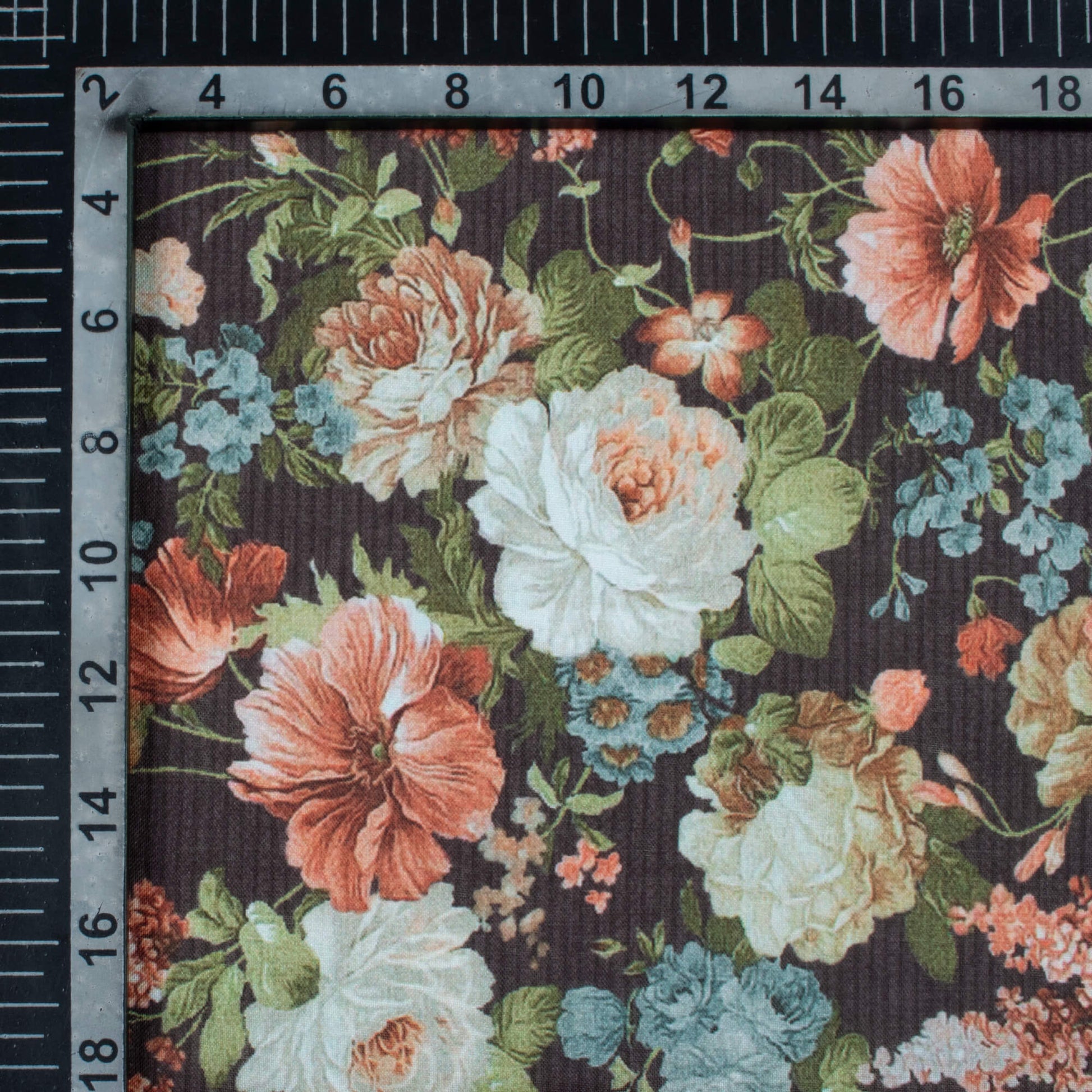 Black And Dark Blush Pink Floral Pattern Digital Print Poly Cambric Fabric
